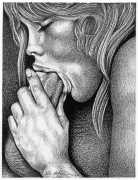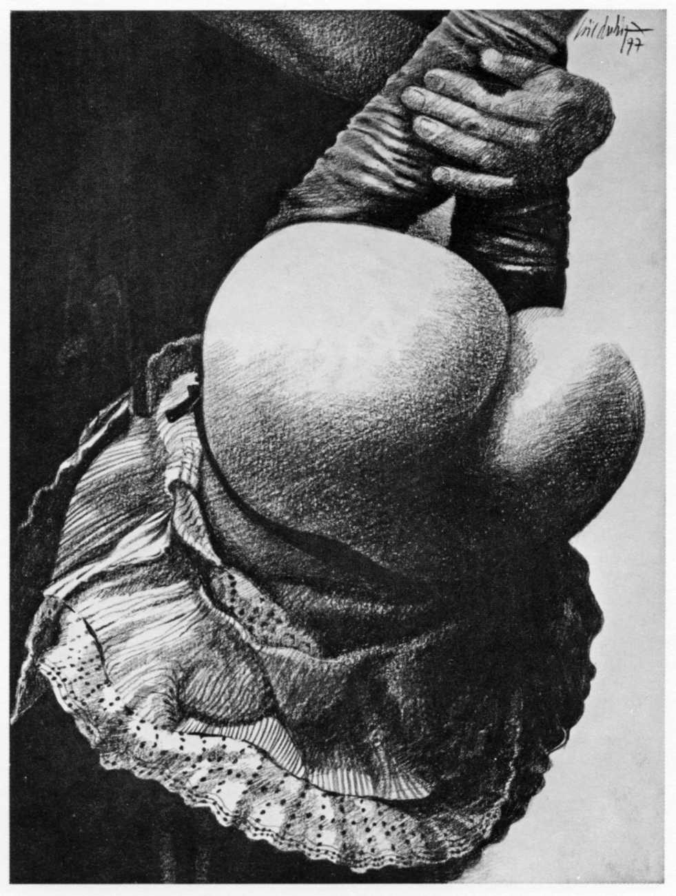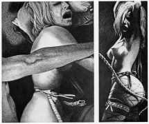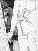 This appears to have unleashed Dubigeon’s imagination and honed his skills; to what extent it freed his personal life can only be surmised. The fact is that the drawings for Histoire d’O, Douces violences and De l’aube à la nuit are clearly drawn from life, and reflect Dubigeon’s determination that art should reflect things as they are in all their starkness and natural beauty. Part of this authenticity and integrity is reflected in the fact that he never attempted to hide his erotic work behind a pseudonym, or to exhibit it separately from his other work; for him art was art, and the erotic works just a small part of his life’s work.