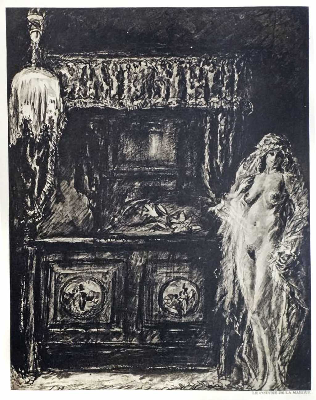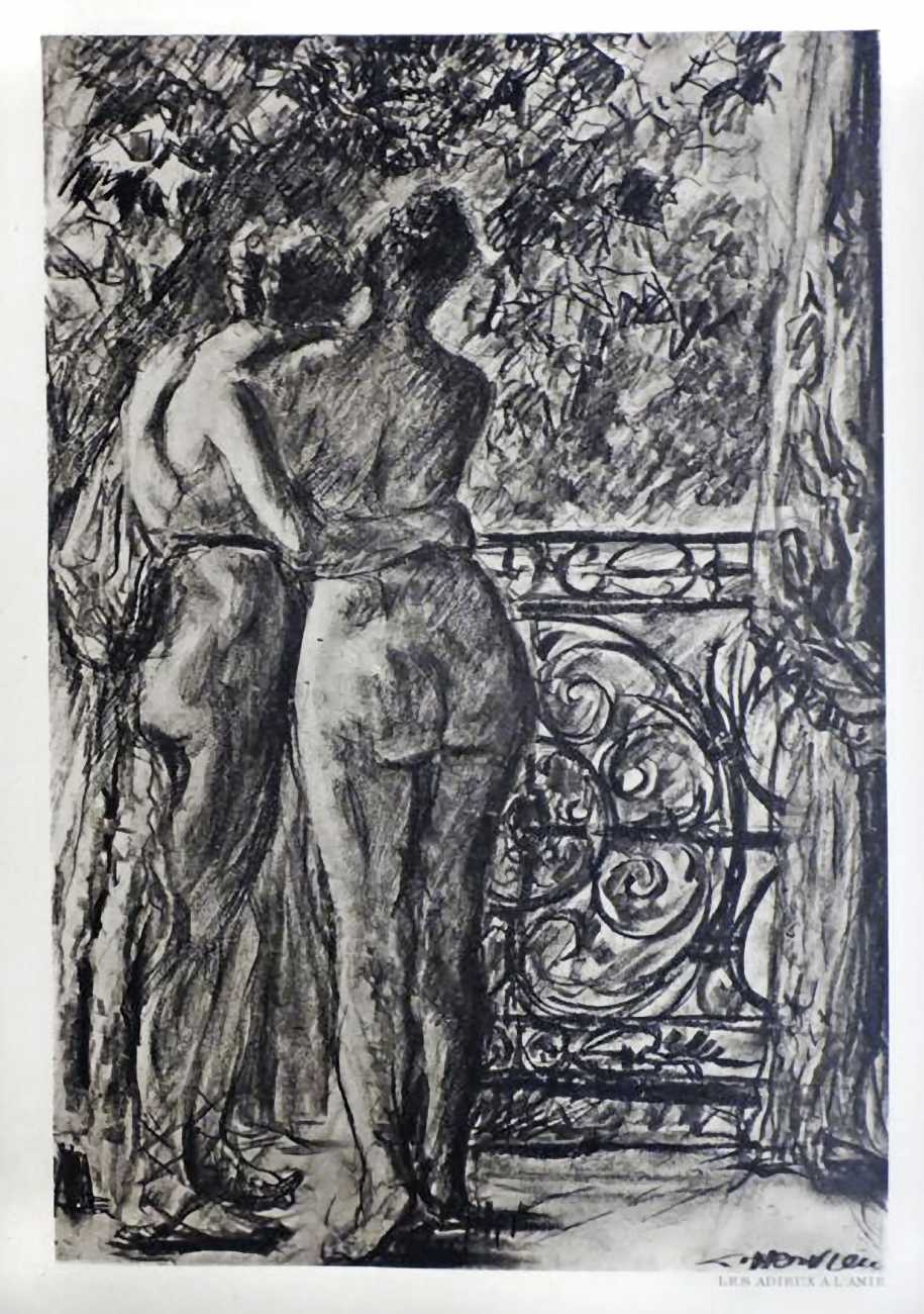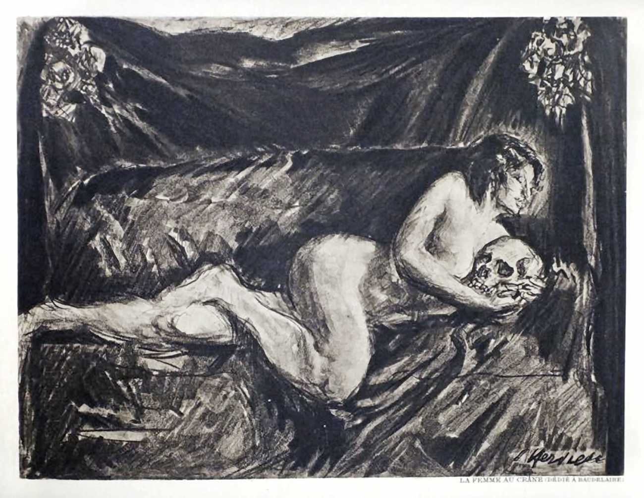 Hervieu, like many artists of the time, was very much inspired by the poems of Baudelaire and Verlaine, and she illustrated editions of Baudelaire’s Les fleurs du mal (1920) and Le spleen de Paris (1922), and Verlaine’s Liturgies intimes (1948).