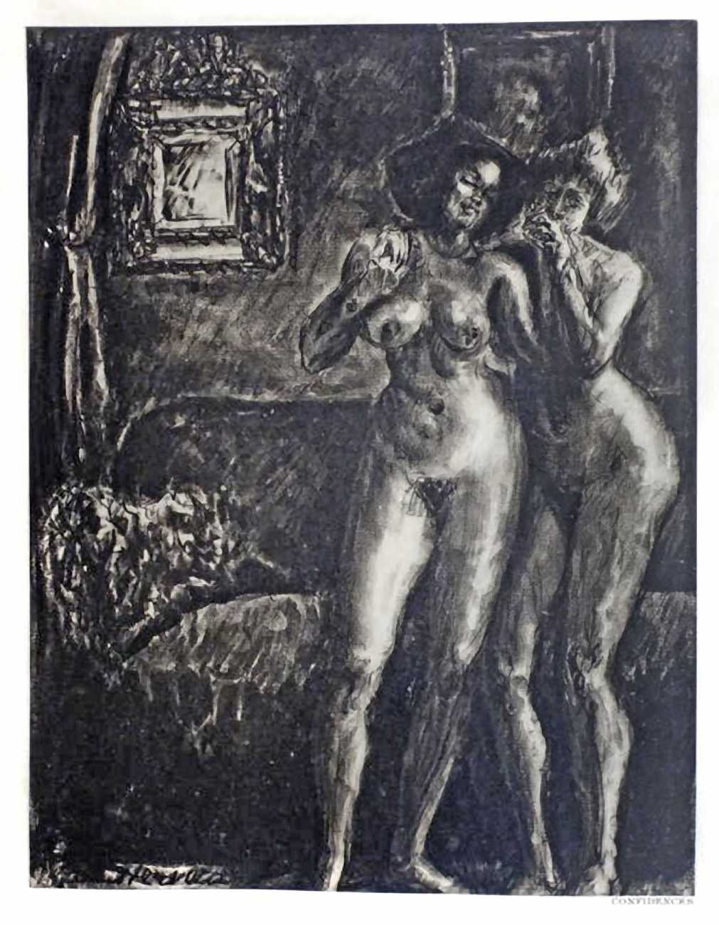 The exhibition was not a success, and that and her increasing physical disability and gradually-failing sight encouraged her to change her technique to the black and white pencil and charcoal work which was to become her unique style. During the 1910s she was close to the painter Edmond-Marie Poullain, with whom she travelled several times to Bréhal on the coast of Normandy, but several works from the 1920s suggest that she was also interested in intimate relationships between women.
