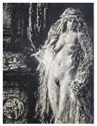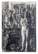 During the late 1910s and early 20s Hervieu developed a way of working with pencil, colour wash and charcoal which was characterised by the scraping away of parts of the surface of the work to create contrast, revealing the white of the paper beneath. The art critic Claude Roger-Marx wrote of her drawings that ‘they can be compared, for their chiaroscuro, to those of Redon and Seurat; they are among the most radiant with interior life and the most obsessive that a female hand has ever traced’. The painter and writer Lucie Cousturier wrote that ‘Hervieu has much to tell us. Her charcoal lines and the scratching and biting of the paper forms complex patterns of ridges and troughs that resemble a rough sea, dappled moonlight, and the depths of her heart. She just has to sit down and say to this material, like in fairy tales, “I want flowers and fruits bursting with sap; I want lush interiors; I want flesh twisted by desire; I want playthings filled with children’s wishes.” And through her art, like a magician, she gives it to us’.