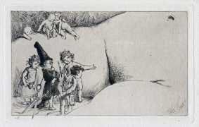 The hugely talented and productive Belgian artist and illustrator Lucien Lafnet embraced an astonishing variety of styles and techniques, from large-scale oil paintings and murals to detailed engravings and comic strip characters. He grew up and trained in Liège, studying with the master engraver François Maréchal at the Académie Royale des Beaux-Arts. A precocious and hard-working student, he won second prize at the Prix de Rome when he was just eighteen, and held his first exhibition the following year. In 1920 he moved to Paris, where he quickly established himself as an artist and engraver, specialising in allegorical paintings and church murals.