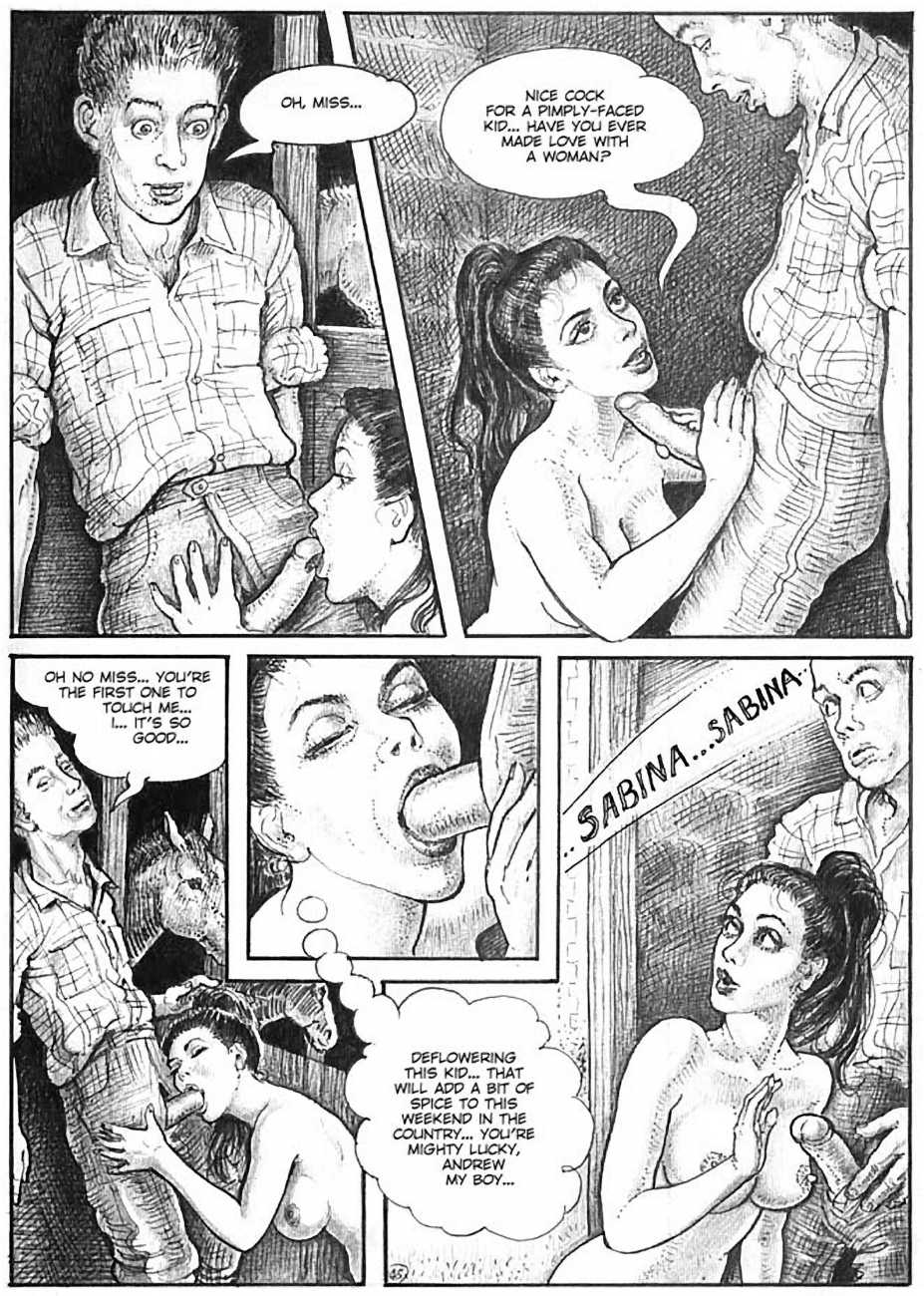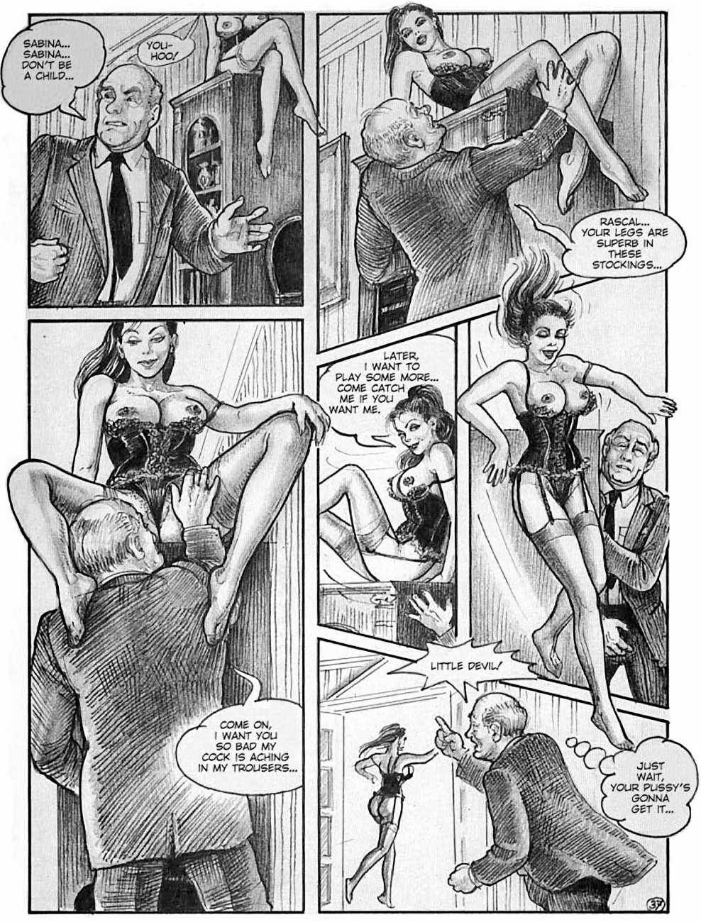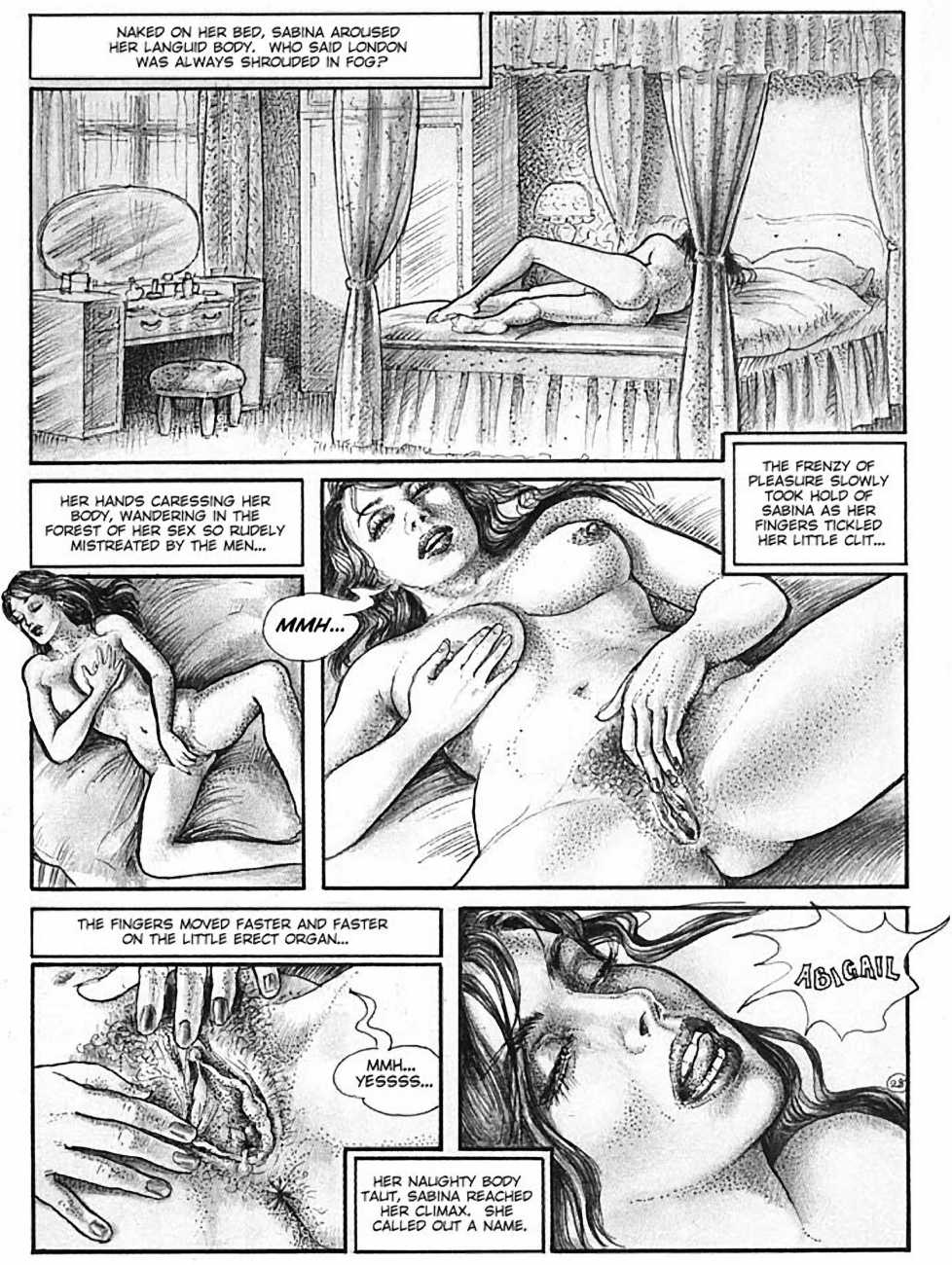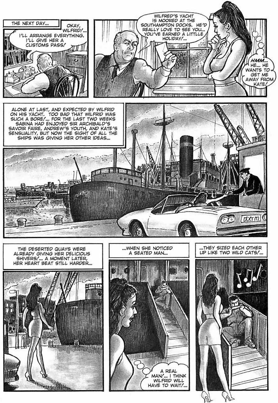 In 1990 she turned to drawing erotic comics. The British comic artist Erich von Götha (the pseudonym for Robin Ray), who was active in this genre, made contact with a publisher in Paris, for whom she developed a story with the help of her husband called Sophisticated Ladies, set in the 1920s. This was followed by Vacances d’été (Summer Holidays) and the graphic novels Sabina and Sabina 2.