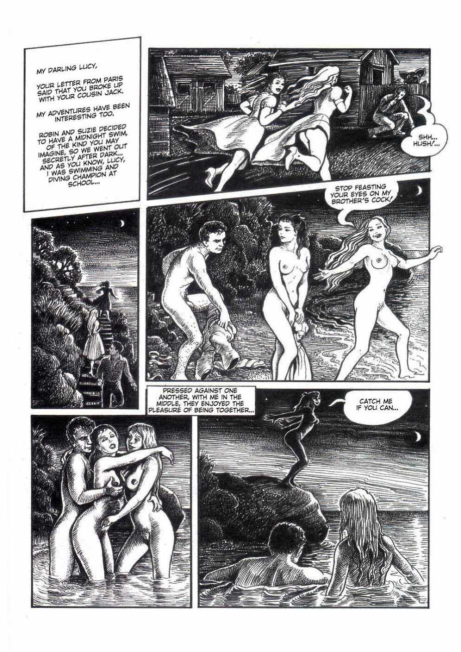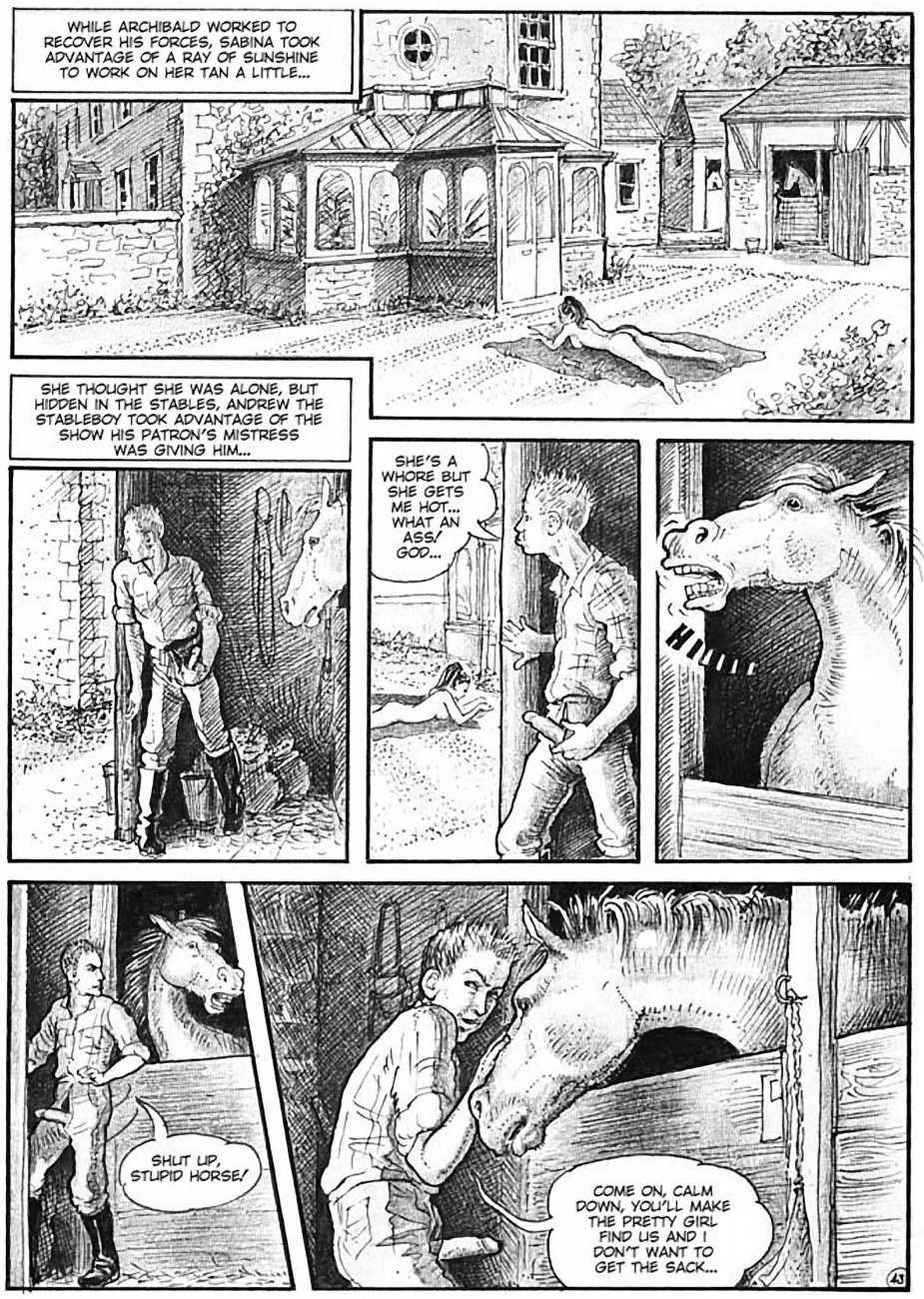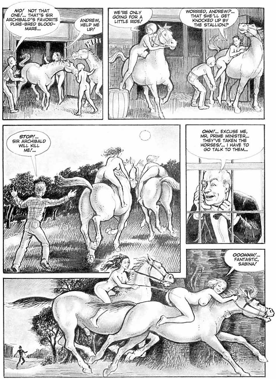 In 1990 she turned to drawing erotic comics. The British comic artist Erich von Götha (the pseudonym for Robin Ray), who was active in this genre, made contact with a publisher in Paris, for whom she developed a story with the help of her husband called Sophisticated Ladies, set in the 1920s. This was followed by Vacances d’été (Summer Holidays) and the graphic novels Sabina and Sabina 2.