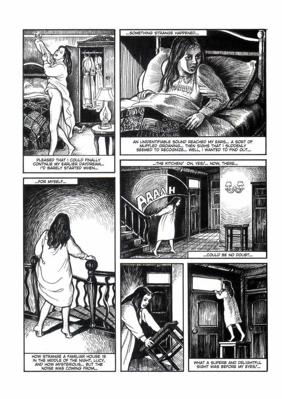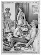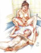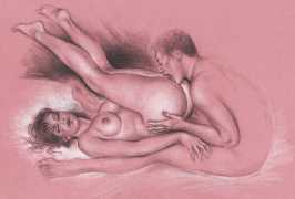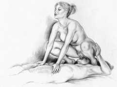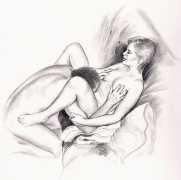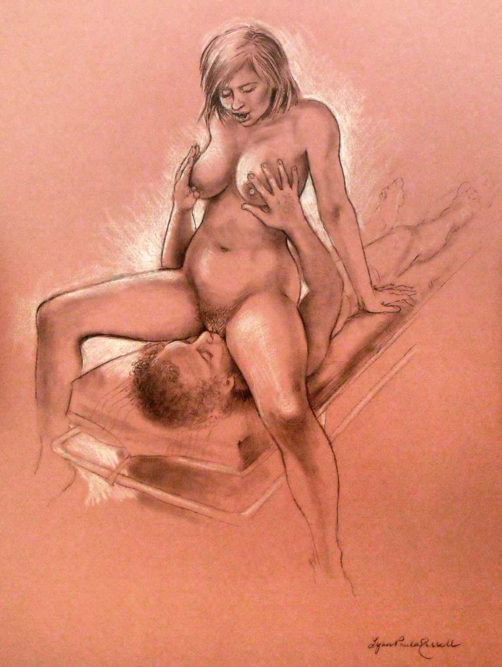 Apart from her graphic work with Janus and Februs magazines, most of Paula’s work was commissioned and published by the The Erotic Print Society, for whom she illustrated Beatrice in the Scarlet Library series, several limited edition print portfolios, the autobiographical A Sexual Odyssey, Painful Pleasures and The Illustrative Art of Lynn Paula Russell, and English-language editions of titles first published by French adult bandes dessinées magazine – Sabina, Sabina 2, The Young Governess, and Summer Holiday.
