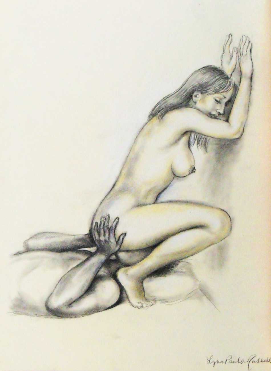 In his foreword to The Illustrative Art of Lynn Paula Russell, the late Victor Arwas, founder of the pioneering London-based Arwas Gallery, wrote ‘Serious and dedicated as an artist, Russell is also a humorous, fun-loving introvert who, paradoxically, can transform herself into a grandiose exhibitionist. This little book reproduces a variety of her pictures, forages into a dark fantasy world of perfumed eroticism strictly regimented, clad and unclad, by strange rules and stranger images; look closely at them, for many of its heroines are the artist herself, projected into her own, and other people’s, often unavowed dreams.’