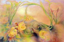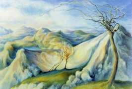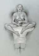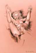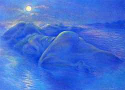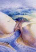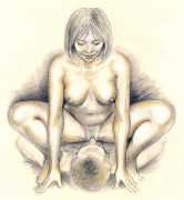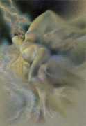 When in 2002 EPS stopped producing books and Februs ceased publishing, Paula Russell started working more in colour, both with oils and with coloured pencils. Her more recent work includes a series of ‘Bodyscapes’ in which body forms, mostly female, are used metaphysically as elements in dream landscapes. According to her website she is currently working on an erotic tarot deck, to include many elements of the magical world of the imagination she is exploring with her particular blend of sensuality and spirituality.