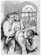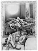 Most of Paula’s work reflects her personal journey of self-discovery in which her art intimately reflects, often in stark and painful detail, the experiences she needed in order to know at first hand the subjects that she illustrated. It was never enough merely to be interested or to use her considerable graphic skills to portray what she could imagine; she always needed to immerse herself in the explicit activities of whatever exploration or narrative she was concentrating on. The details of her experiences in video, film and modelling are outlined in the biography below; we concentrate here on her illustration work, where she pioneered the technique of detailed pencil drawing to produce realistic and believable responses to the texts she worked with.
