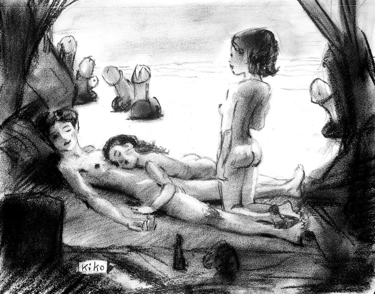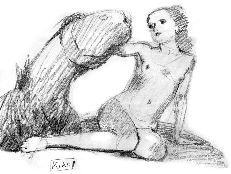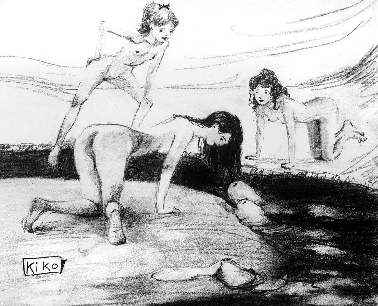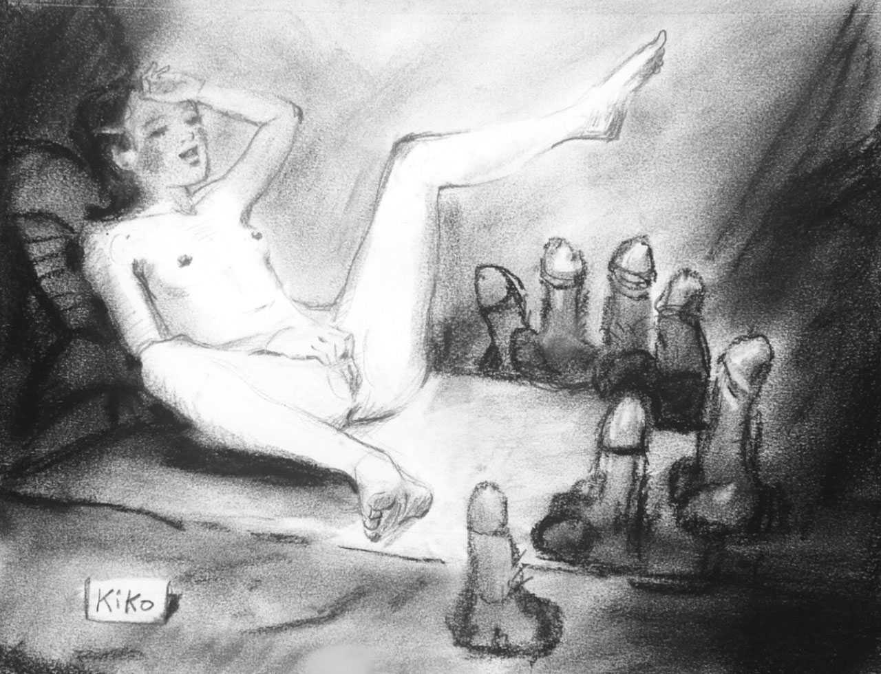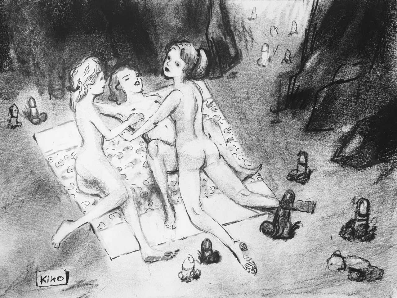 KiKo/Fernandez is best known for his brightly-coloured Indian ink paintings of children, dancers, teddy bears – and Charlie Chaplin. But he has also created street art, and – as in this series of erotic drawings – some witty and well-observed commentary on sexual relationships.
