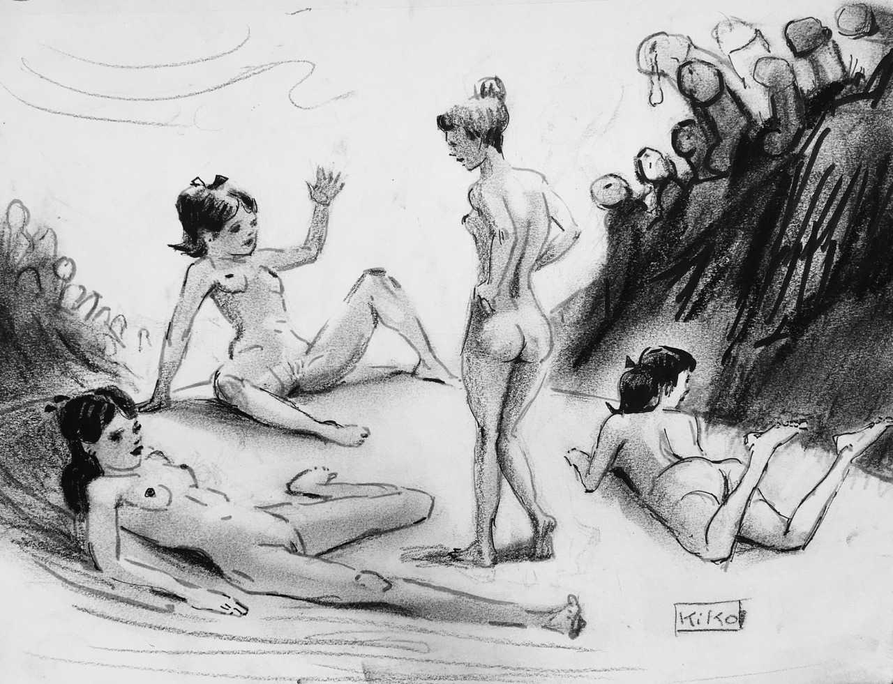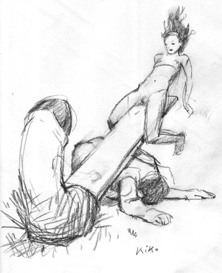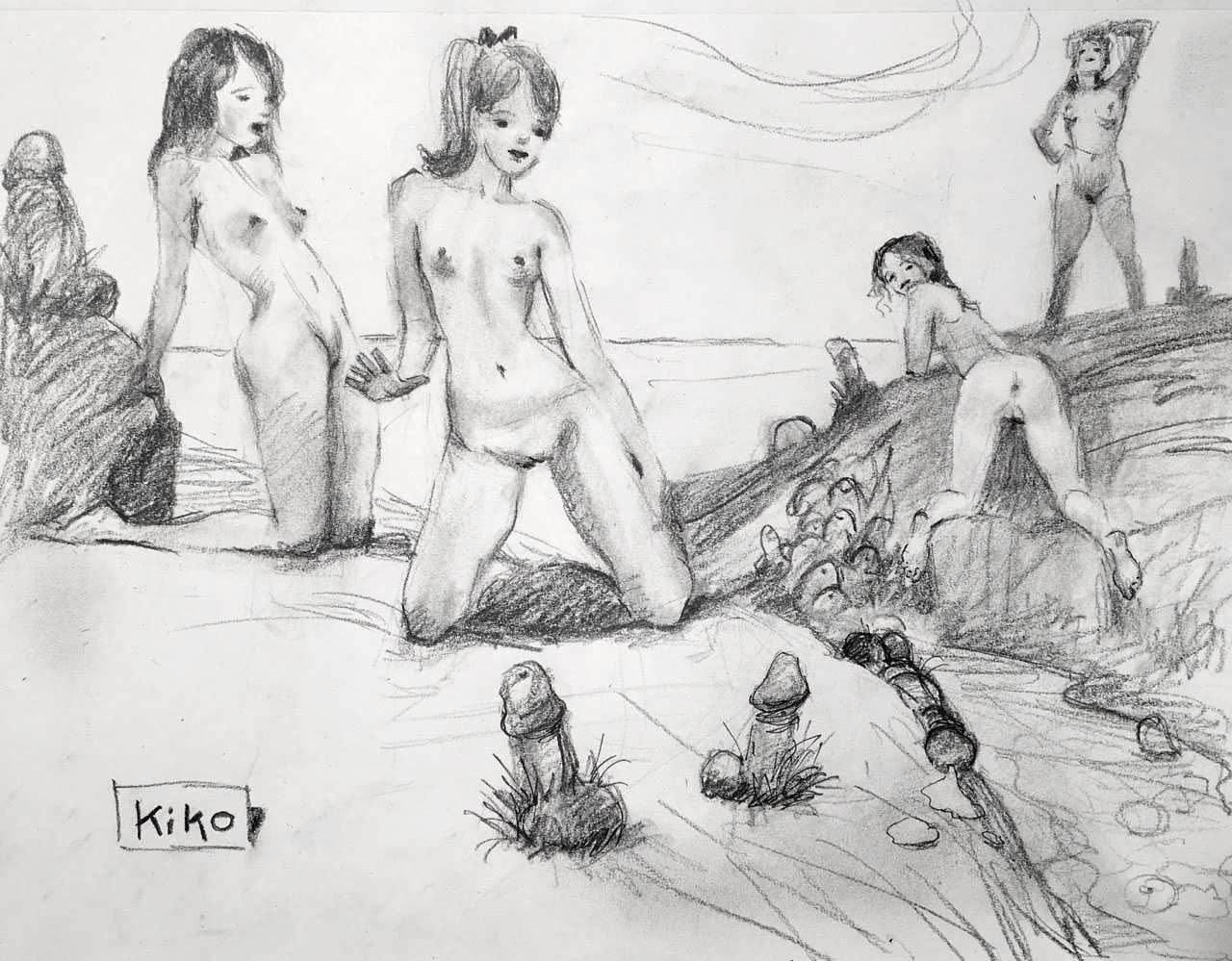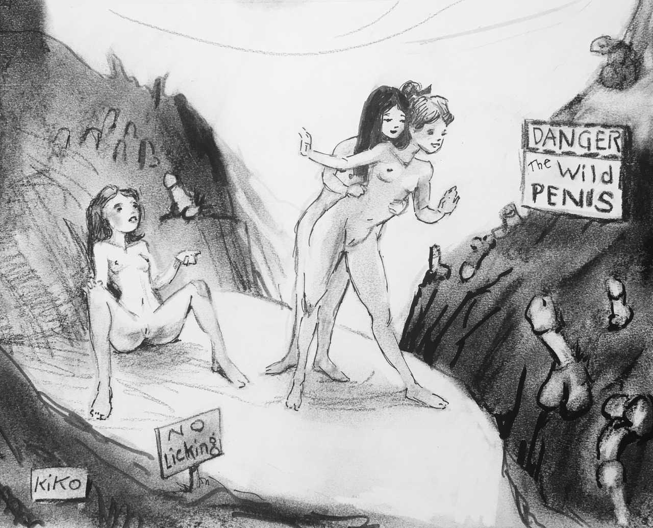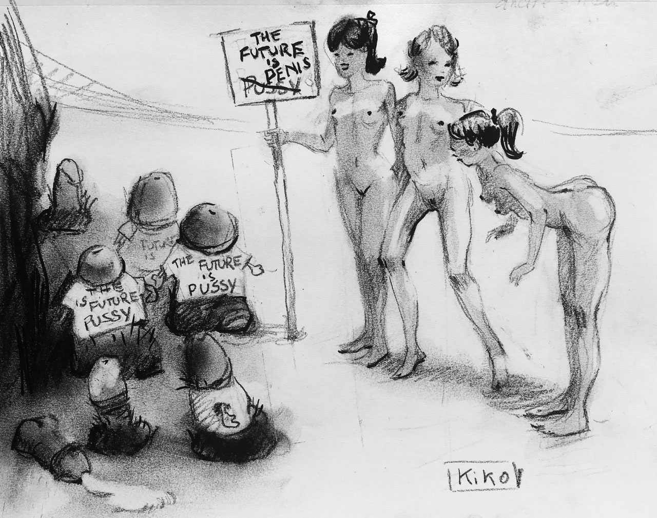 KiKo/Fernandez is best known for his brightly-coloured Indian ink paintings of children, dancers, teddy bears – and Charlie Chaplin. But he has also created street art, and – as in this series of erotic drawings – some witty and well-observed commentary on sexual relationships.
