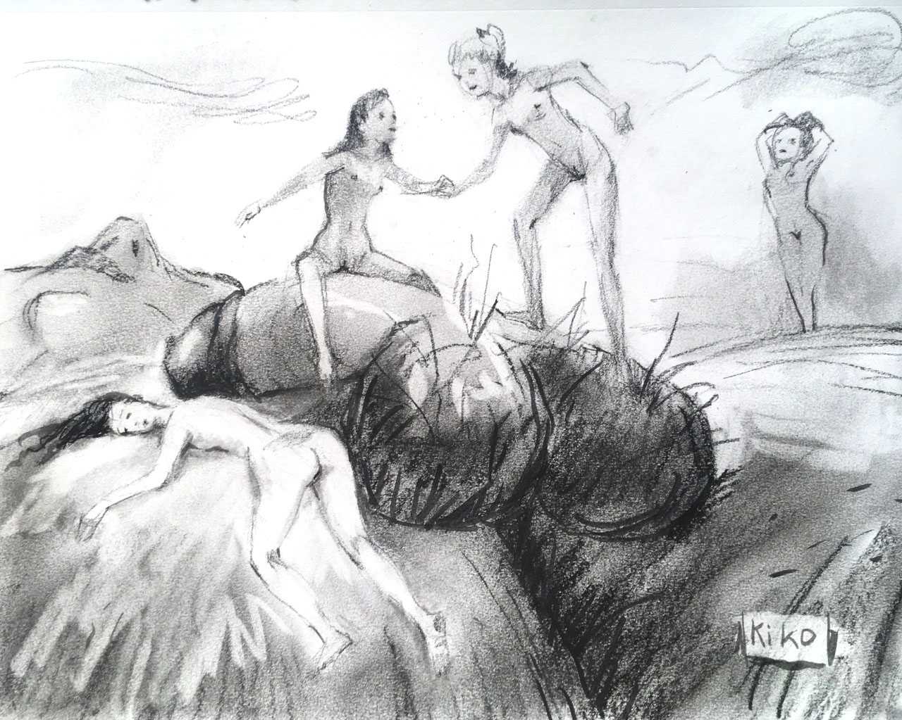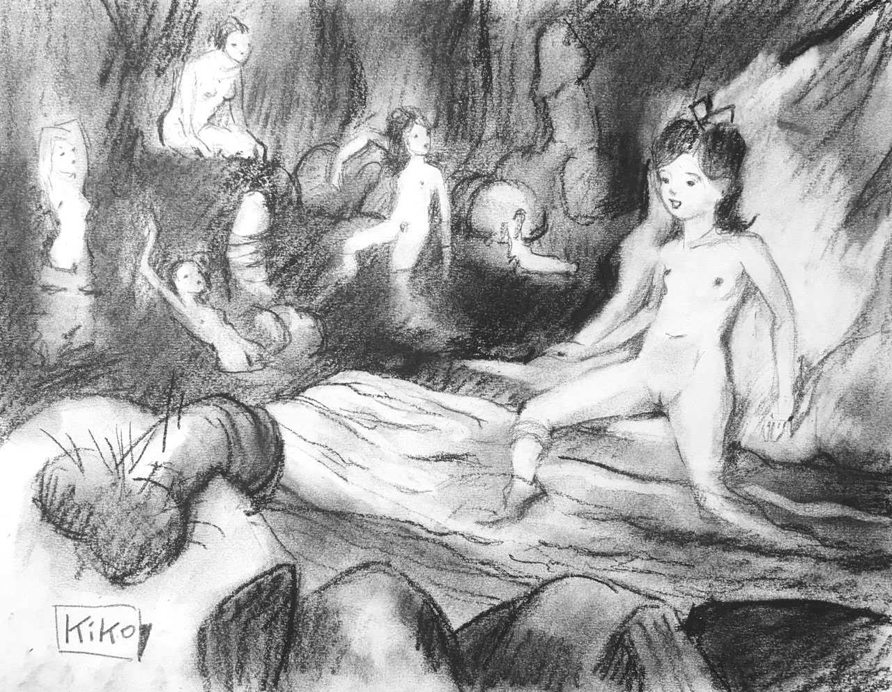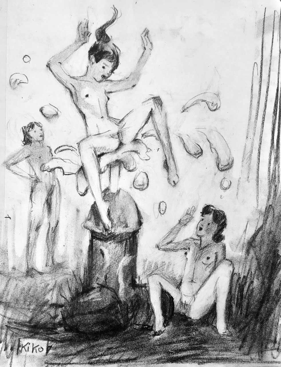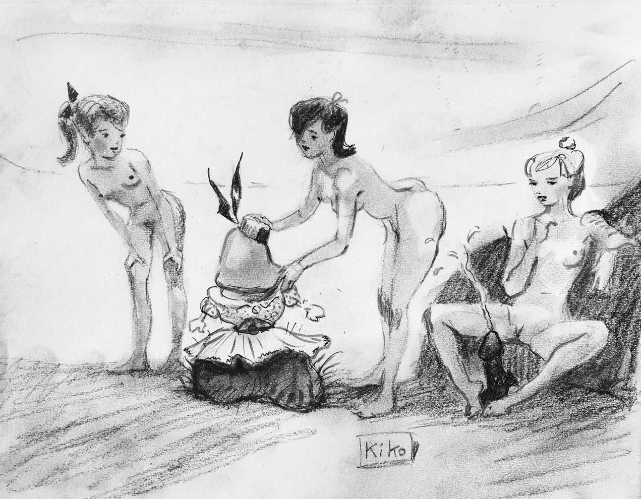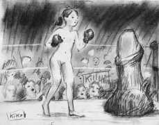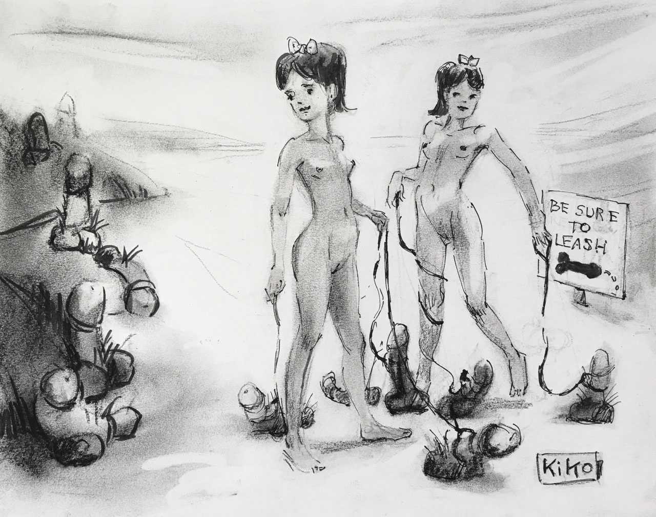 KiKo/Fernandez is best known for his brightly-coloured Indian ink paintings of children, dancers, teddy bears – and Charlie Chaplin. But he has also created street art, and – as in this series of erotic drawings – some witty and well-observed commentary on sexual relationships.
