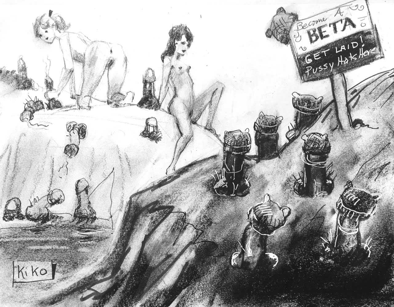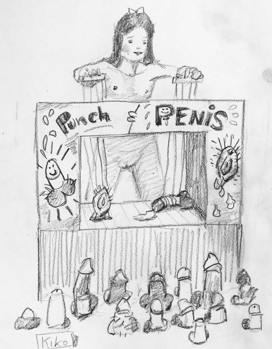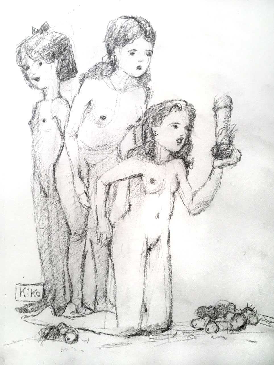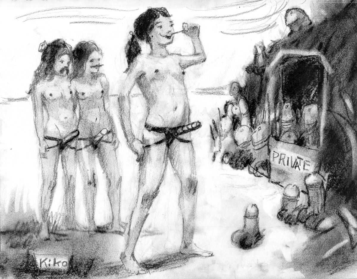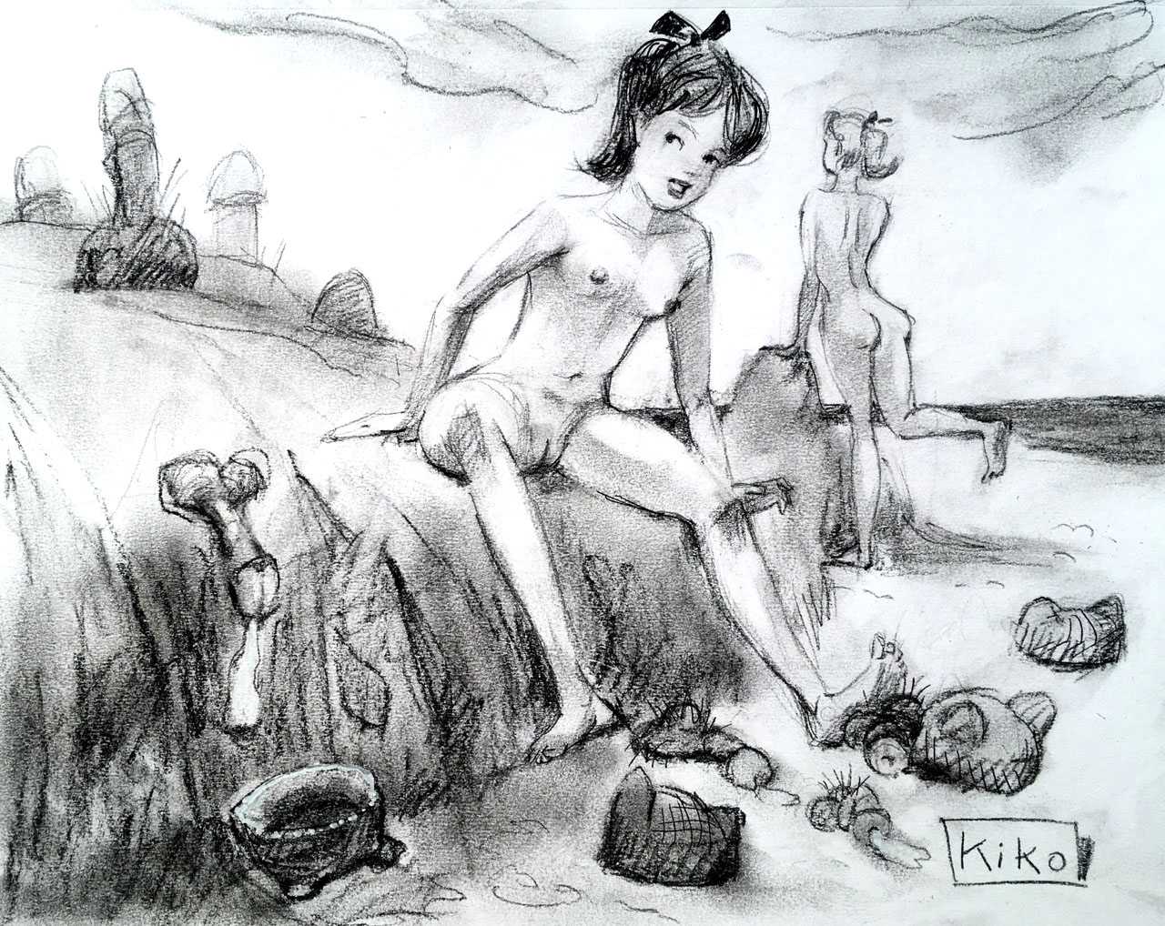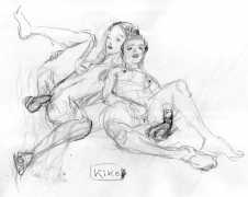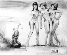 KiKo/Fernandez is best known for his brightly-coloured Indian ink paintings of children, dancers, teddy bears – and Charlie Chaplin. But he has also created street art, and – as in this series of erotic drawings – some witty and well-observed commentary on sexual relationships.