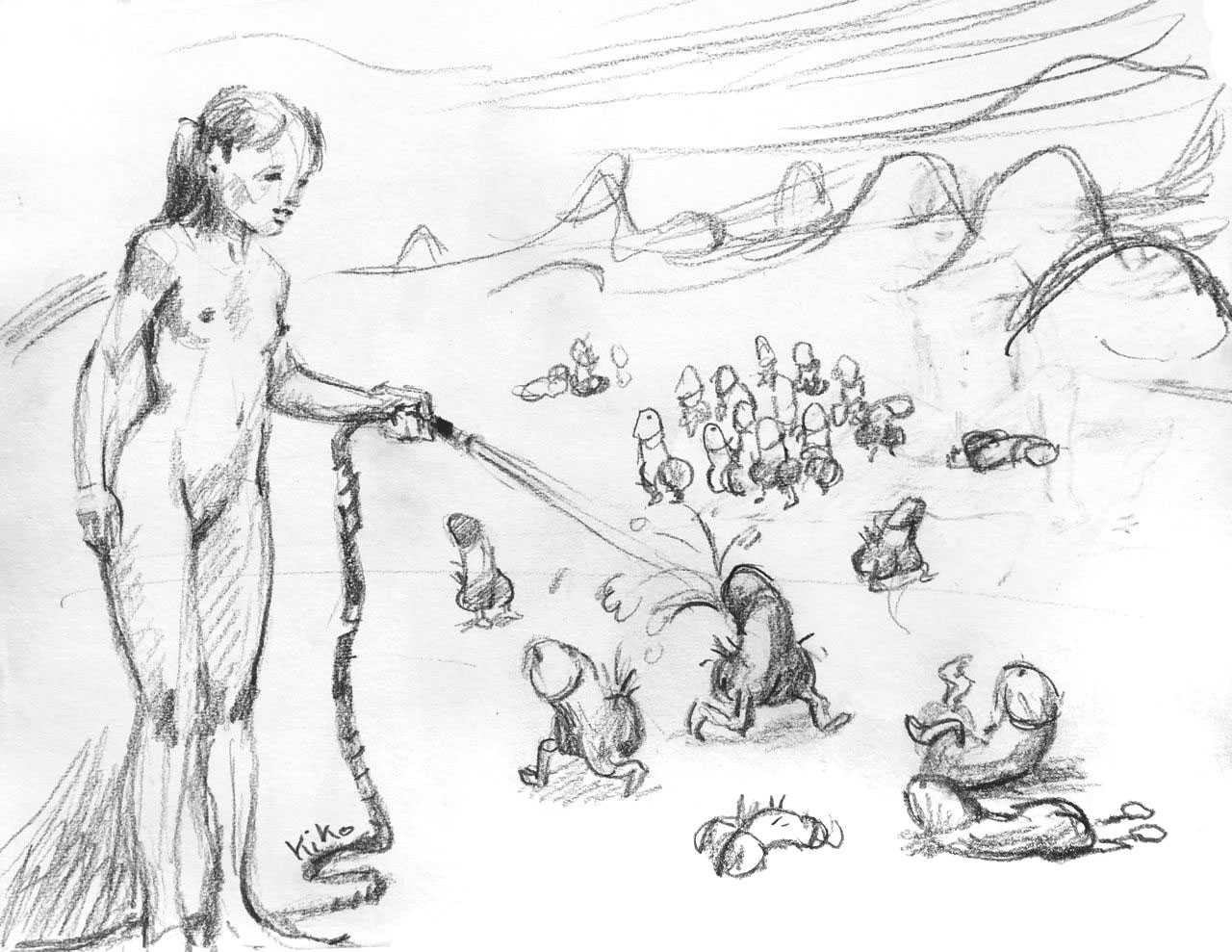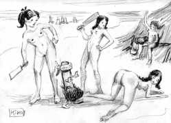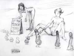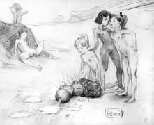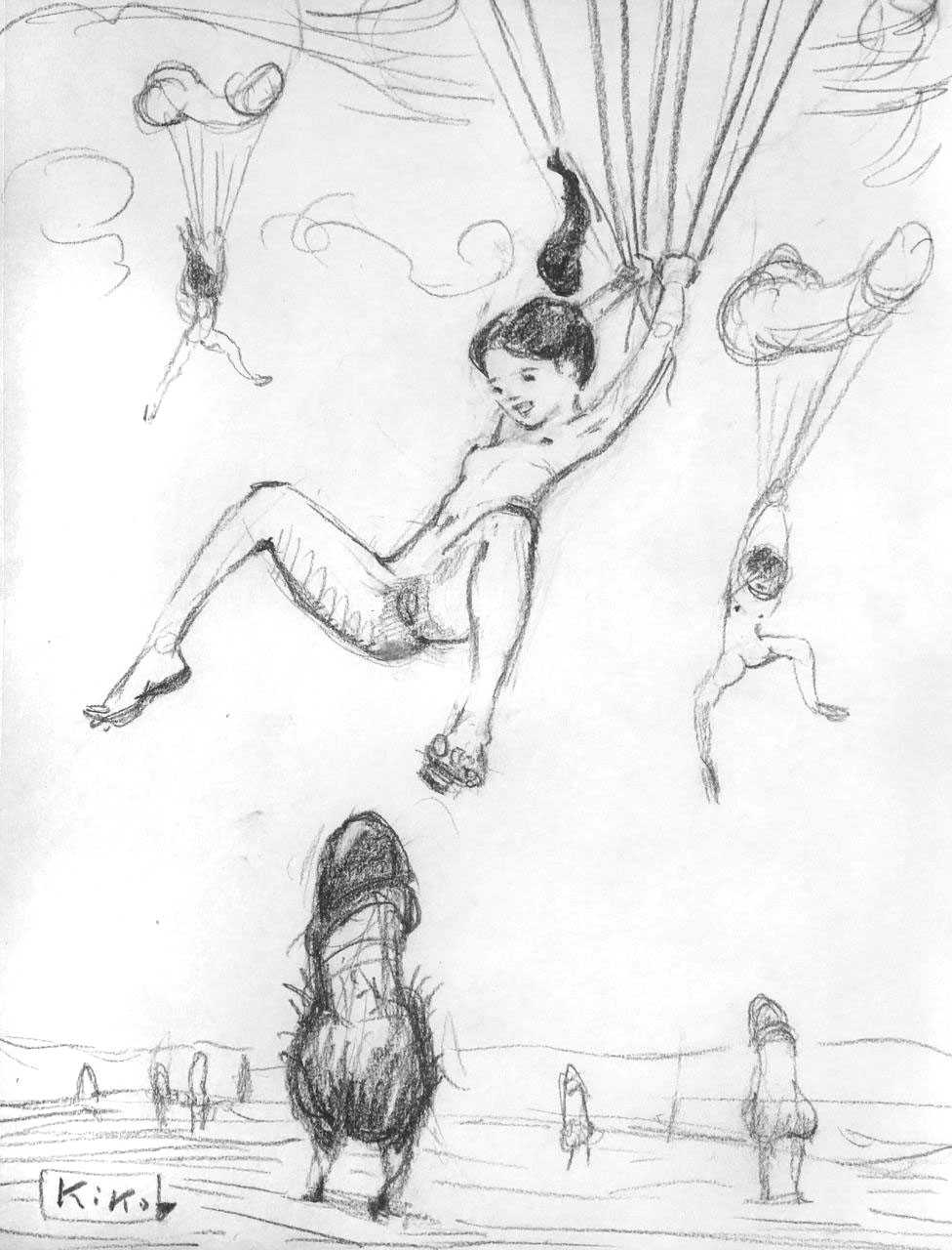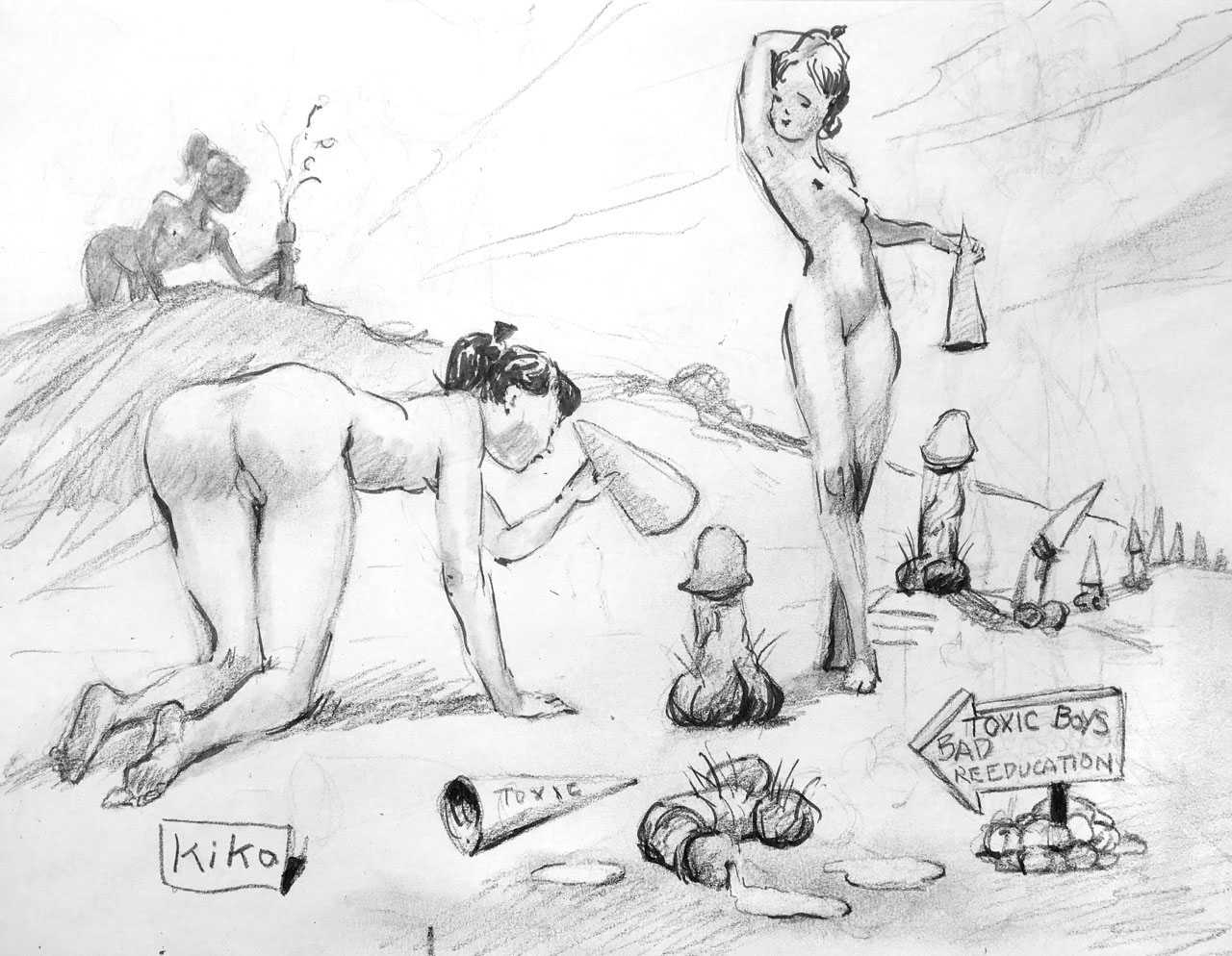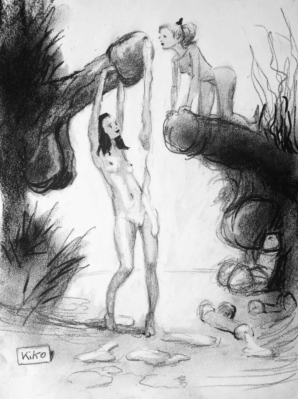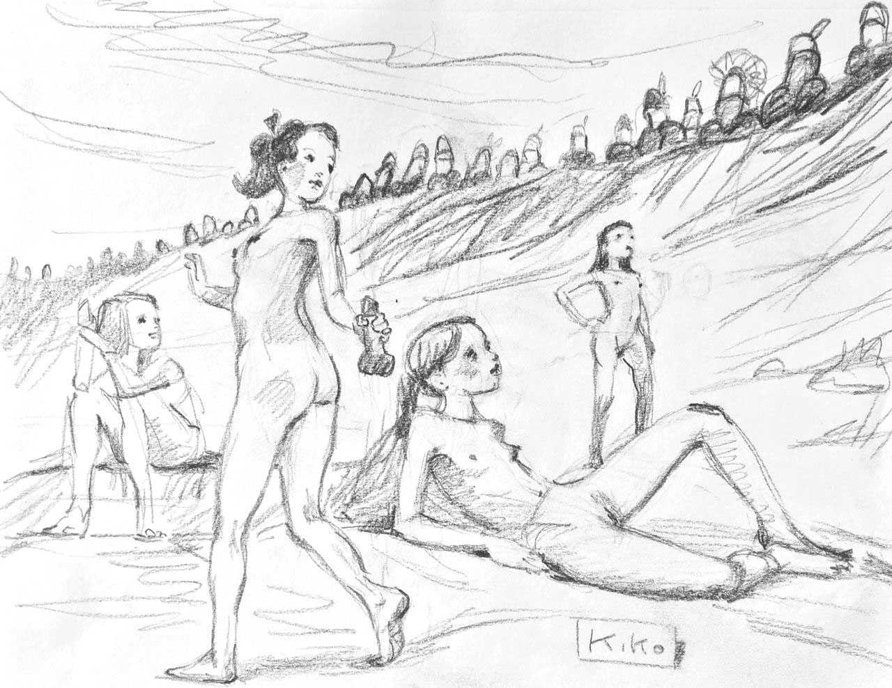 KiKo/Fernandez is best known for his brightly-coloured Indian ink paintings of children, dancers, teddy bears – and Charlie Chaplin. But he has also created street art, and – as in this series of erotic drawings – some witty and well-observed commentary on sexual relationships.