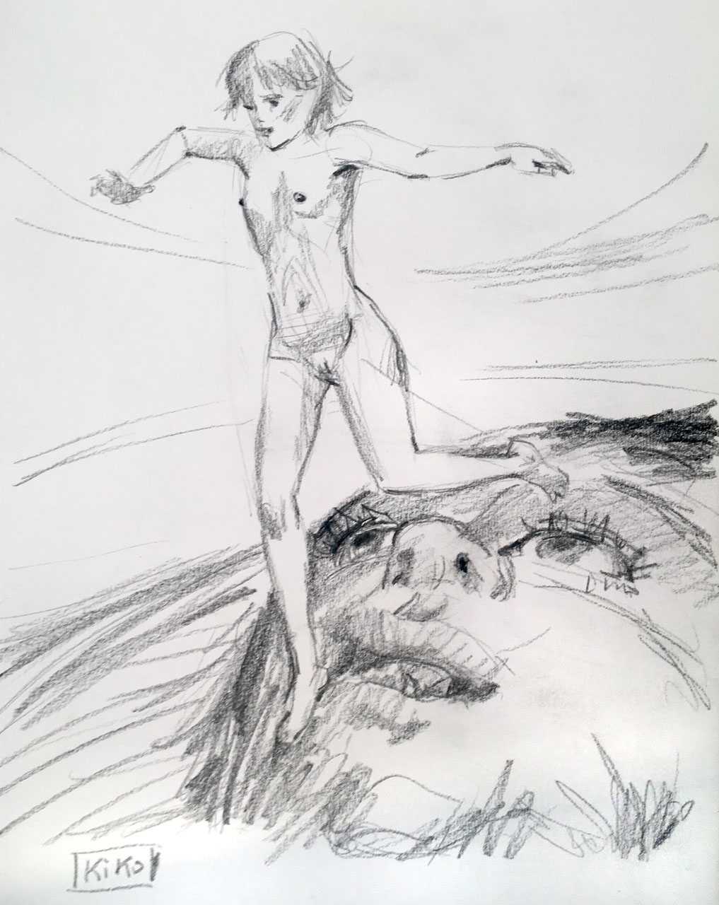 The French artist known universally as KiKo, his childhood nickname, is actually Manuel Fernandez, who grew up in the seaside town of Martigues, near Marseilles. He always had a fondness for drawing and painting, though his family’s tradition of sailing and fishing meant that he spent much of his time after leaving school on the family’s tuna boat. But he never stopped drawing and painting, and in 2017 was successful enough with his art to be able to give himself entirely to this aspect of his life.