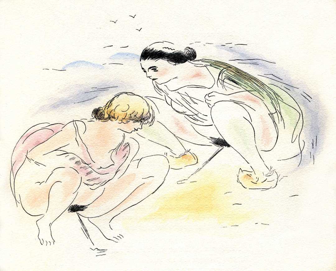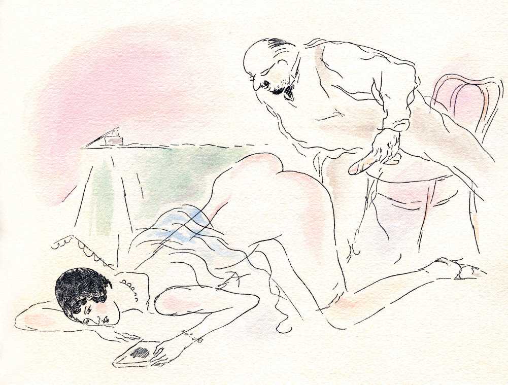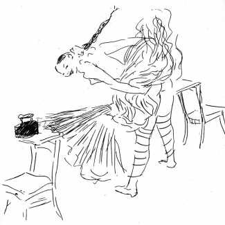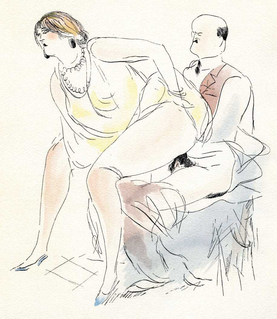 When I finally summoned the courage to ask my question, she put the iron down on the board and looked at me in a funny way. Then she began to laugh, and suddenly, grabbing her petticoats with both hands, she raised them up high, flapped them onto her back, and exclaimed, ‘Well, here it is, it’s not complicated!’