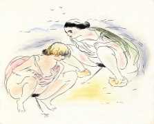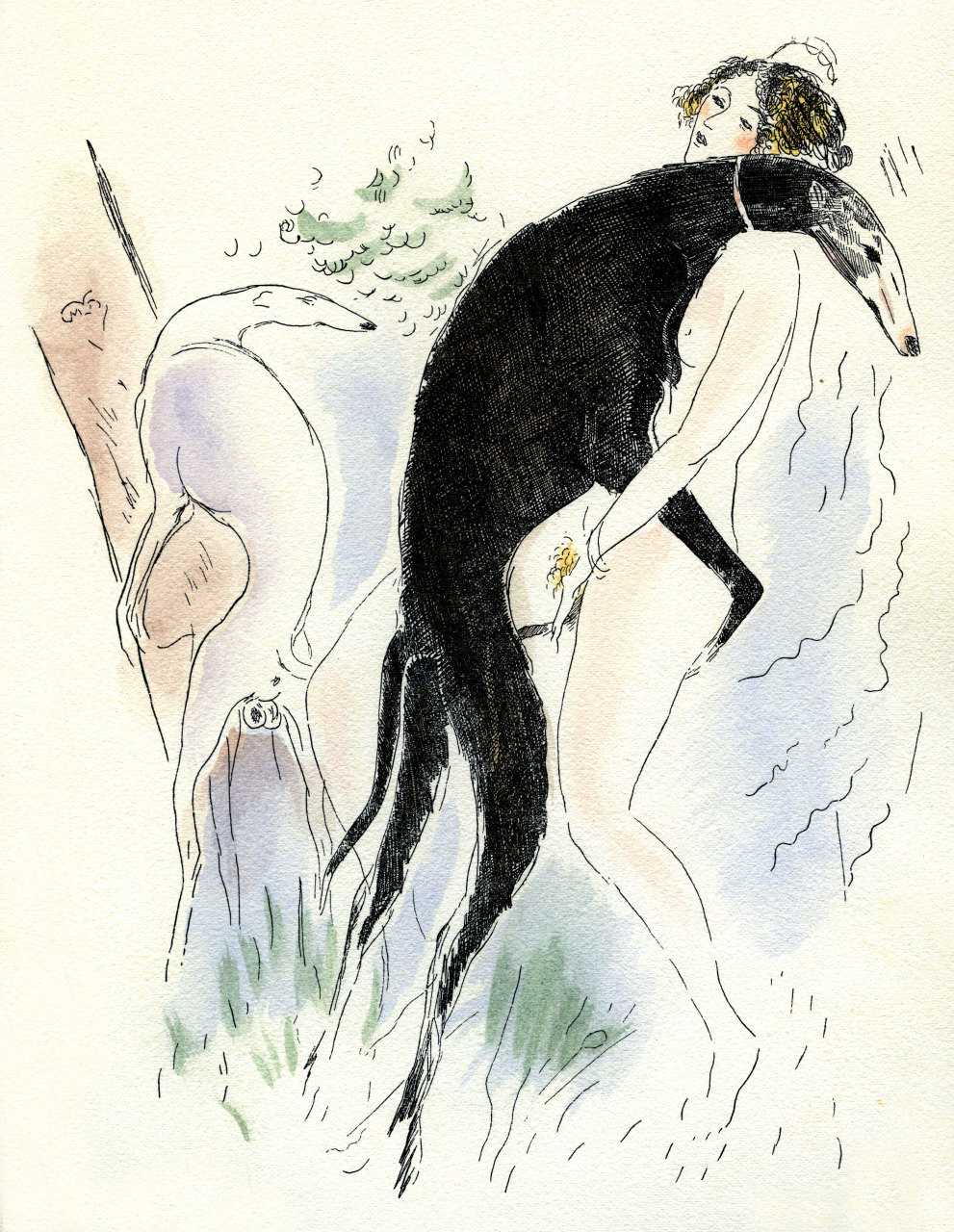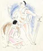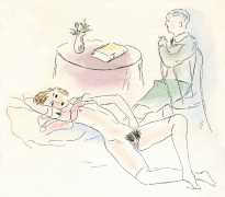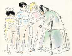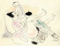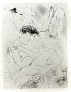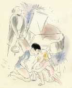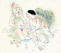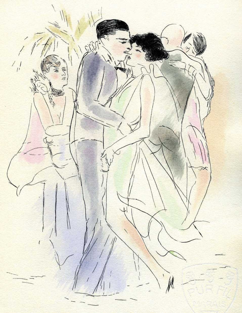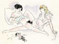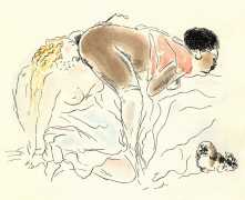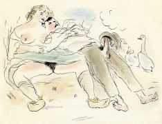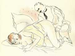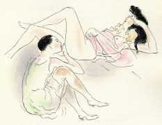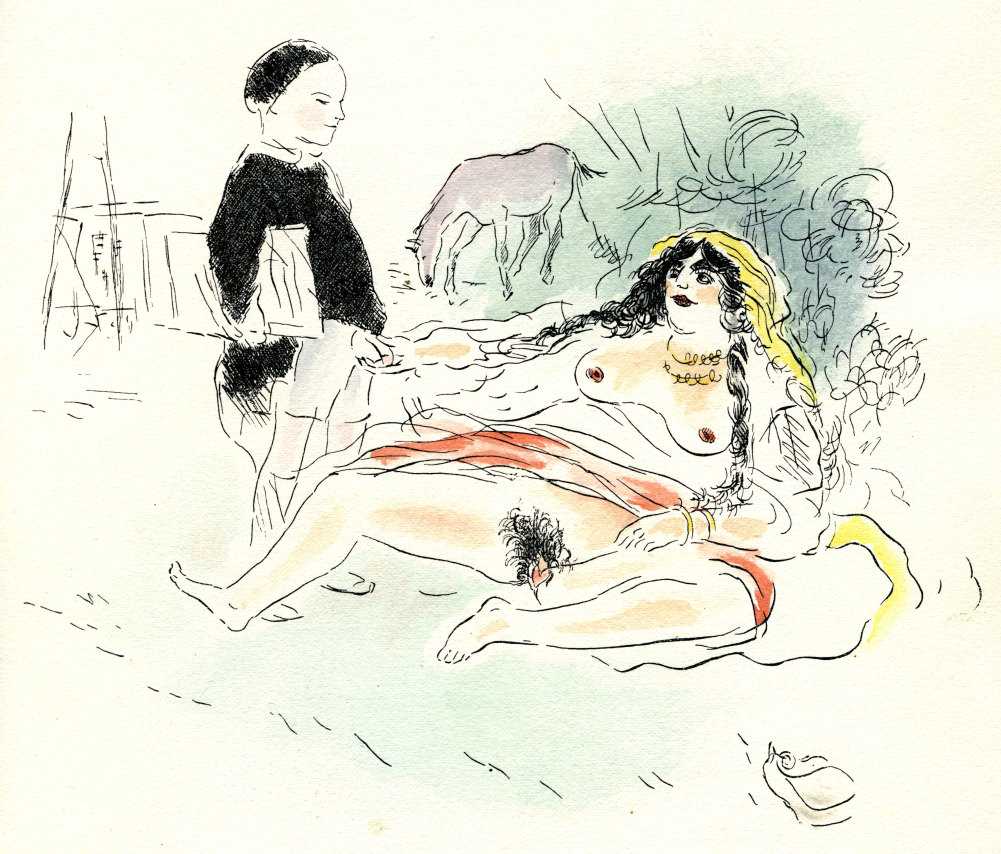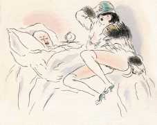 So began a lifetime of fascination with the human body and its interactions with other human bodies. Marcel Vertès was in most of the right places at the right times to make the most of his precocious artistic talent. Born and raised in Budapest, he was in Paris during the vibrant interwar years and then in New York when so many artists fled Europe during the second world war, though he regularly returned to France after the war. While his main work was in illustration and fashion design, one of his claims to fame was as a design consultant to the 1952 award-winning film Moulin Rouge, about Henri de Toulouse-Lautrec’s 1890s Paris. In the film Marcel’s hand is seen producing ‘original’ Toulouse-Lautrec paintings, the ‘hand of the artist’ being individually credited. Ironically this started a myth that he continued to pass off his own ‘Toulouse-Lautrecs’ as genuine; while it may have been in character for Marcel to prove how stupid art collectors can be, there is no proof that it ever happened.