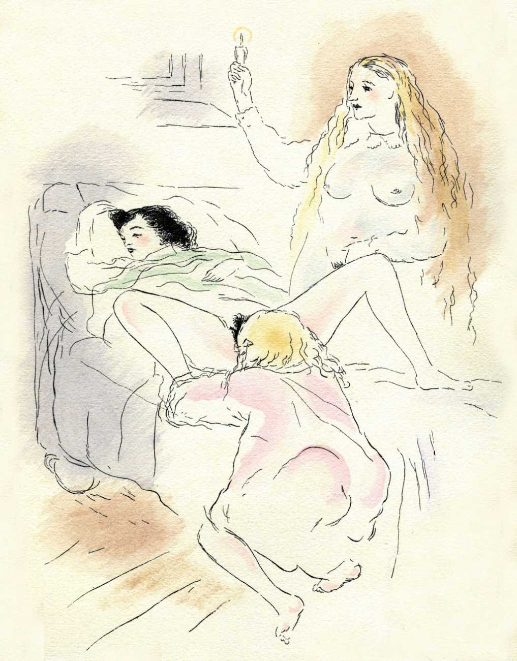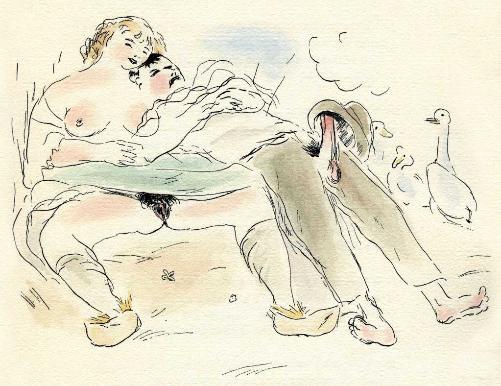 Memory number two is of a neighbour whose husband spent his time on the road, selling various articles to the peasants and rarely returning to his wife. She was beautiful; I could not understand how he could stay away from such a beautiful woman. She always smelled good. She read a lot of German humorous newspapers, and I had permission to go and visit her. We looked together at the large colour pictures of superb women with generous décolletés, the separation of their breasts approaching the sublime.