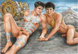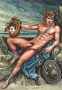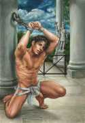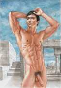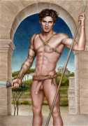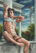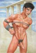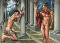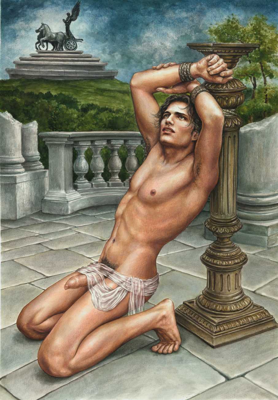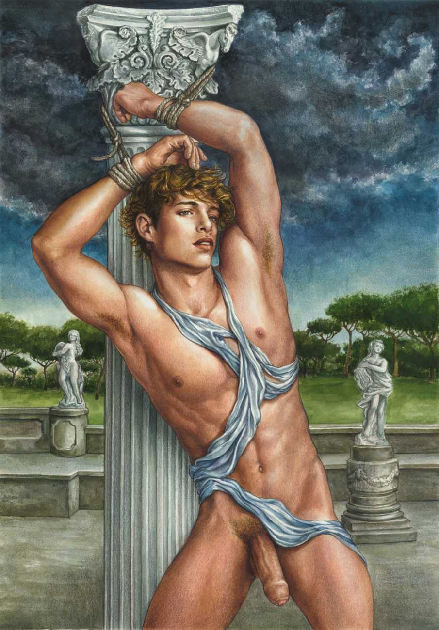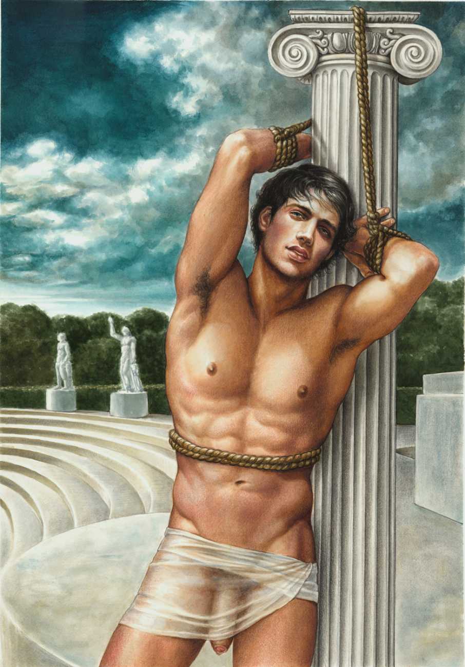 With his realistic style that blends pictorial effect with a taste for comics, Marco Zagato combines influences ranging from magic realism to surrealism with hints of symbolism. In this way he has approached the depiction of many characters and themes, especially mythology and Greek and Roman historical figures. Alexander the Great and Hephaestion, Emperor Hadrian and Antinous, Achilles and Patroclus, Heracles, Hermes, Perseus and Prometheus are among the main characters in his drawings, but he also portrays many of the minor characters, often the lovers of the more famous characters, not to mention slaves and gladiators struggling to regain their freedom and dignity.