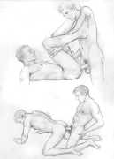 In the early 2000s he moved to live in Barcelona for five years, during which time he created a series of works inspired by abstract expressionism painting; he also began to develop a science fiction comic book with two gay boys as protagonists. After his returned to Italy he started creating erotic drawings in black and white, which quickly found a response from his online followers; this led to drawings using coloured pencils and watercolour.