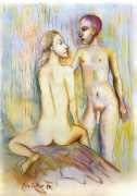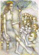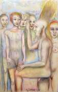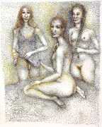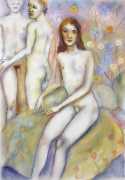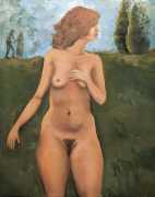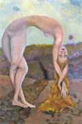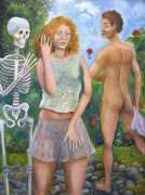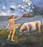 Surrealism is very important to Price, and his imagery has been influenced by many surrealists and borderline surrealist artists such as Paul Delvaux, Odilon Redon, Leonor Fini, Jean Mammen, Gerda Wagener, Henry Scott Tuke and Sascha Schneider. The eagle-eyed will notice that some of the canvases are signed by Mo Potter; the precise relationship between the similarly-initially artists is a work in progress.