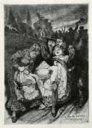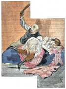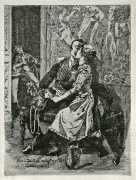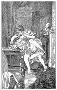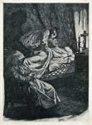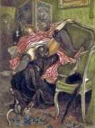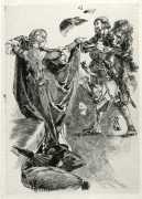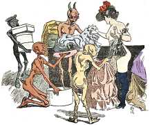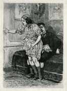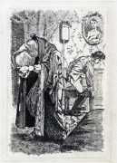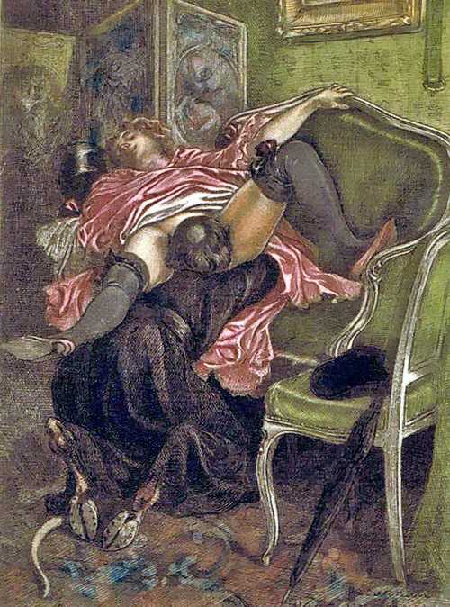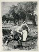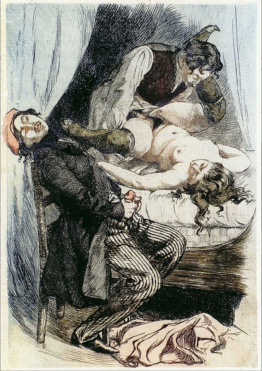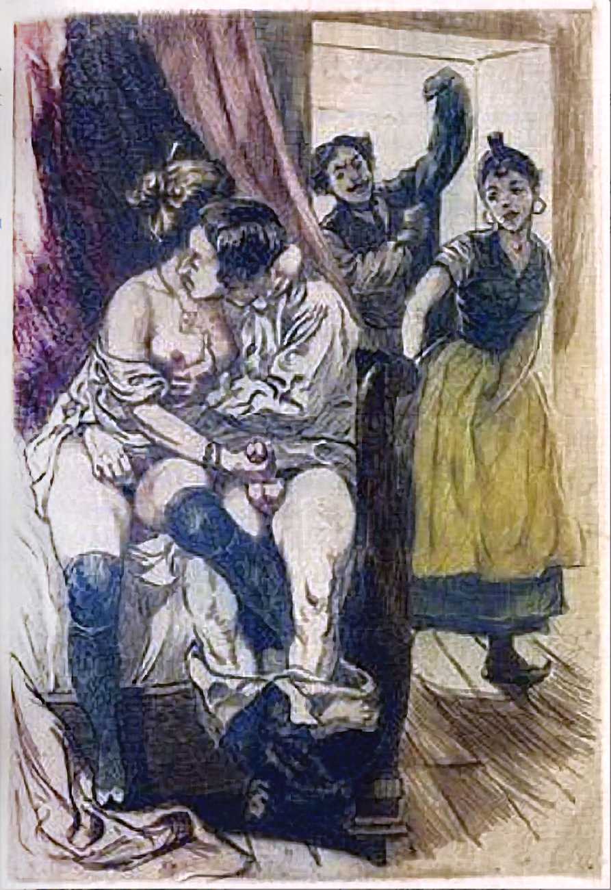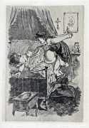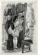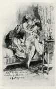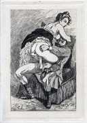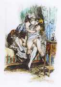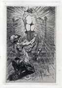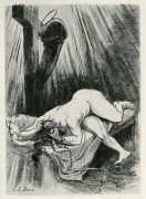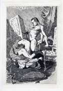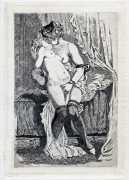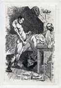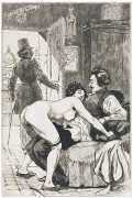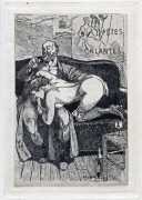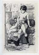 A turning point in his career was a meeting in 1899 with the notorious English erotica collector and publisher Charles Carrington, who recognised in van Maële’s early erotic work, especially his 1893 engravings for Haraucourt’s La légende des sexes, the perfect visual complement to the risqué texts for which Carrington saw a ready market. Carrington became van Maële’s patron and employer, and for the next few years van Maële was the most popular of Carrington’s illustrators, working on the most important of his publications. Carrington entrusted to van Maële at least eight of the flagellation novels that became a staple of the French erotic book trade. The high point of van Maële’s work came in 1905–7, when he produced La grande danse macabre des vifs, and fifteen powerful etchings for Paul Verlaine’s ‘erotic trilogy’.