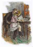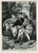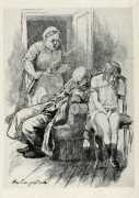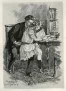 An accomplished engraver with a sharp ironic eye and a whimsical imagination, Maurice François Alfred Martin van Miële is better known by his pseudonym Martin van Maële. His mother, from whom he adopted the name van Maële, was Flemish, and his father, Louis Alfred Martin – himself an engraver and later a teacher at the École des Beaux-Arts in Geneva – was French. Martin van Maële grew up in Boulogne sur Seine near Paris; mostly self-taught, he worked as a freelance illustrator in Paris and Brussels.