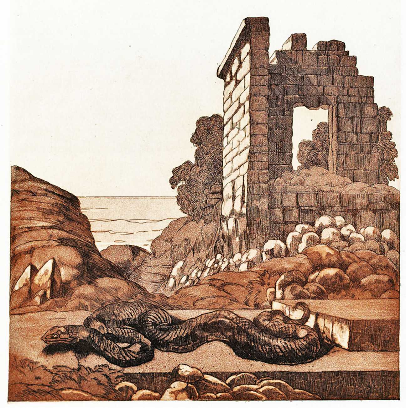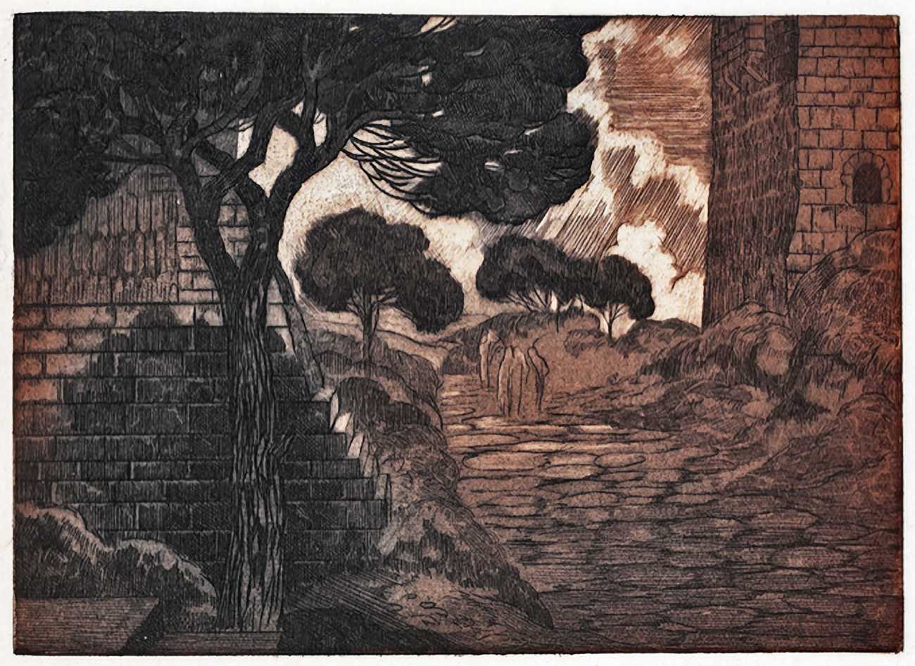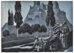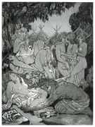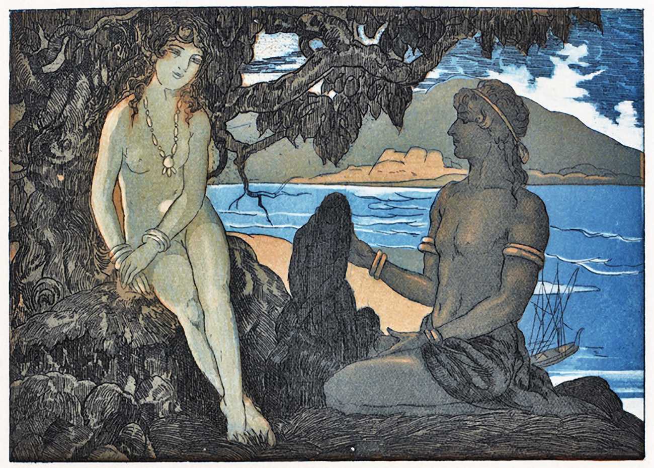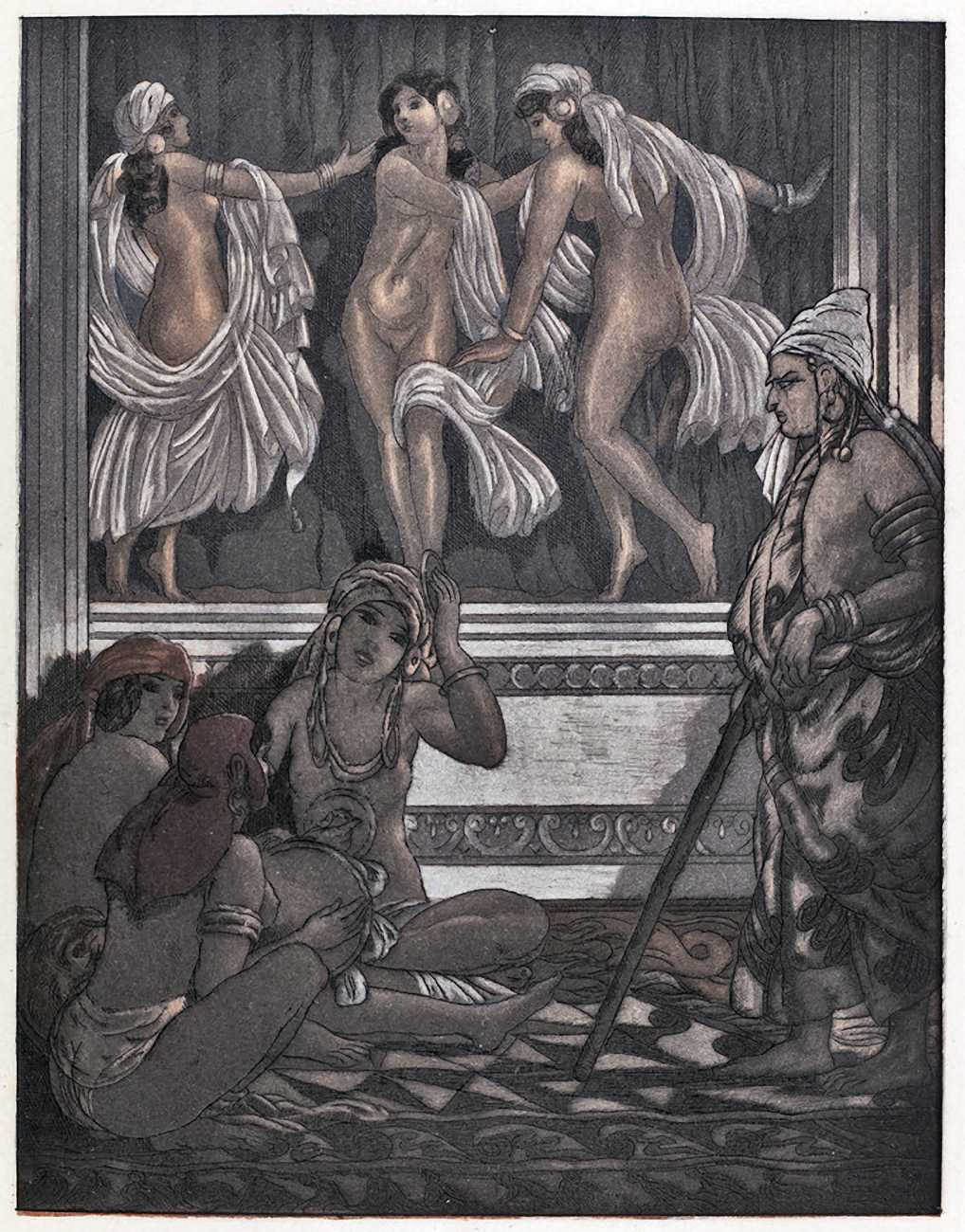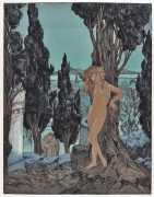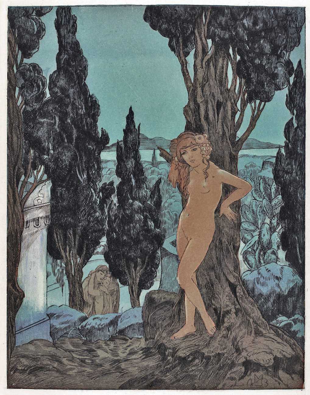 Maurice Jaubert de Becque grew up in Saumur in the Loire valley of western France, and studied art in Paris. Establishing a studio there, he was a regular exhibitor at the Salon d’Automne from 1901 onwards. His finest accomplishments, however, were in the field of the illustrated book, which he adorned with many original etchings. He was commissioned by Paris publishers to illustrate a wide range of works by authors including Baudelaire, Daudet, Gautier, Juvenal, Kipling, La Fontaine, Loti, Rimbaud, Stendhal and Villon.