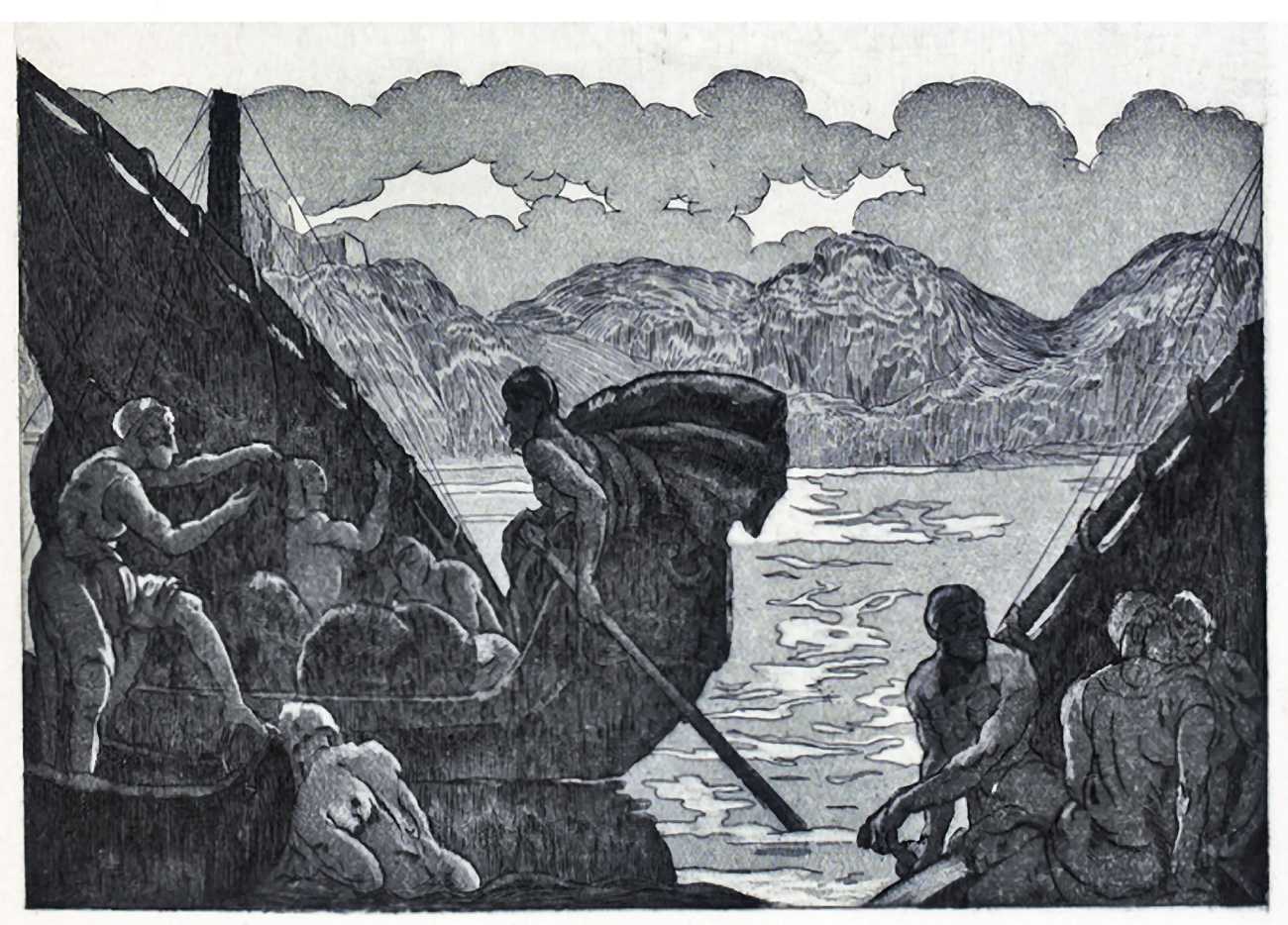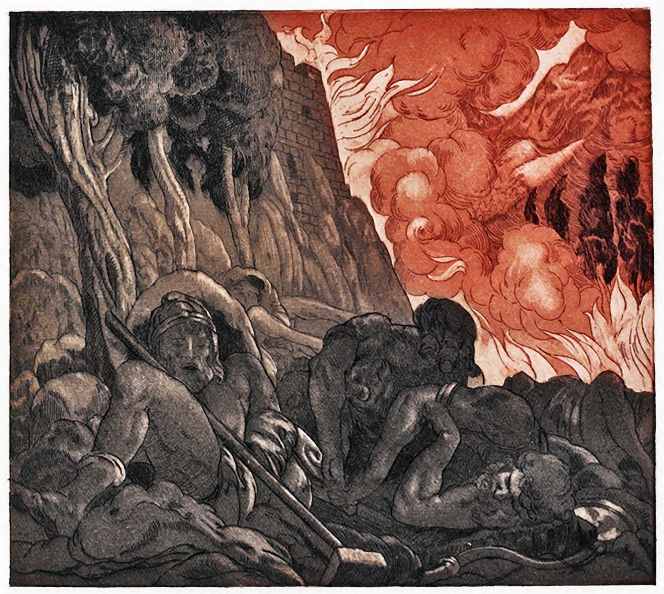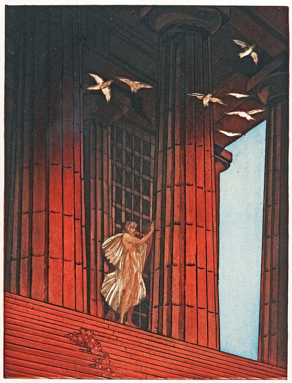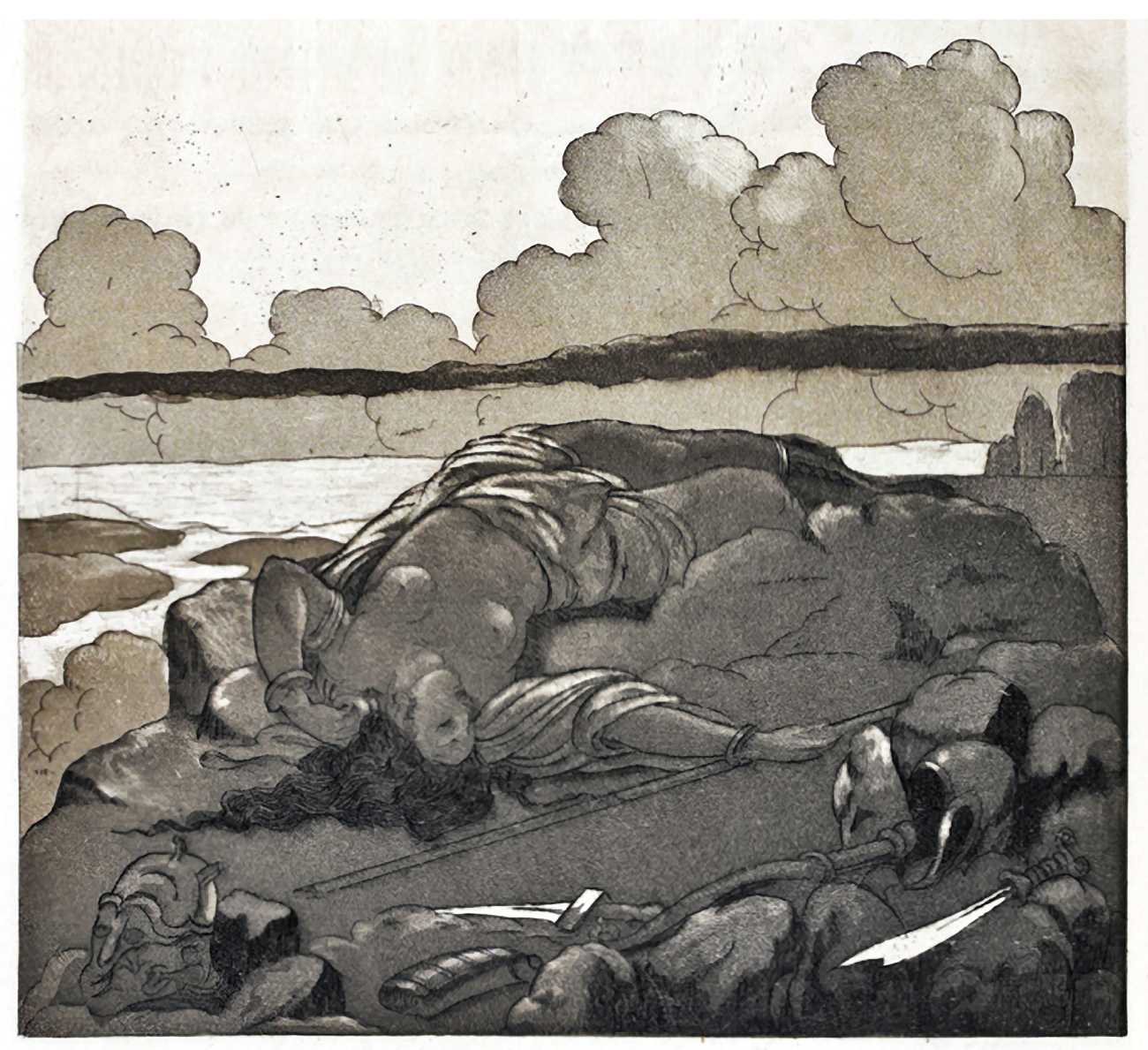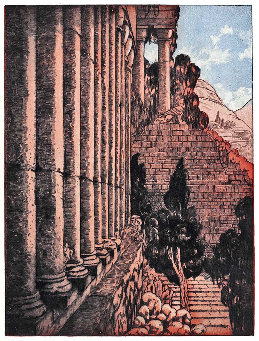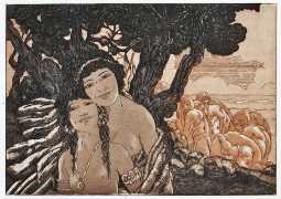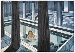 Maurice Jaubert de Becque grew up in Saumur in the Loire valley of western France, and studied art in Paris. Establishing a studio there, he was a regular exhibitor at the Salon d’Automne from 1901 onwards. His finest accomplishments, however, were in the field of the illustrated book, which he adorned with many original etchings. He was commissioned by Paris publishers to illustrate a wide range of works by authors including Baudelaire, Daudet, Gautier, Juvenal, Kipling, La Fontaine, Loti, Rimbaud, Stendhal and Villon.