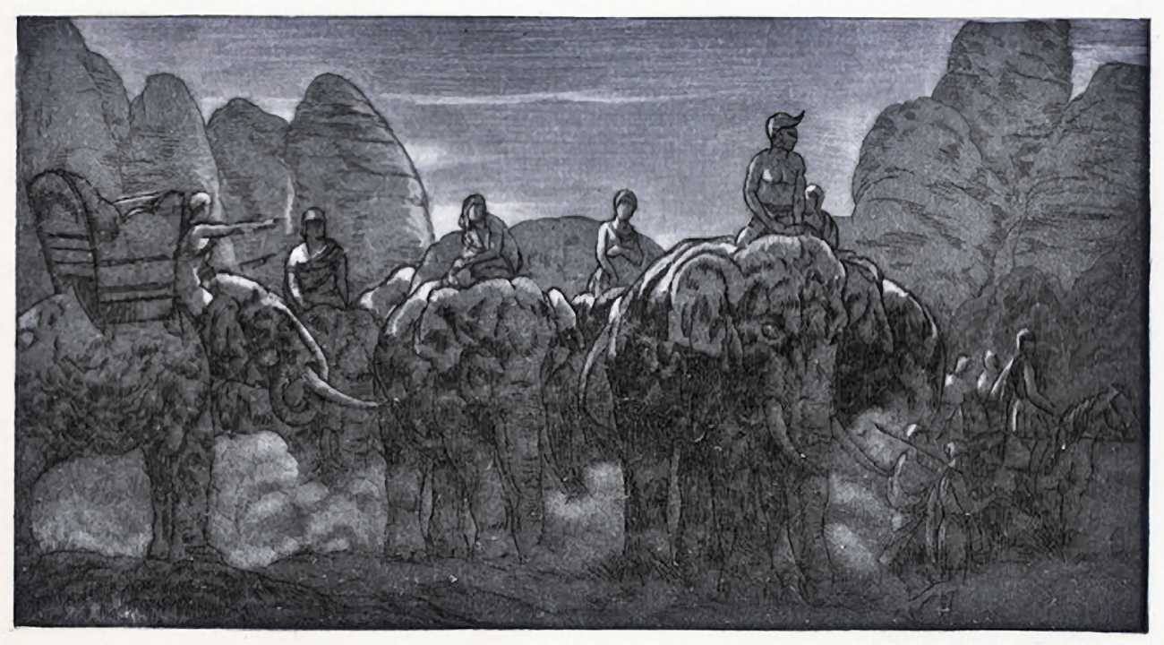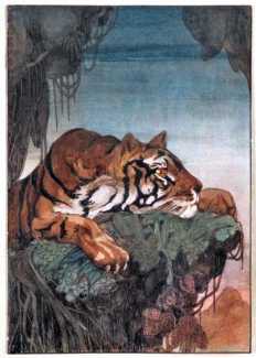 He also worked for other publishers, and some of his best illustrations were made for the 1930 Éditions Kra two-volume set of Kipling’s Jungle Books.