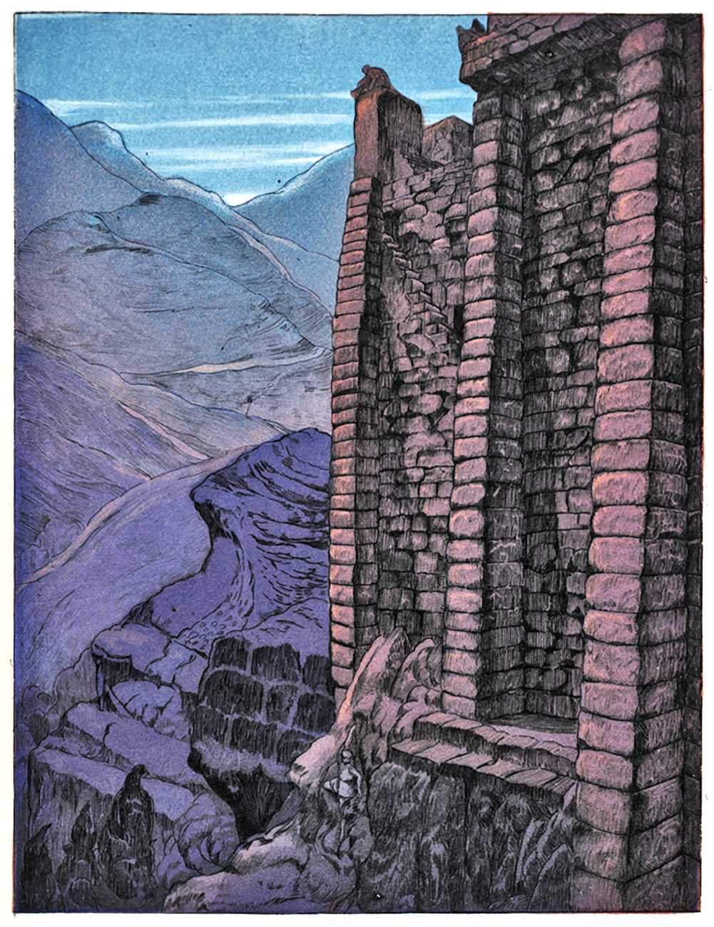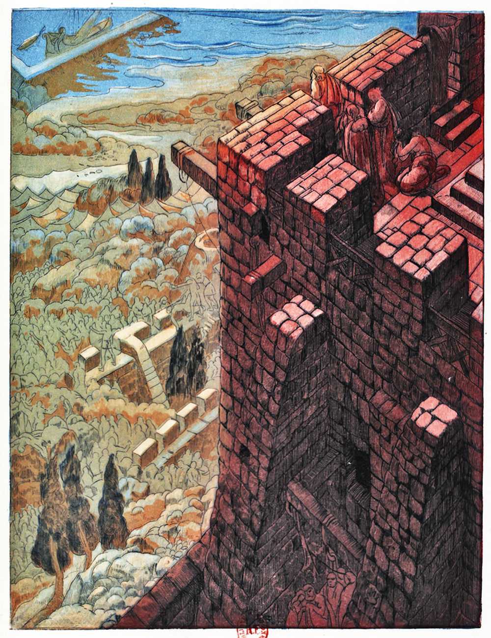 Maurice de Becque was a highly-talented engraver and illustrator, and took enormous pains to produce highly-detailed work. His backgrounds are always meticulously worked, even where they are almost too dark to distinguish the detail.