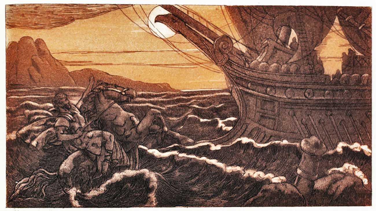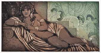 In 1910 de Becque became acquainted with Georges-Célestin Crès (1875–1935), who two years earlier had opened a bookshop and started to publish illustrated books. Crès worked with Adolphe van Bever to produce a collection entitled ‘Les maîtres du livre’ (The Masters of the Book), which he followed up with a series called ‘Artistes nouveaux’ (New Artists), overseen by George Besson. Both series were beautifully produced but relatively inexpensive, and were highly popular with the reading public. De Becque’s first Crès commissions came in 1914, with J.H. Rosny’s Les autres vies et les autres mondes (Other Lives, Other Worlds) and Louis Veuillot’s Les odeurs de Paris (The Odours of Paris). Maurice de Becque continued to work with Georges Crès until 1933, illustrating more than twenty books.