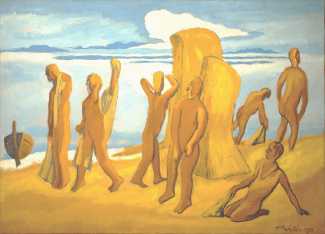 In 1912 Pechstein was expelled from the Berlin Secession for being too conventional, though his style clearly appealed to a wider audience. His paintings eventually became more primitivist, incorporating thick black lines and angular figures. At the breakout of World War I, Pechstein became interned in Japan and was then sent to Germany to fight on the Western Front in 1916. Despite his notably conservative stance and style, after the war Pechstein joined two radical socialist groups – the Arbeitsrat für Kunst and the November Group. In 1922 Pechstein became a professor at the Berlin Academy.