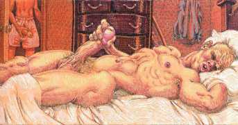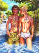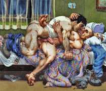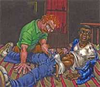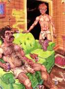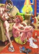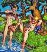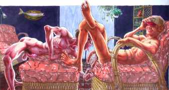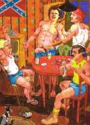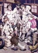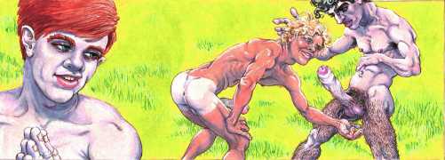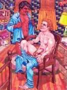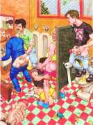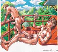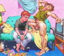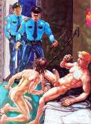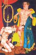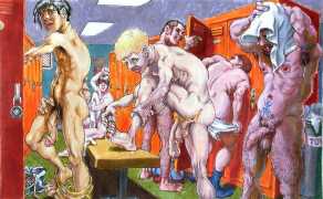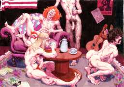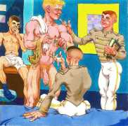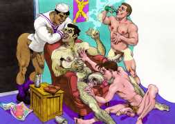 Michael Kirwan was one of the most productive, original and well-known artists of the American gay scene, his brightly-coloured and well-observed paintings capturing every aspect of the fantasy lives of men loving men. Though identifying as gay himself, he regularly drew scenes which included women, especially if they had plenty of flesh.