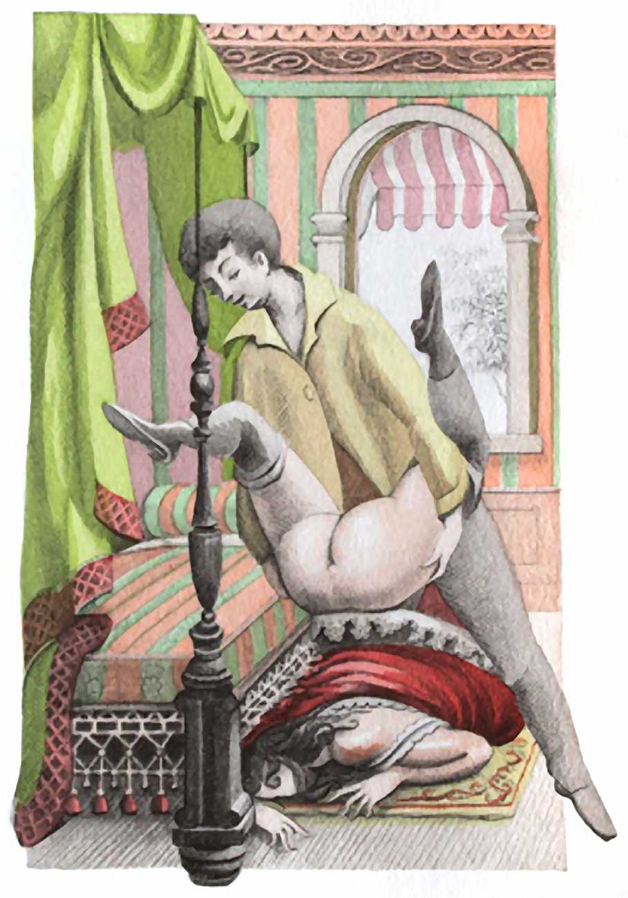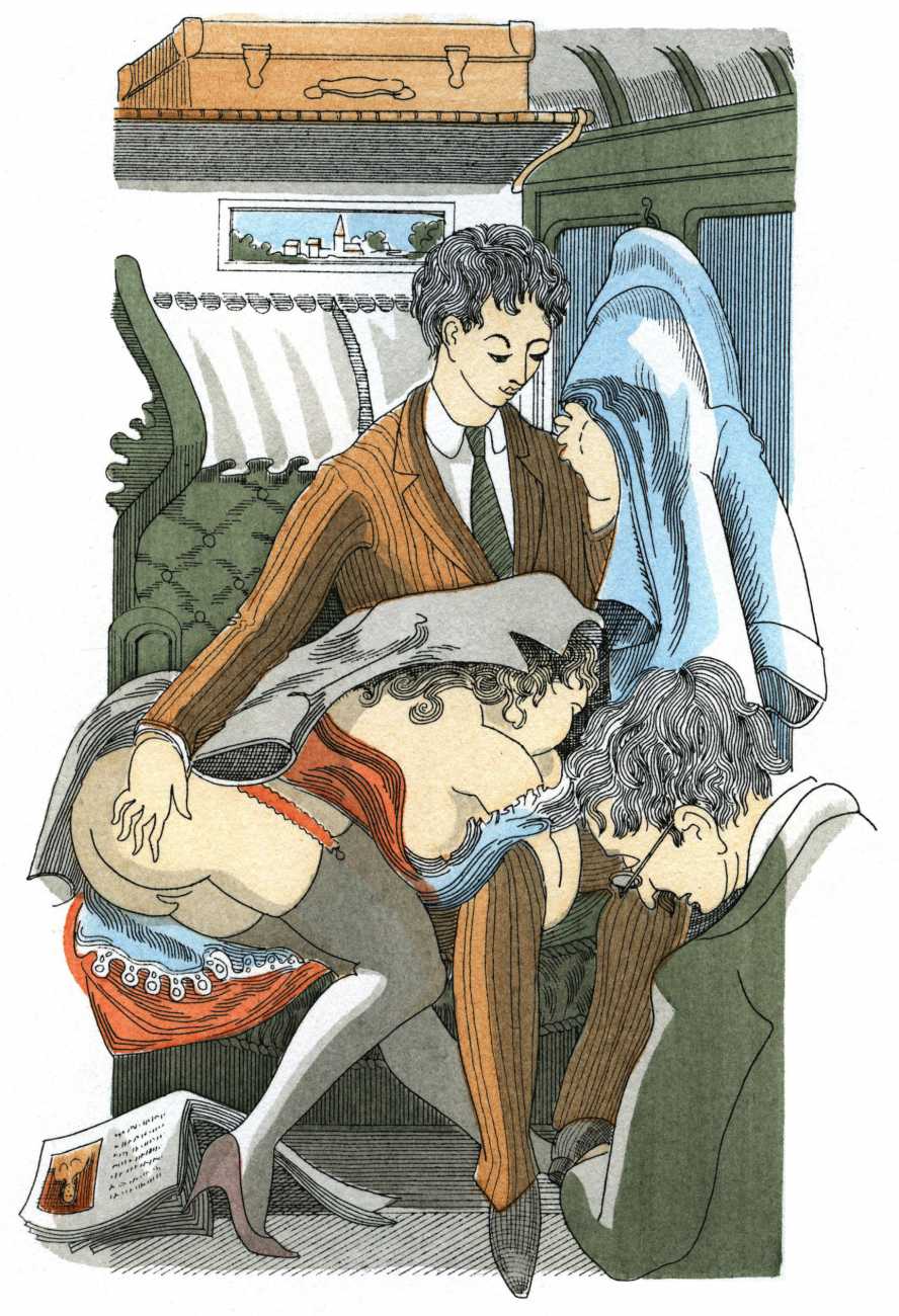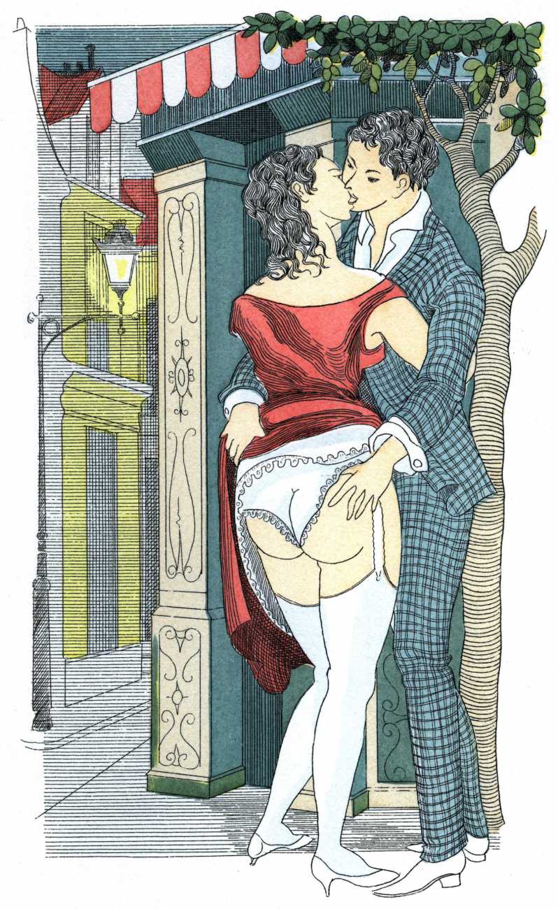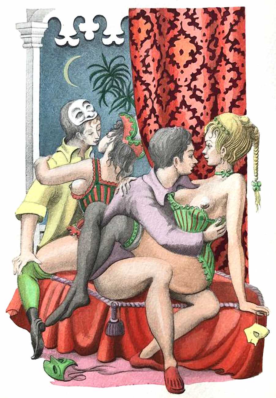 During a brief period in the early 1960s – and we can only guess at any personal interest in the subject – he contributed two sets of illustrations for erotic novels, both of which we have included here.