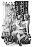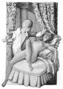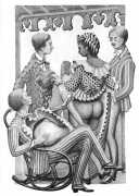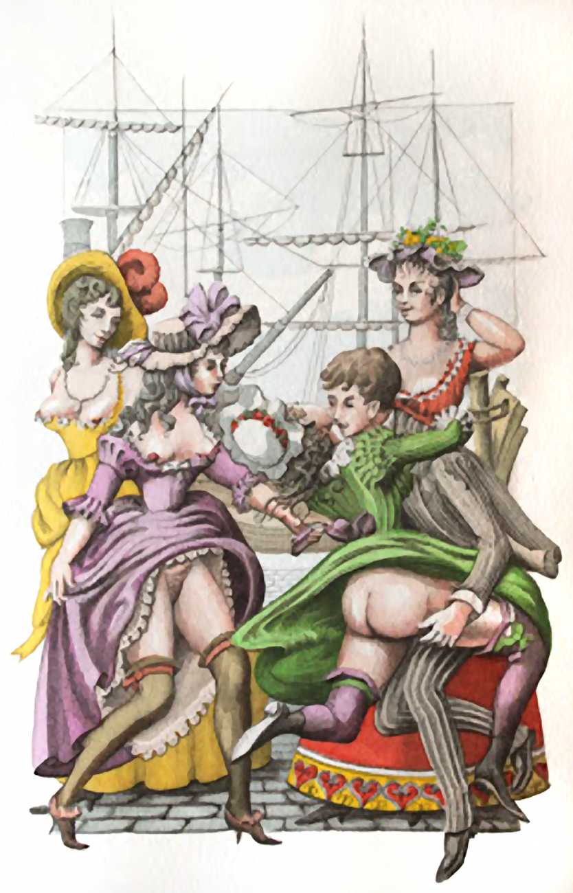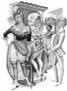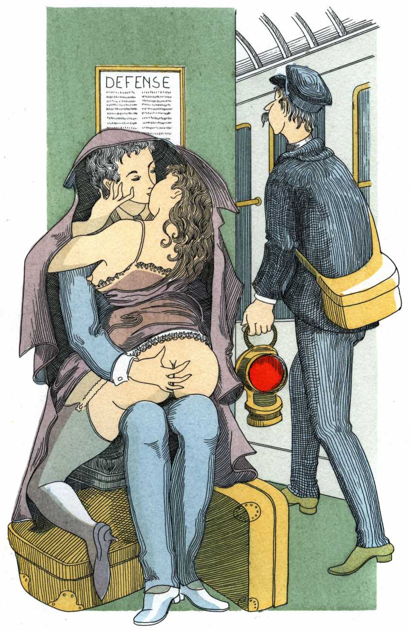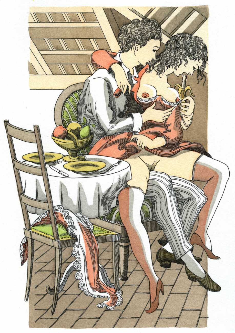 During a brief period in the early 1960s – and we can only guess at any personal interest in the subject – he contributed two sets of illustrations for erotic novels, both of which we have included here.