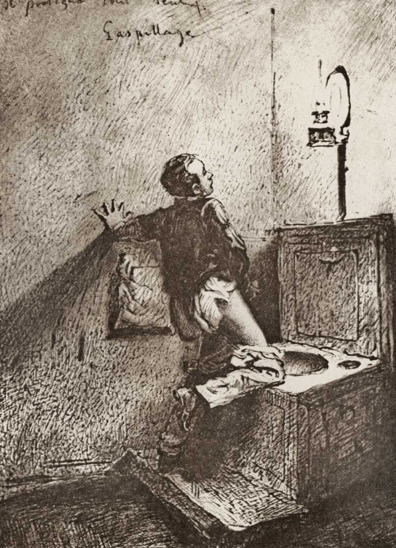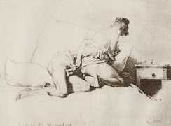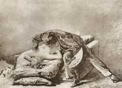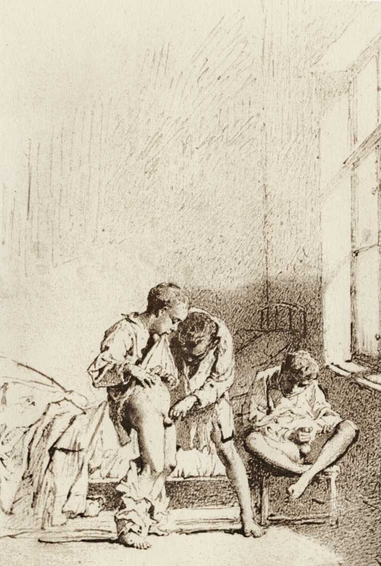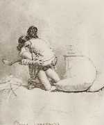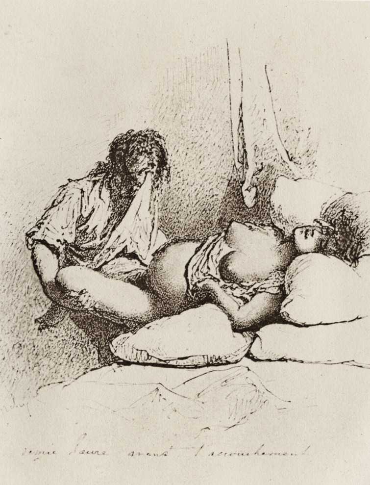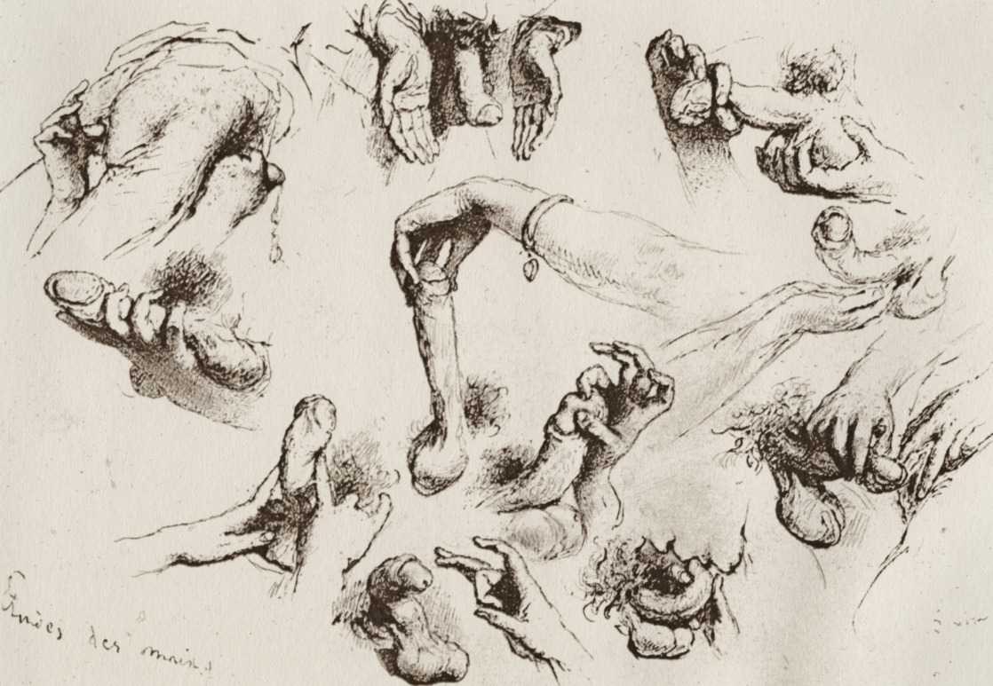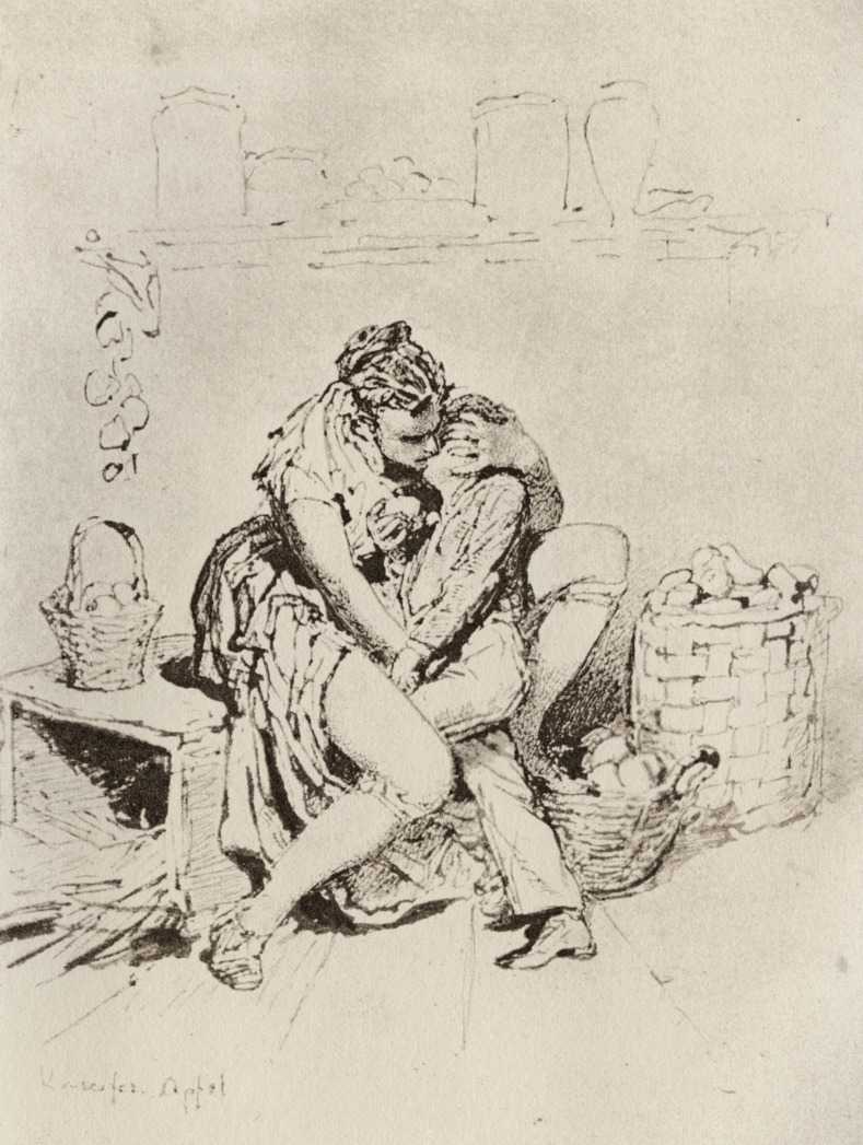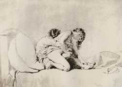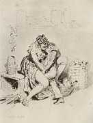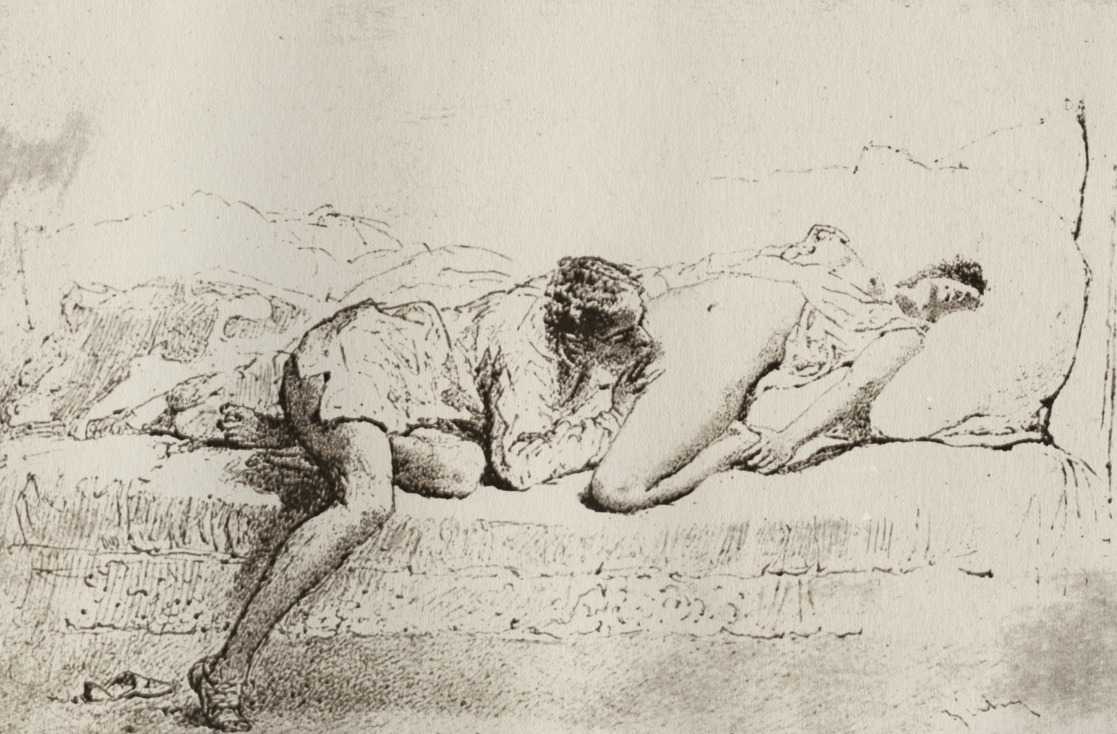 Alongside his paintings, however, he had also been maintaining a portfolio of drawings portraying intimate scenes of ordinary people enjoying sexual and sensual intimacy, a portfolio which was only made public after his death. They appear mostly to date from the 1870s, when he was in Paris, and are clearly drawn from life; they have a particular warm intensity in which the individuals portrayed are clearly enjoying themselves and each other. More than fifty of these drawings are known, and prints made from them circulated widely during the early 1900s.