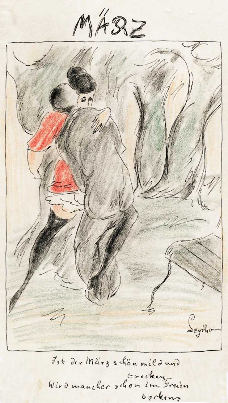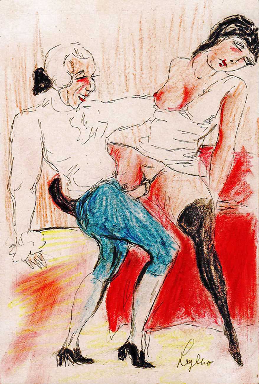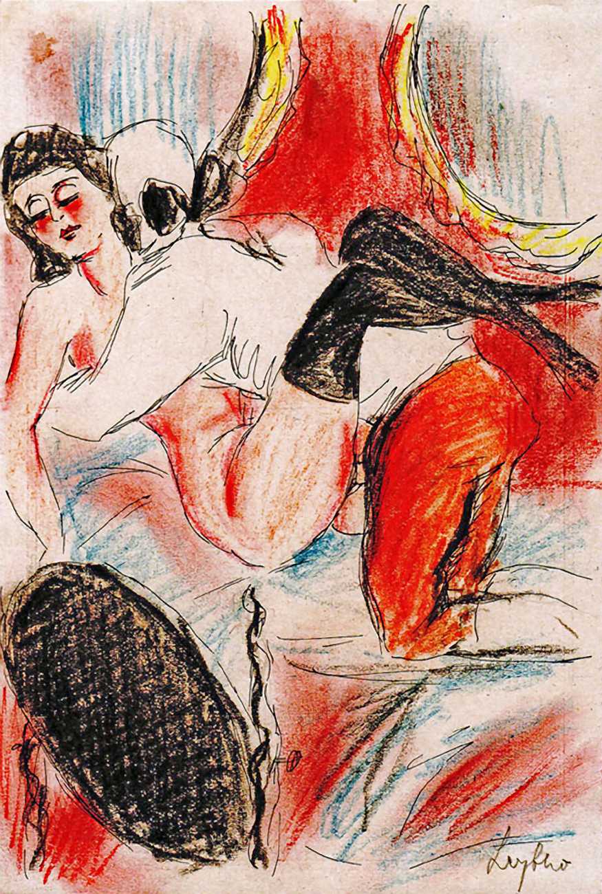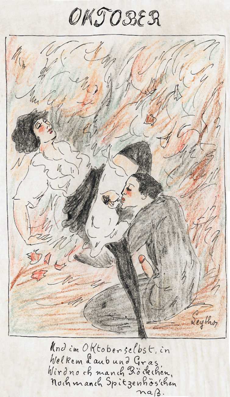 There are a few clues. ‘Mitja’ is a Slovene first name, suggesting an eastern European provenance. The reference to the February Fasching festival in the 1923 Kalender points to a southern German setting, possibly Munich. And there are certain similarities with the equally-mysterious erotic artist ‘E. Bénis’, whose work you can see here – sad-looking men with square chins and slim women with small pointy breasts. As the 1931 Bilderlexicon der Erotik said of Bénis’s output, Leytho managed to produce ‘obscene pictures of great amateurism’, a description which describes much of the erotic illustration of the last hundred years.