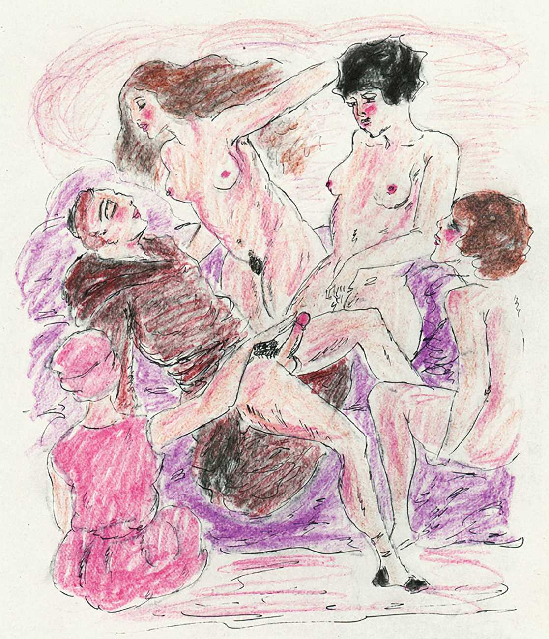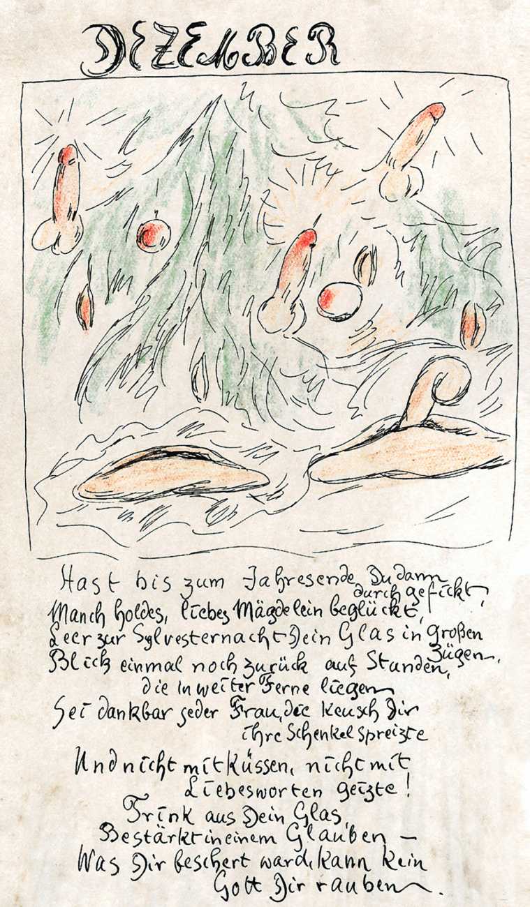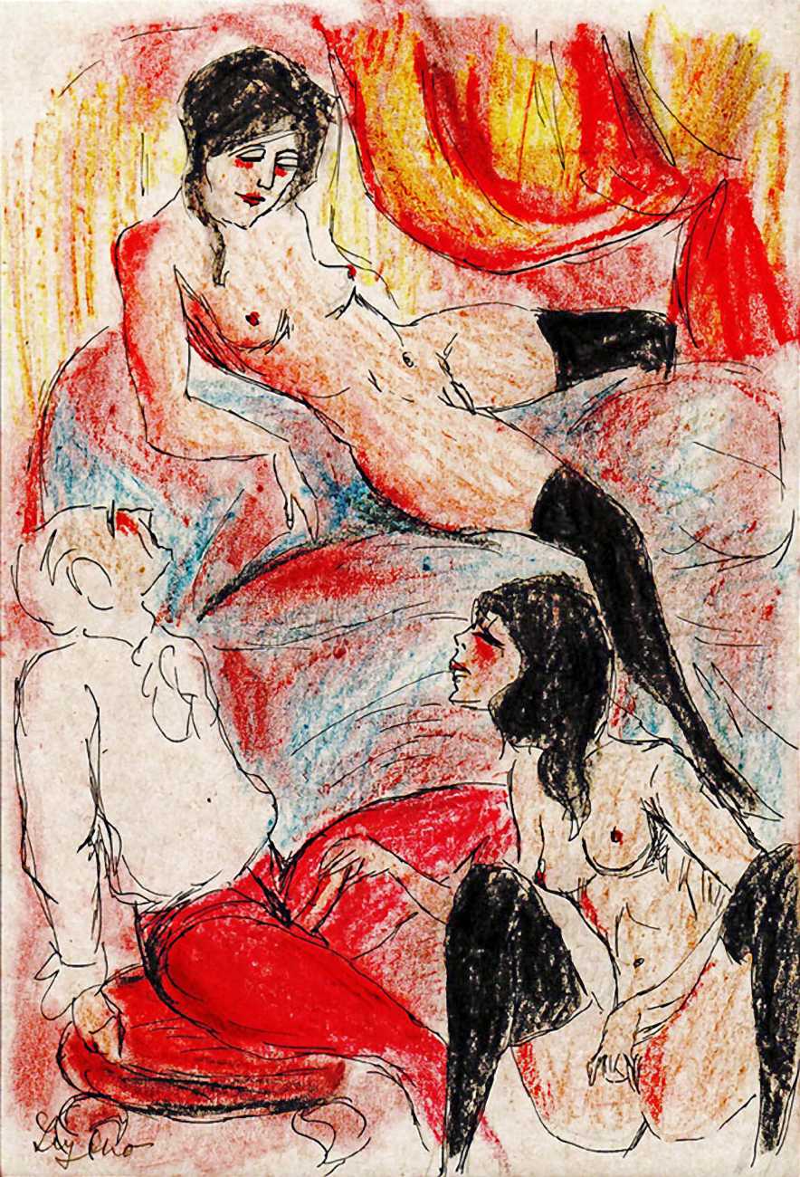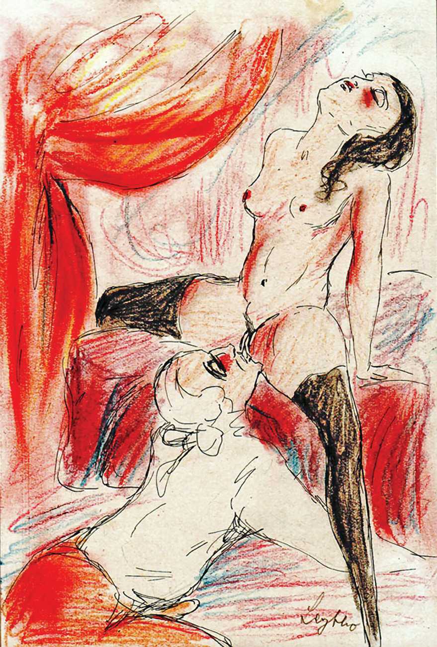 There are a few clues. ‘Mitja’ is a Slovene first name, suggesting an eastern European provenance. The reference to the February Fasching festival in the 1923 Kalender points to a southern German setting, possibly Munich. And there are certain similarities with the equally-mysterious erotic artist ‘E. Bénis’, whose work you can see here – sad-looking men with square chins and slim women with small pointy breasts. As the 1931 Bilderlexicon der Erotik said of Bénis’s output, Leytho managed to produce ‘obscene pictures of great amateurism’, a description which describes much of the erotic illustration of the last hundred years.