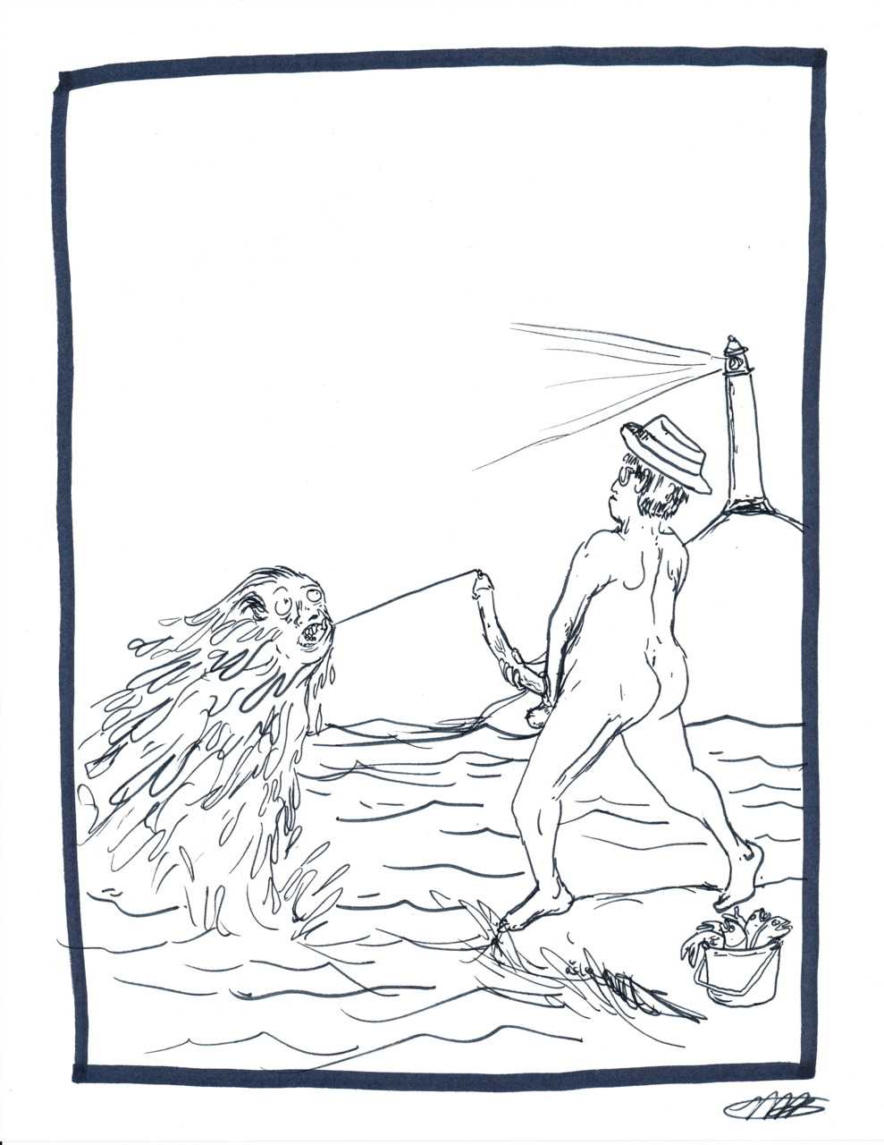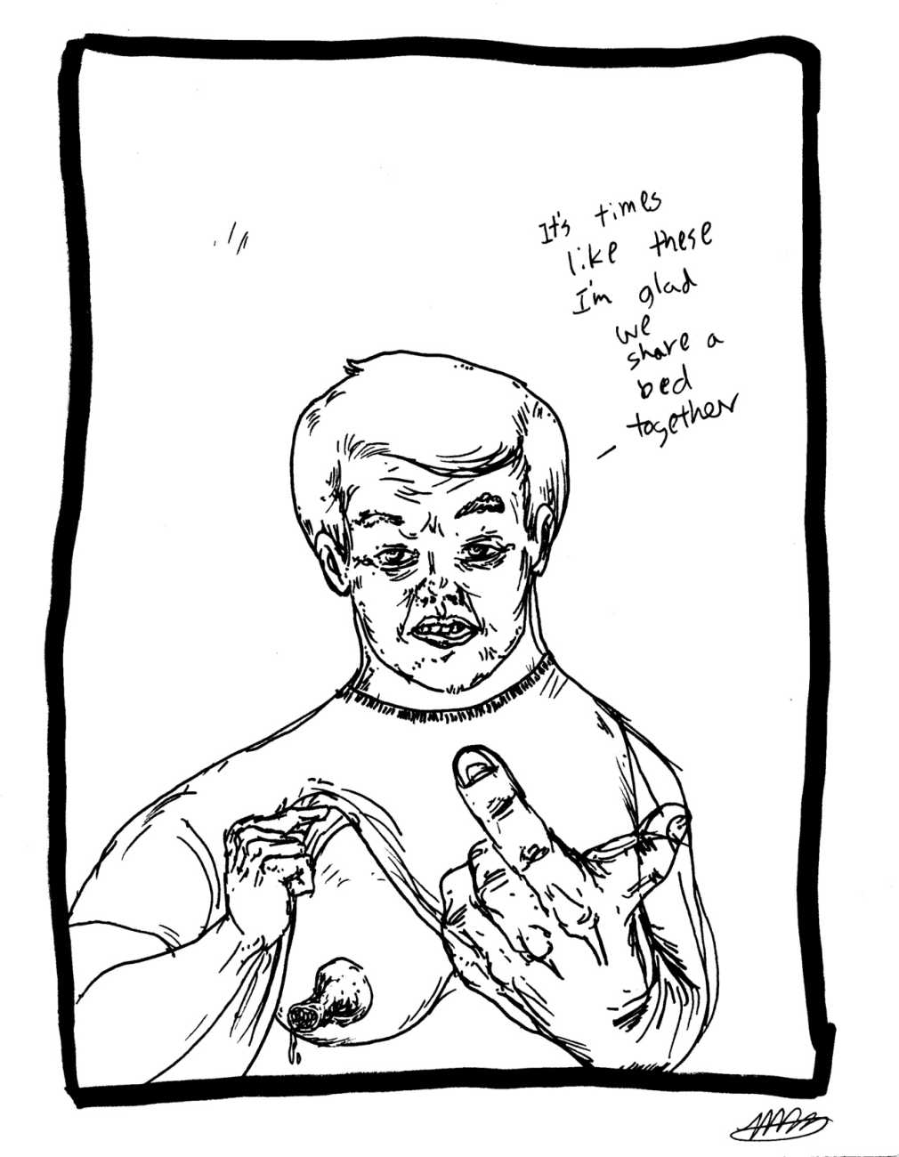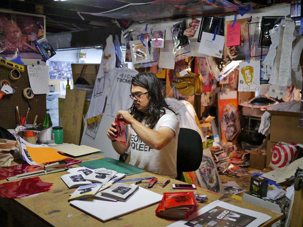 San Francisco-based illustrator and printmaker Mitsu Okubo is a self-identified iconoclast. Combining drawing, collage, grotesque imagery, monsters and tongue-in-cheek sexualisation in his work, he has produced several books of drawings and collages, as well as box sets of prints, t-shirts and poetry collections. He exhibits regularly in the Bay Area and beyond.