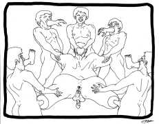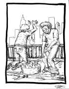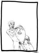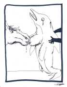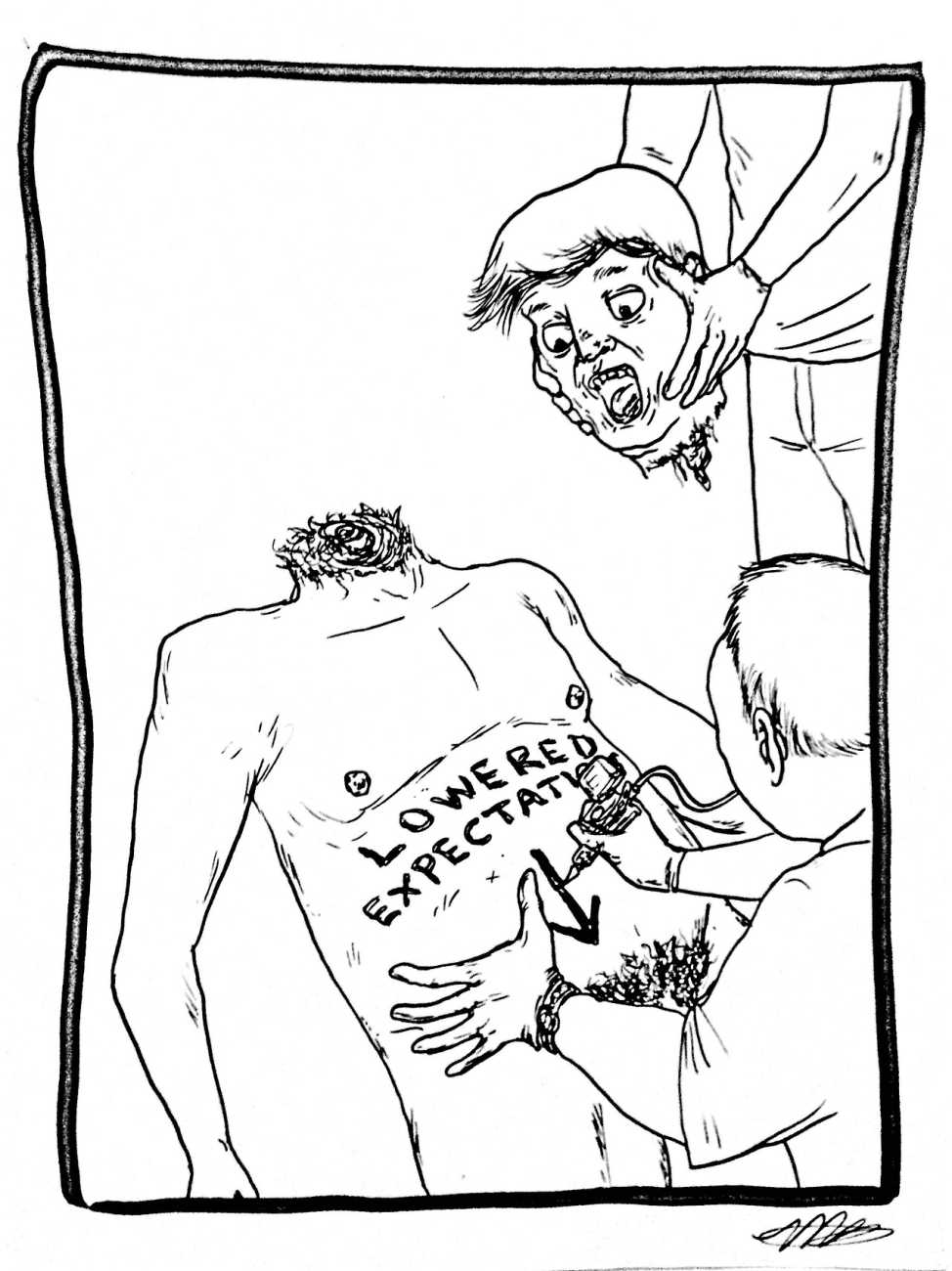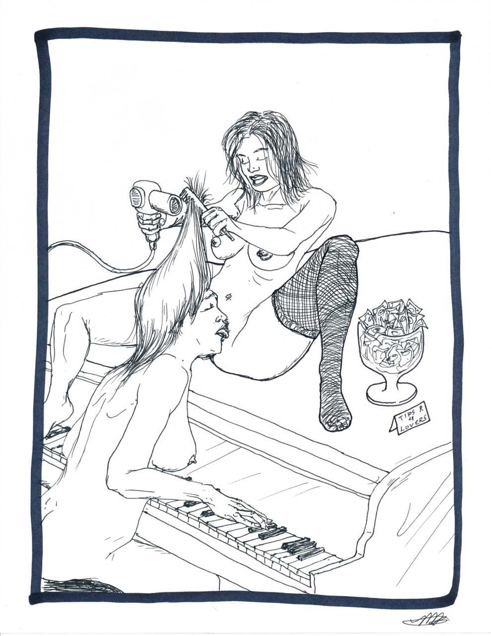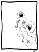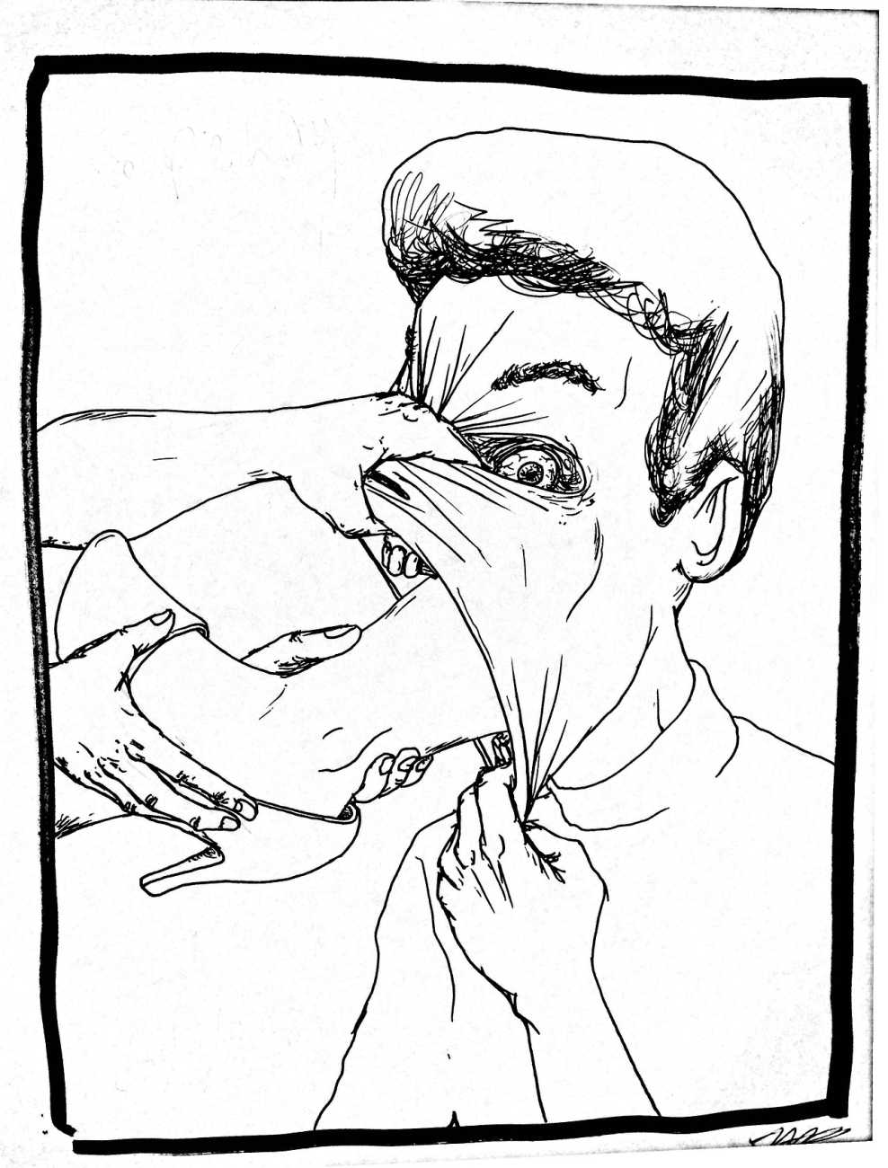 San Francisco-based illustrator and printmaker Mitsu Okubo is a self-identified iconoclast. Combining drawing, collage, grotesque imagery, monsters and tongue-in-cheek sexualisation in his work, he has produced several books of drawings and collages, as well as box sets of prints, t-shirts and poetry collections. He exhibits regularly in the Bay Area and beyond.