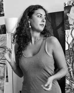 Nazanin Pouyandeh grew up in Tehran, the capital city of Iran, where she enjoyed drawing and painting from an early age. In 1998 however, during a brutal purge by the Iranian Ministry of Intelligence, her father, Mohammad Ja’far Pouyandeh, a Sorbonne-trained human rights activist and translator, was murdered along with several other ‘dissidents’. Shortly afterwards eighteen-year-old Nazanin moved to Paris, where she continued her education.