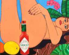 They have since evolved into intimate scenarios of women that explore issues of rejection and shame in a very tongue-in-cheek way. ‘We are objectified for male visual pleasure, that's just how it's been since day one,’ she explains. ‘Our sexuality is used against us and sold back to us in very hyper-sexual, derogatory and violent ways.’ Filled with humour, her work aims to flip that, establishing women’s place in pleasure and sexual exploration which is as messy, hairy, and totally imperfect as it is in real life.