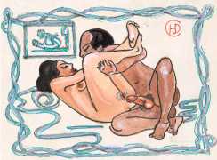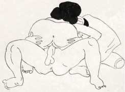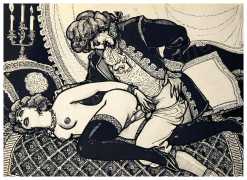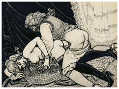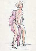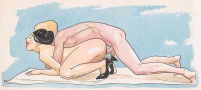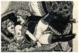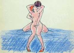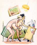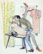 During the 1960s and 70s Sapach produced a large number of cartoon-like drawings commenting on life in Soviet Russia, together with several limited edition portfolios of erotic art, demonstrating that he was able to produce works in a wide variety of styles. None of his erotic work is dated.