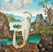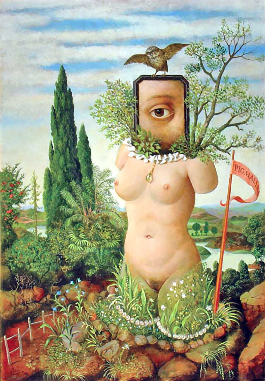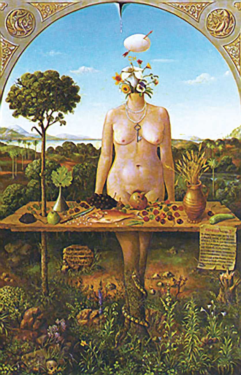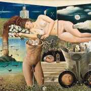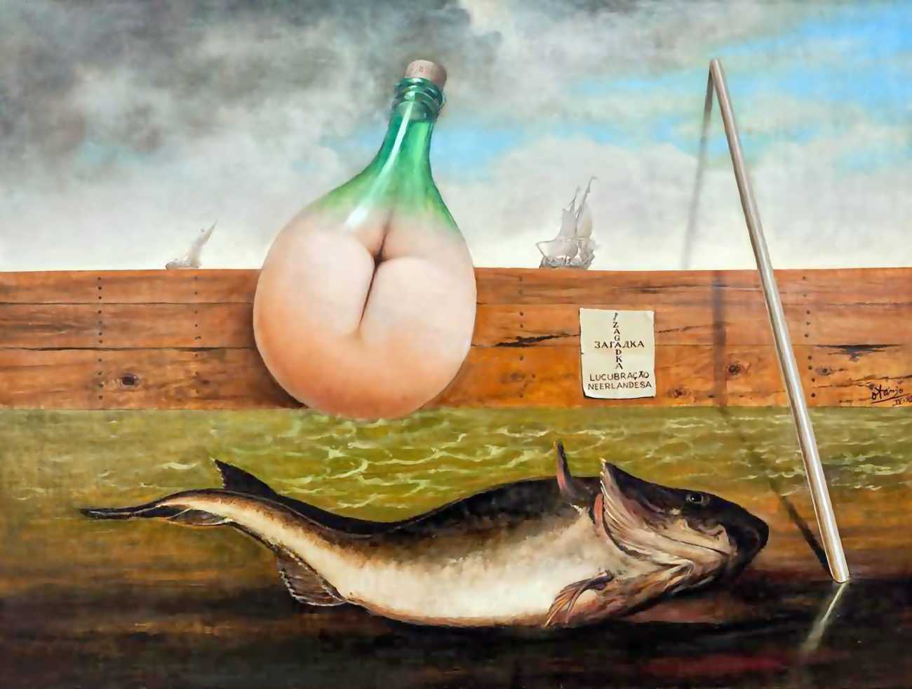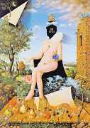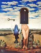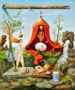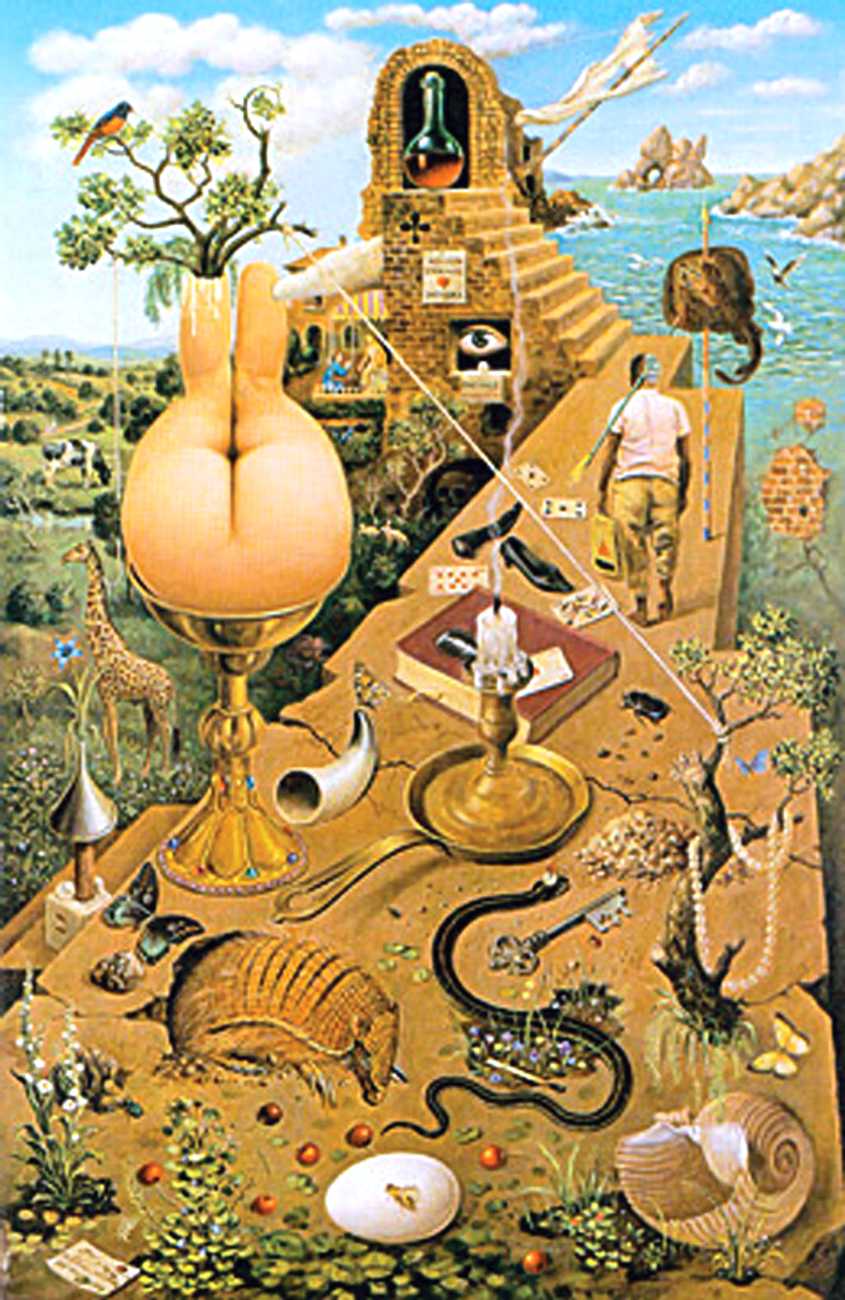 In his paintings and engravings Octávio Araújo reveals his interest in works by Flemish, German and Italian painters from the fifteenth and sixteenth centuries, sometimes taking direct inspiration from figures from these works. There is also a clear affinity with surrealism, together with a liberal sprinkling of mysterious objects and inscriptions, designed to awaken an atmosphere of mystery and magic.