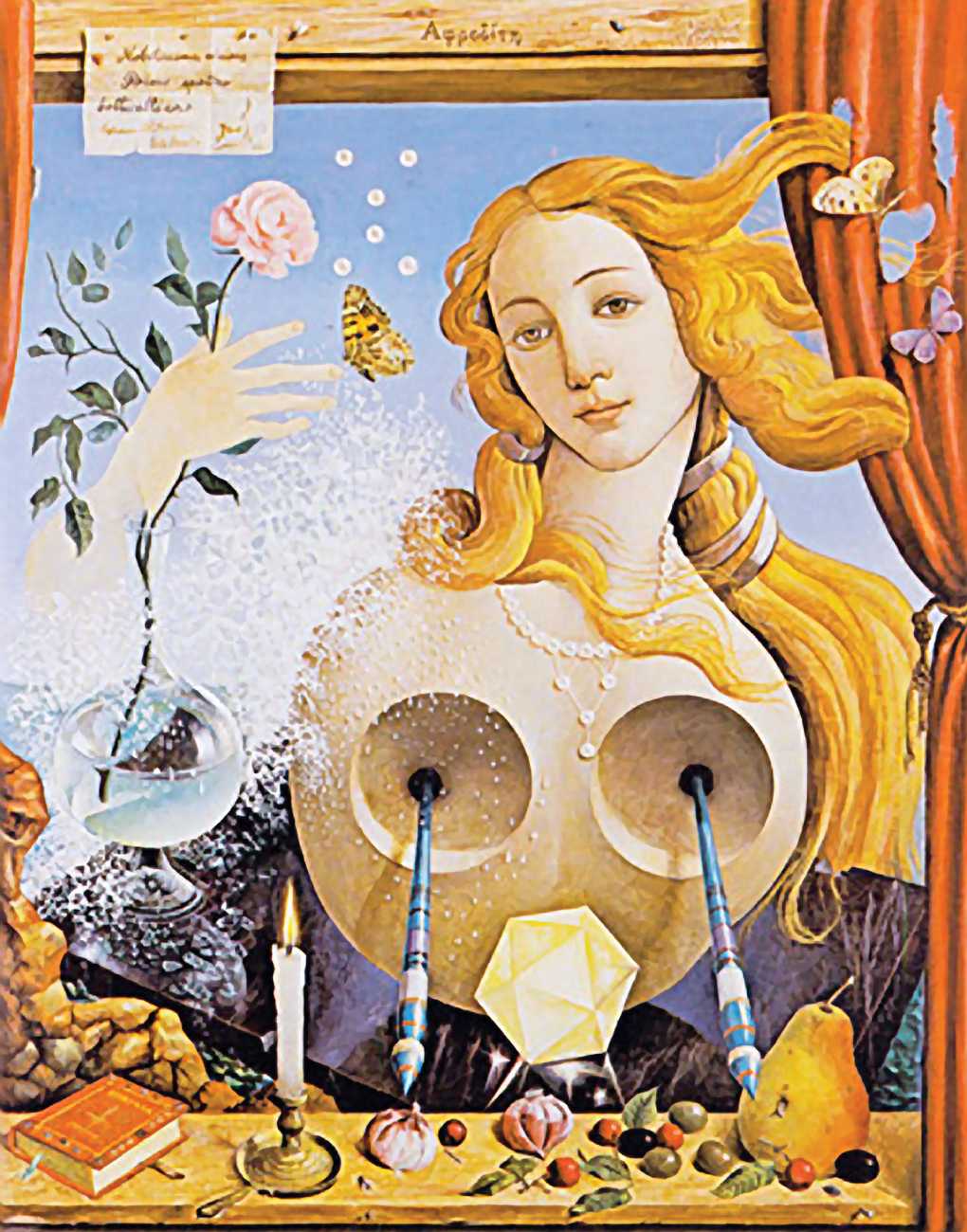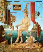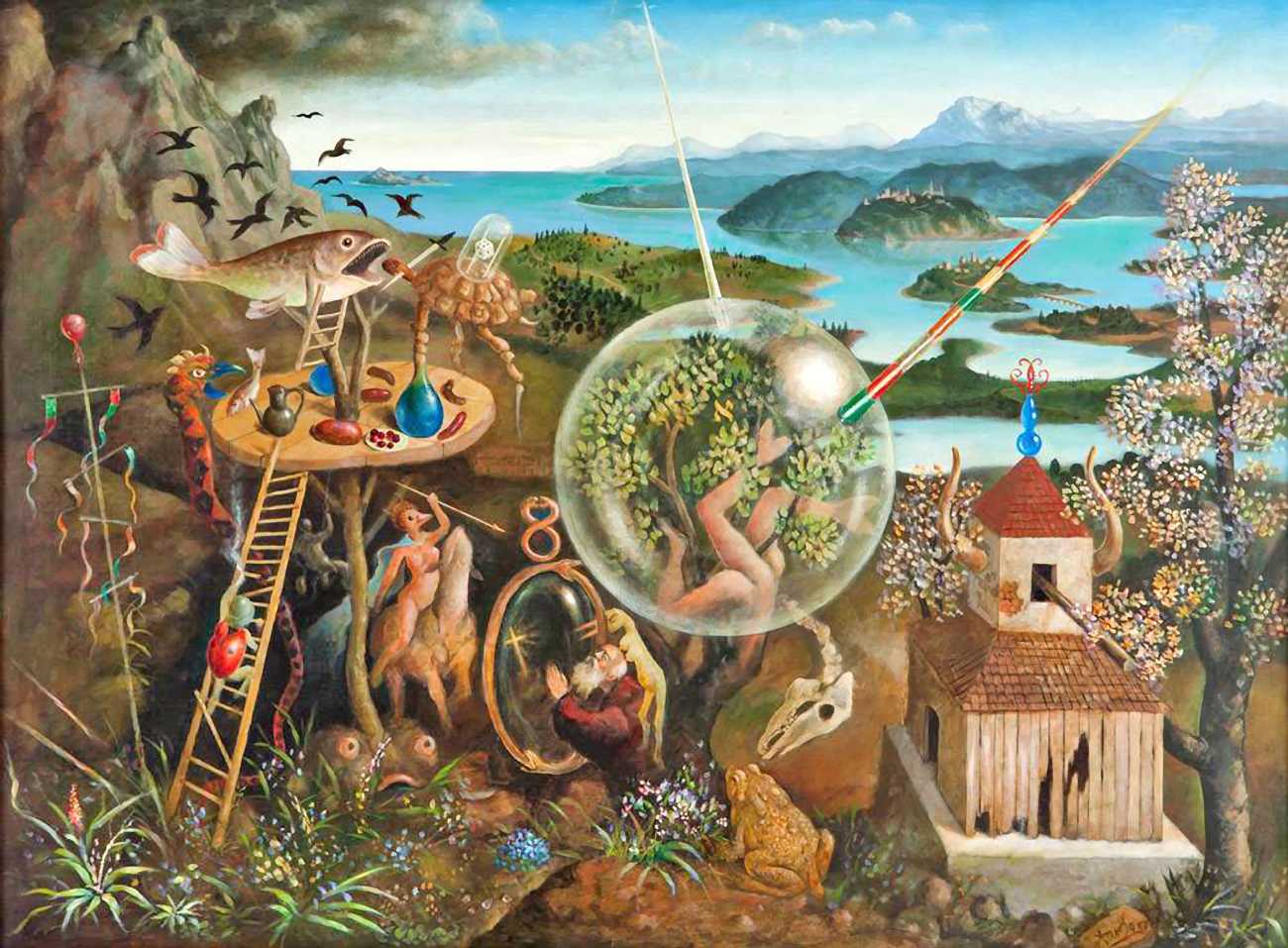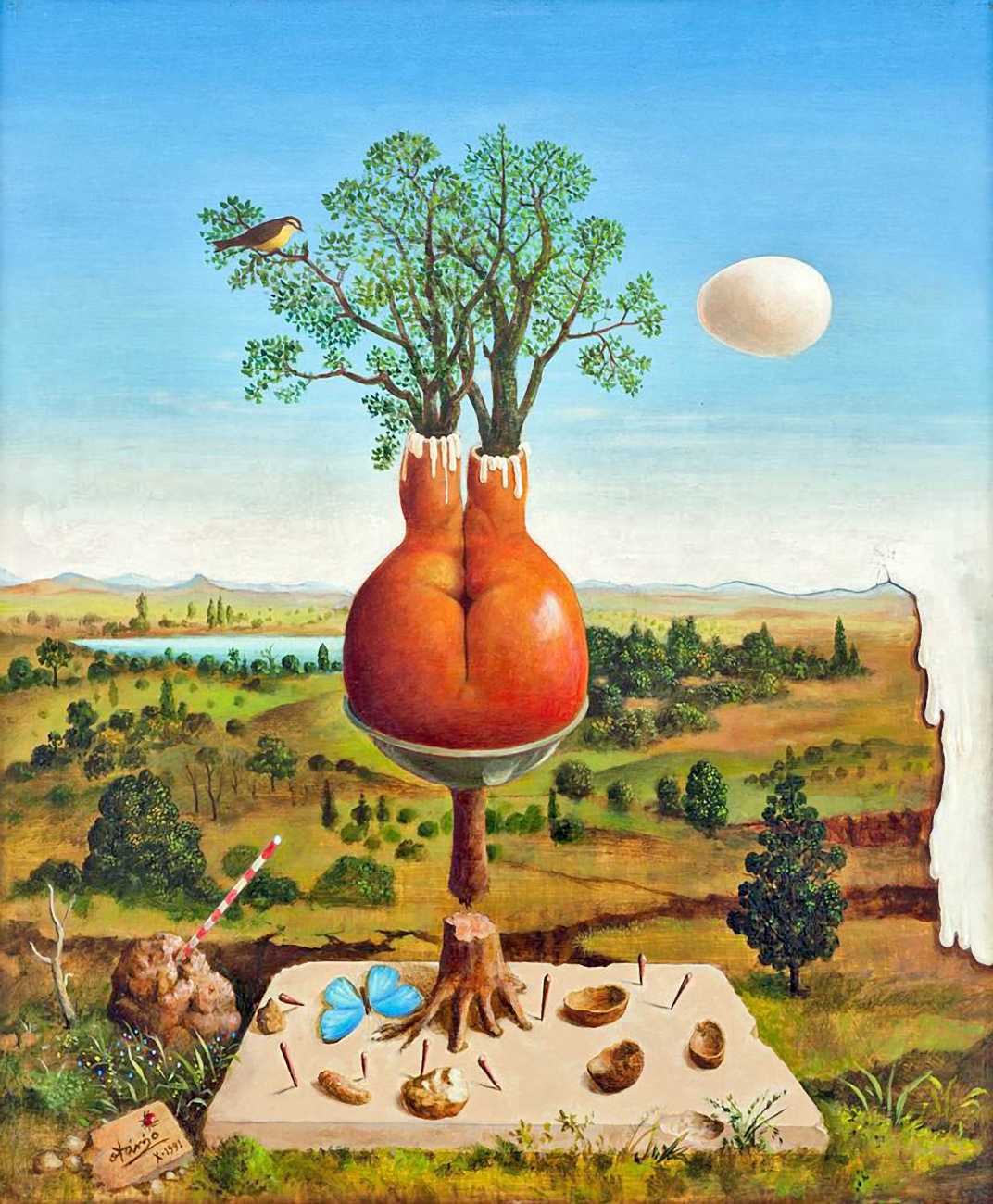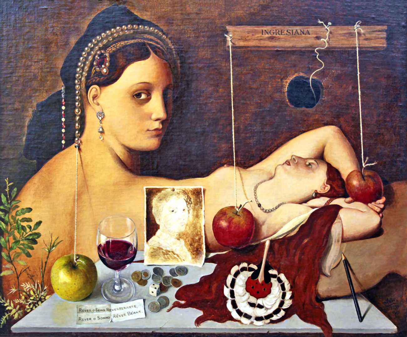In his paintings and engravings Octávio Araújo reveals his interest in works by Flemish, German and Italian painters from the fifteenth and sixteenth centuries, sometimes taking direct inspiration from figures from these works. There is also a clear affinity with surrealism, together with a liberal sprinkling of mysterious objects and inscriptions, designed to awaken an atmosphere of mystery and magic.