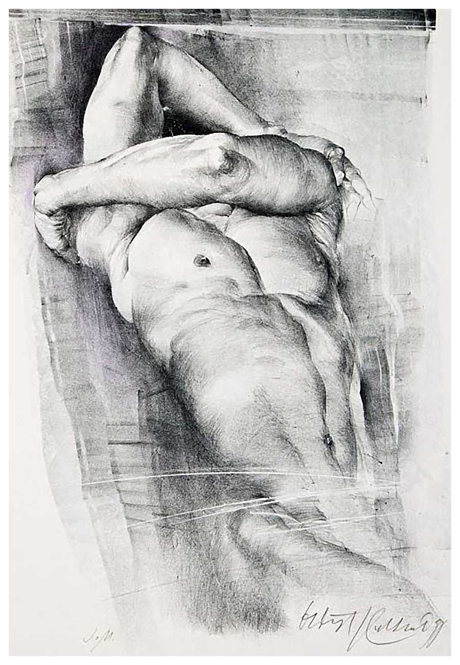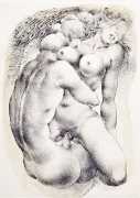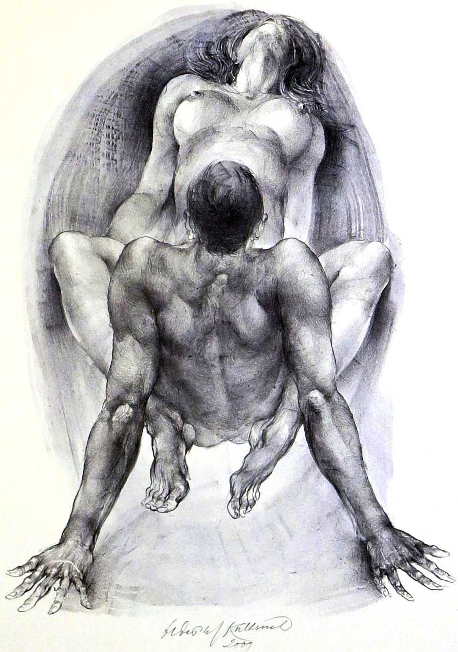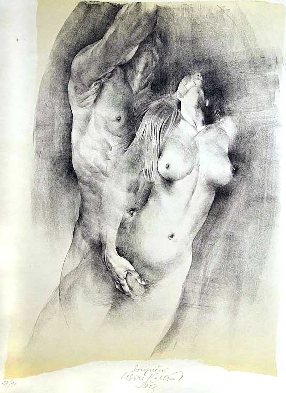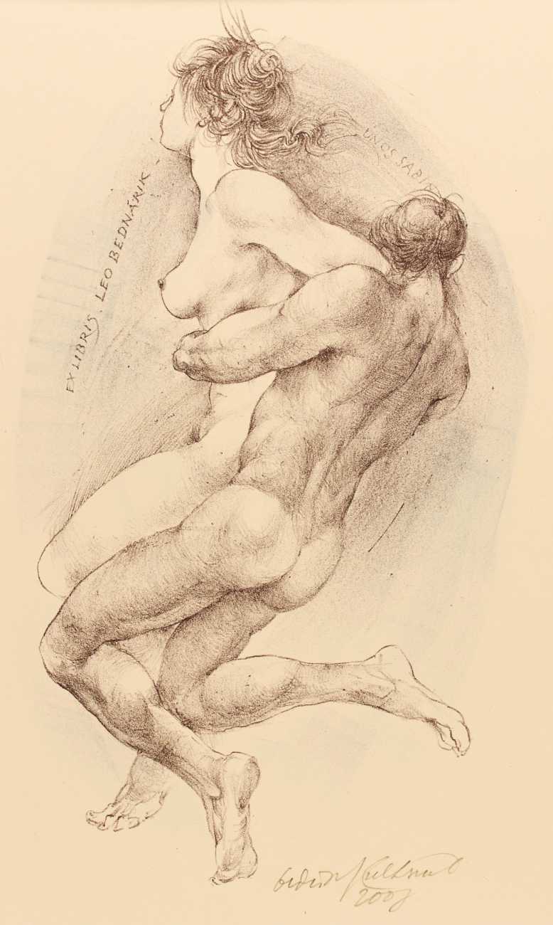 In the 1980s he created several series of lithographs inspired by the development of the human body, sometimes as studies of single bodies but often as groups of figures. He also started to design bookplates, often on mythological and erotic themes, for a growing clientele.