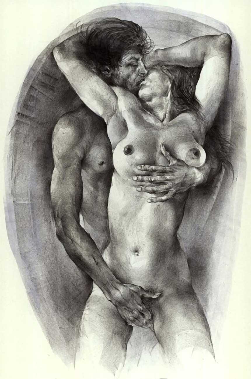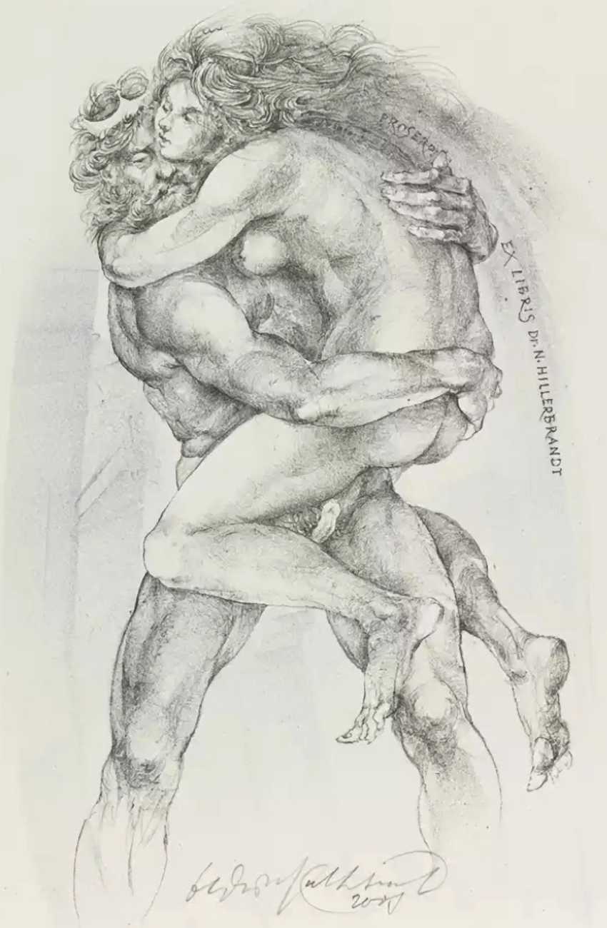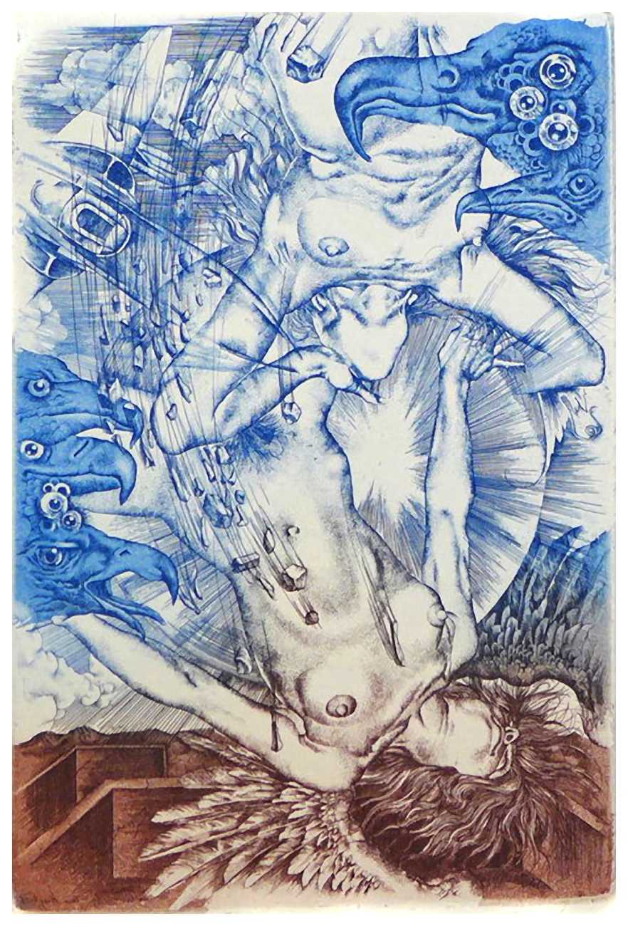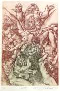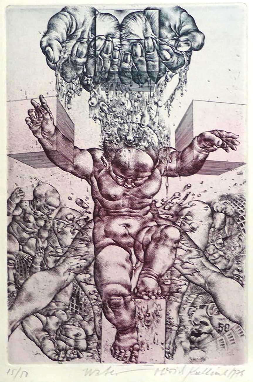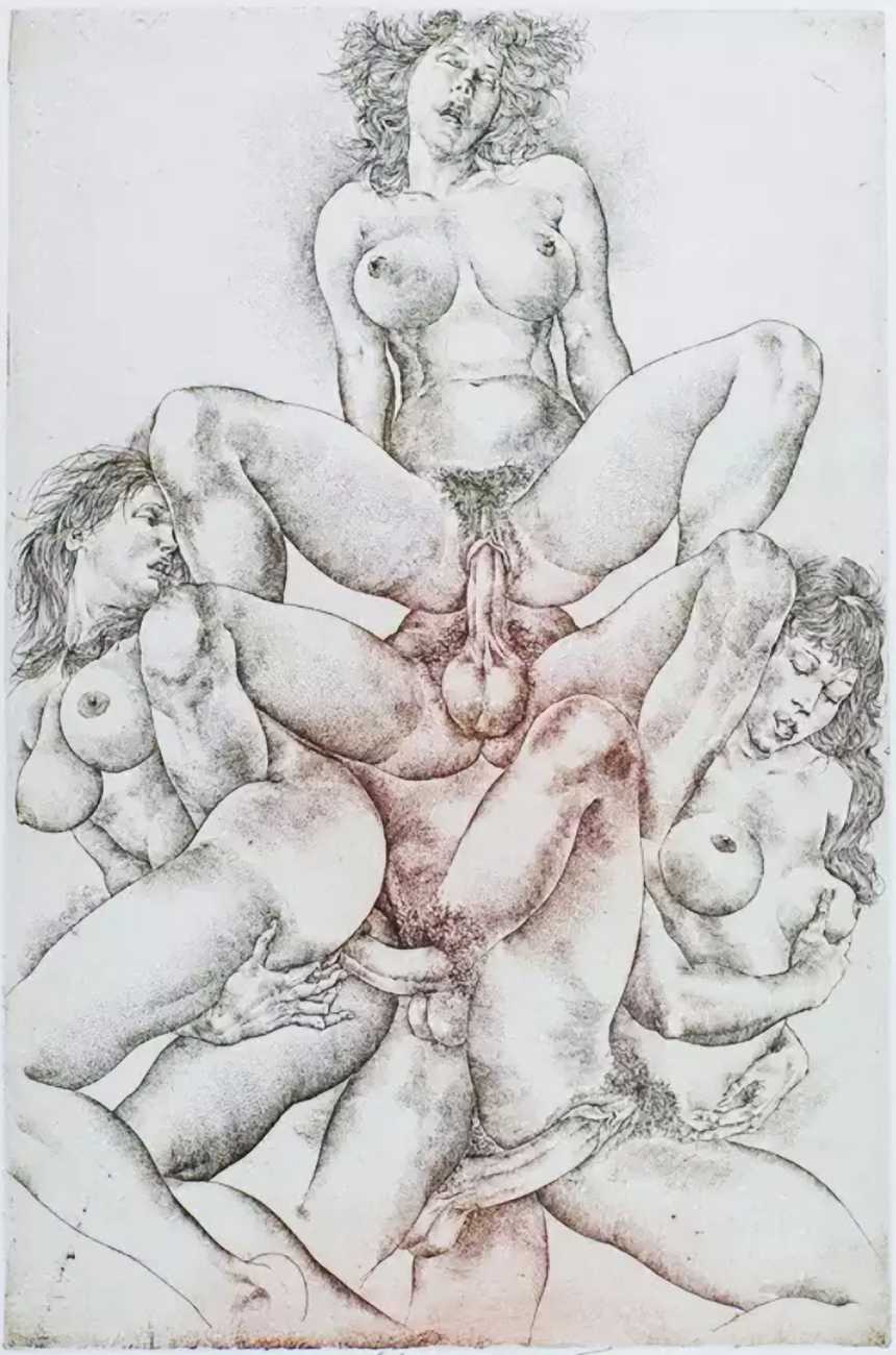 In the 1980s he created several series of lithographs inspired by the development of the human body, sometimes as studies of single bodies but often as groups of figures. He also started to design bookplates, often on mythological and erotic themes, for a growing clientele.