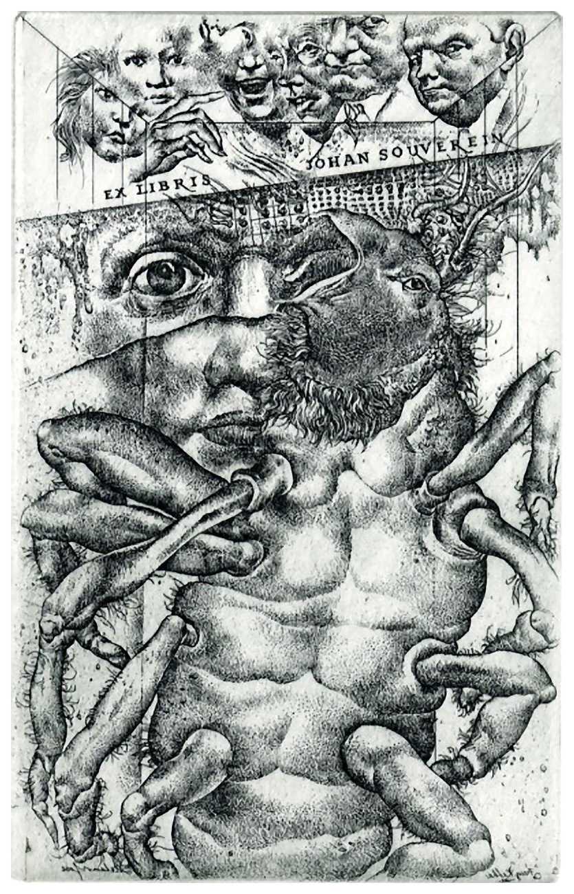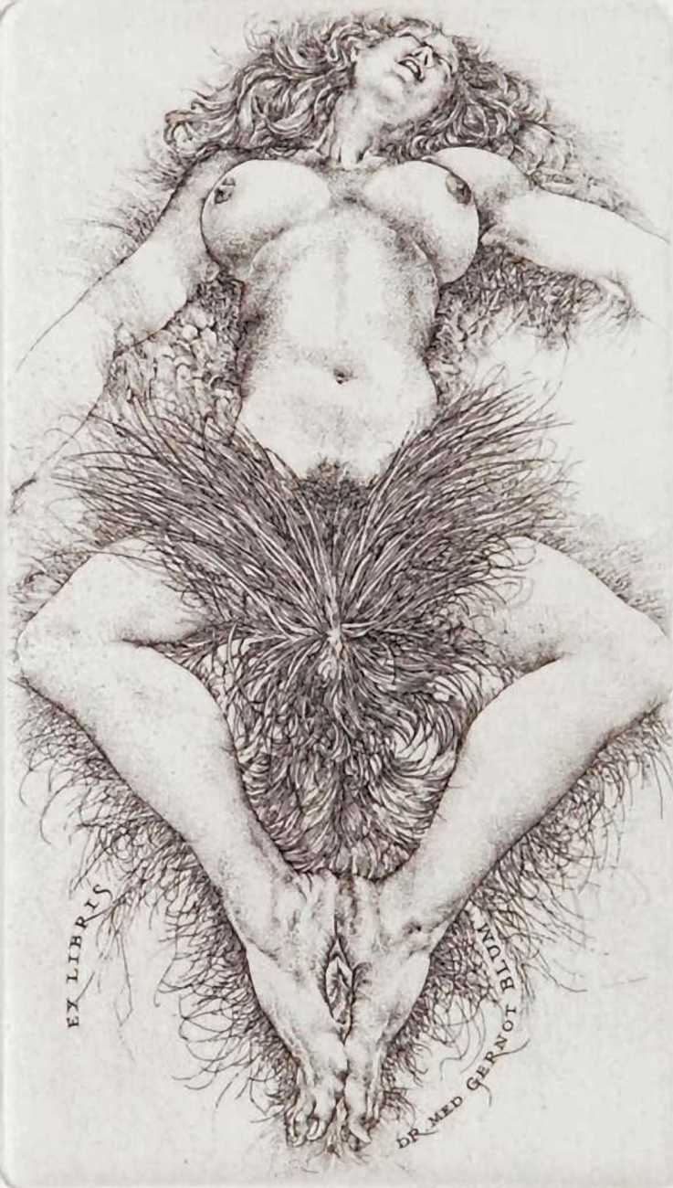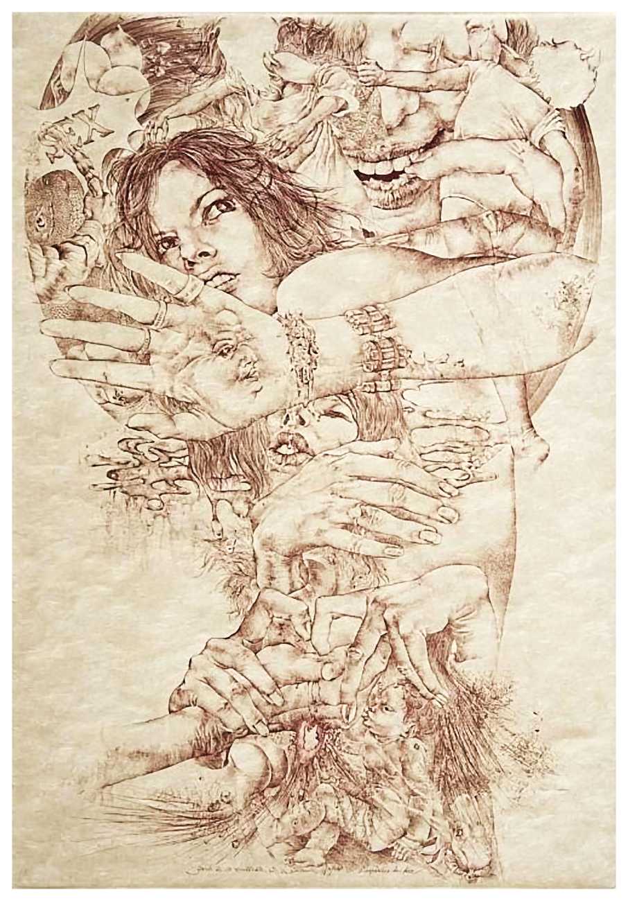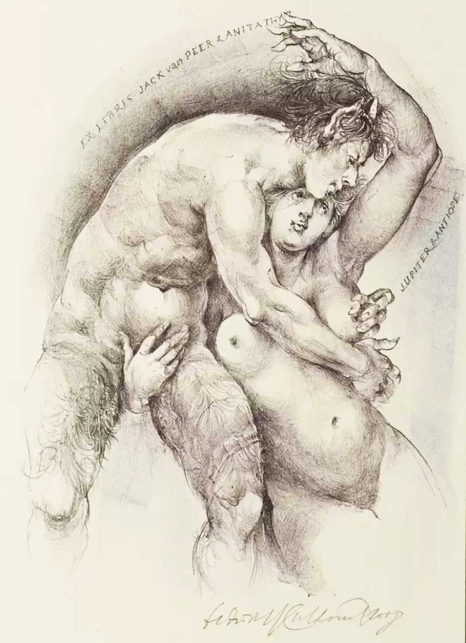 In the 1980s he created several series of lithographs inspired by the development of the human body, sometimes as studies of single bodies but often as groups of figures. He also started to design bookplates, often on mythological and erotic themes, for a growing clientele.