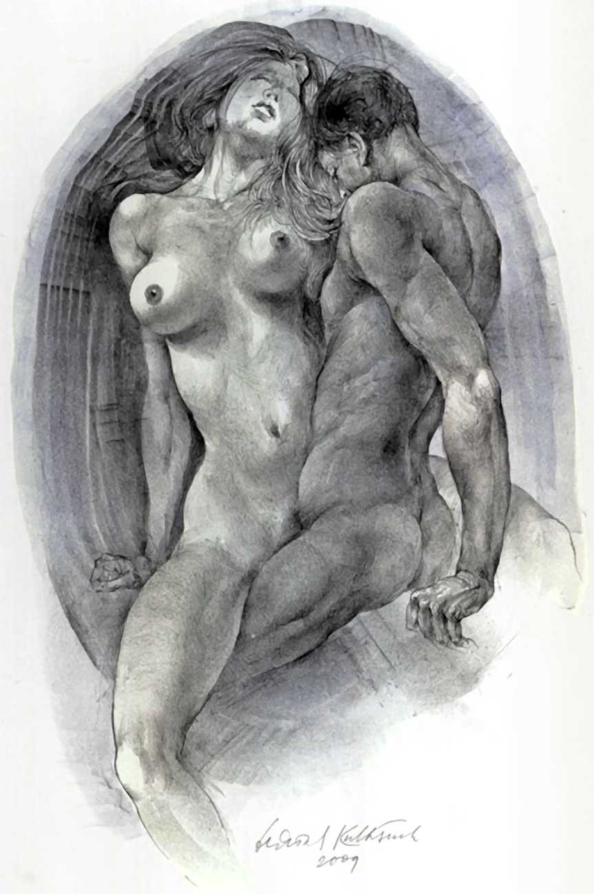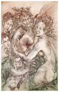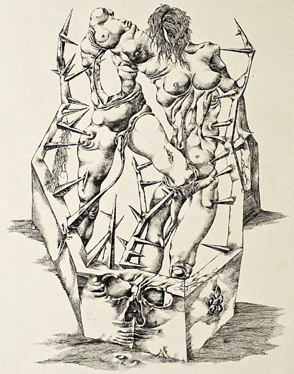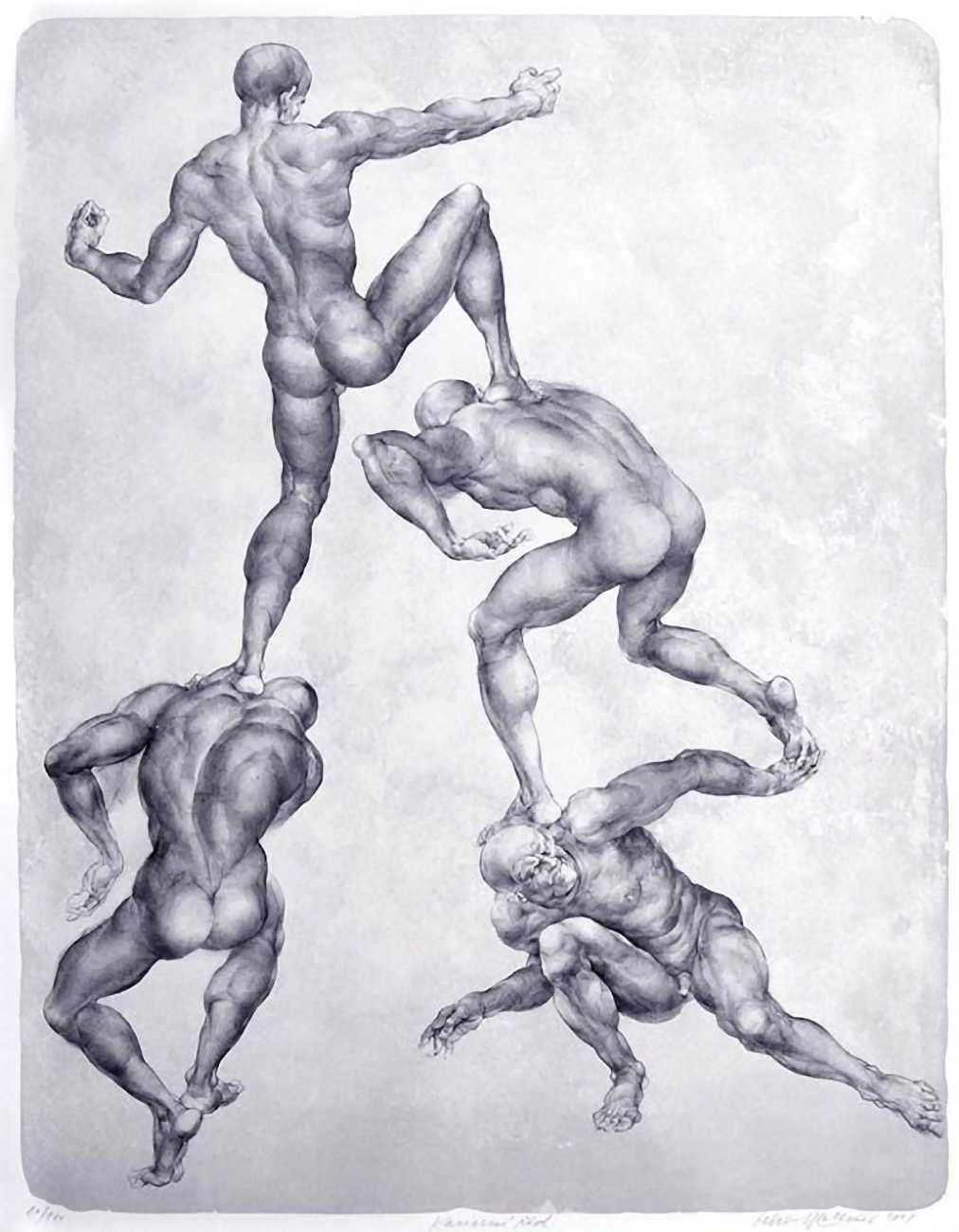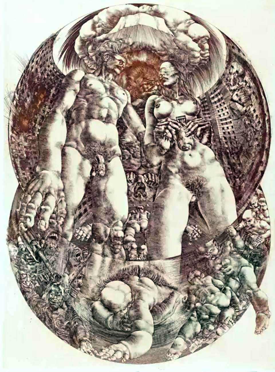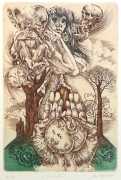 In the 1980s he created several series of lithographs inspired by the development of the human body, sometimes as studies of single bodies but often as groups of figures. He also started to design bookplates, often on mythological and erotic themes, for a growing clientele.
