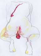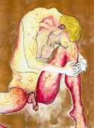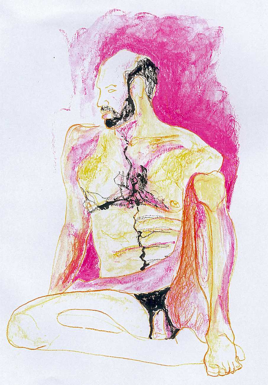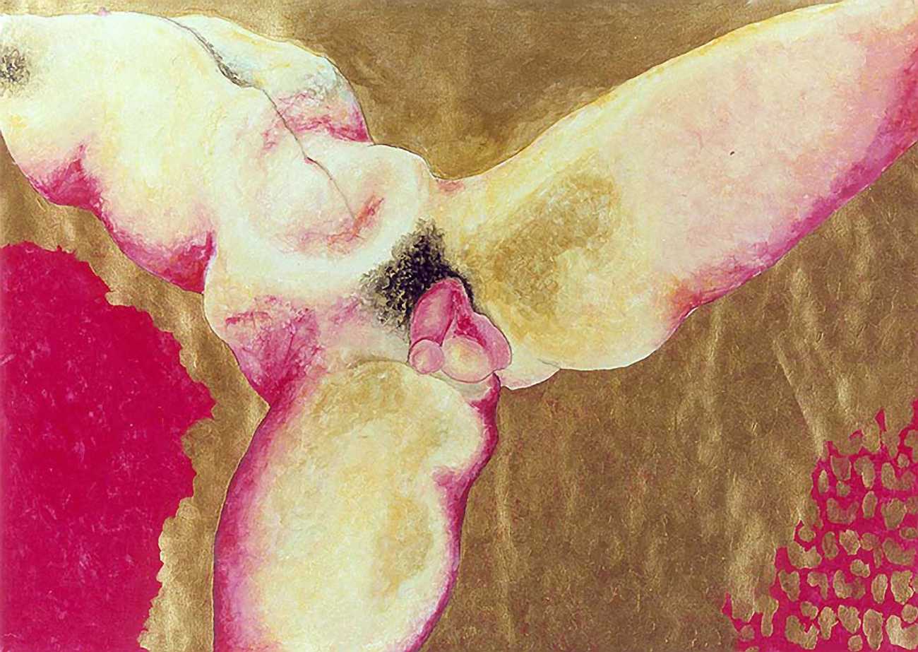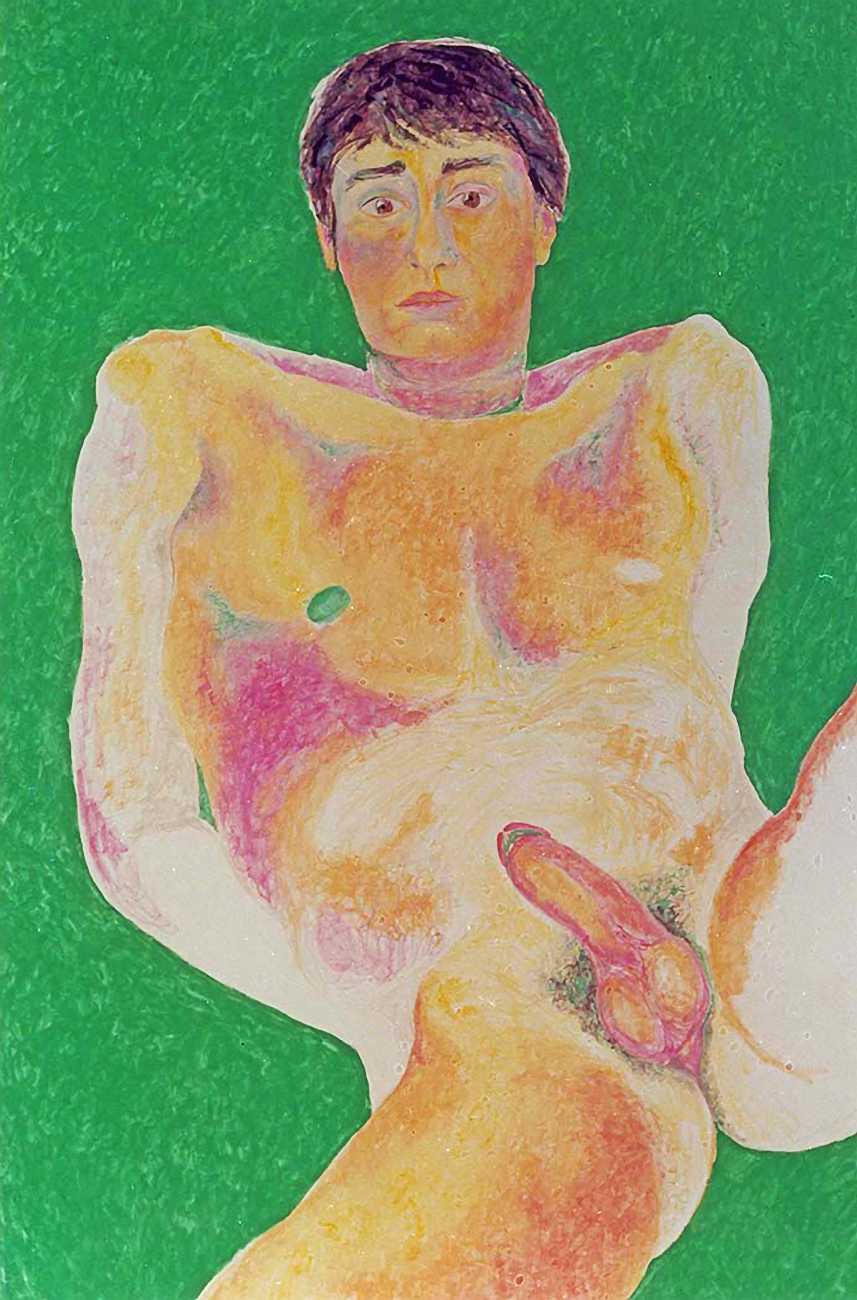 She did not find her chosen artistic path an easy one, often being overwhelmed and disoriented by her desire for self-understanding. In 1990 she started a relationship with the German academic Thomas Wiederspahn, and moved to Frankfurt ‘to start her life again’. It was not easy for her to start again, however, and it was not until 1994 that she found the will to start drawing again, concentrating on studies of the naked human body, made in her trademark bright colours and often explicitly sexual.
