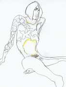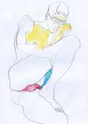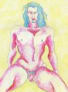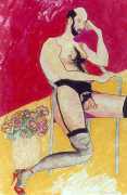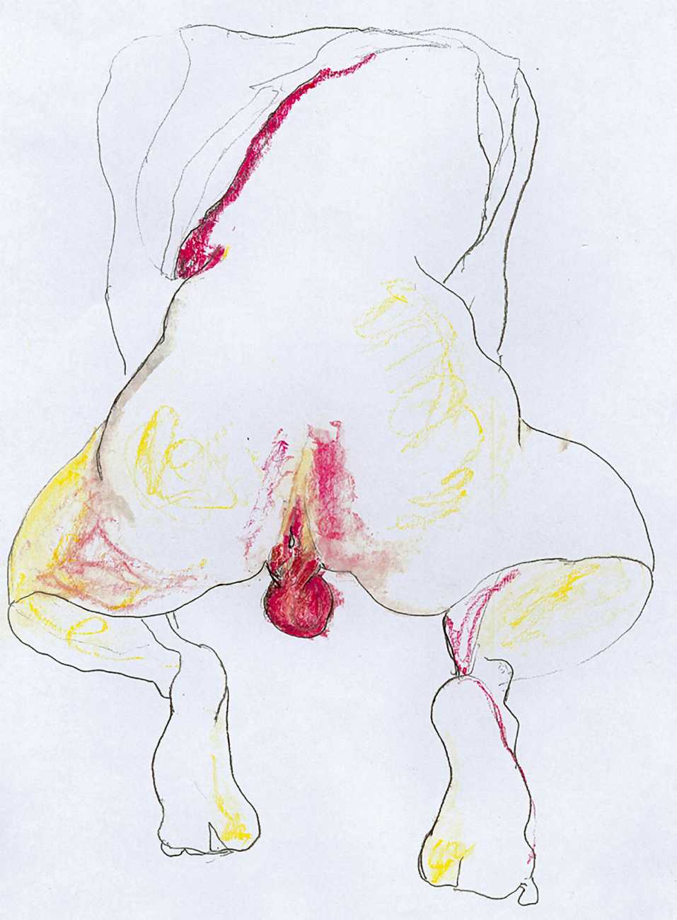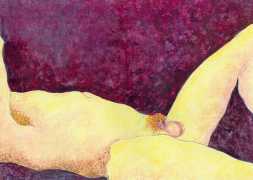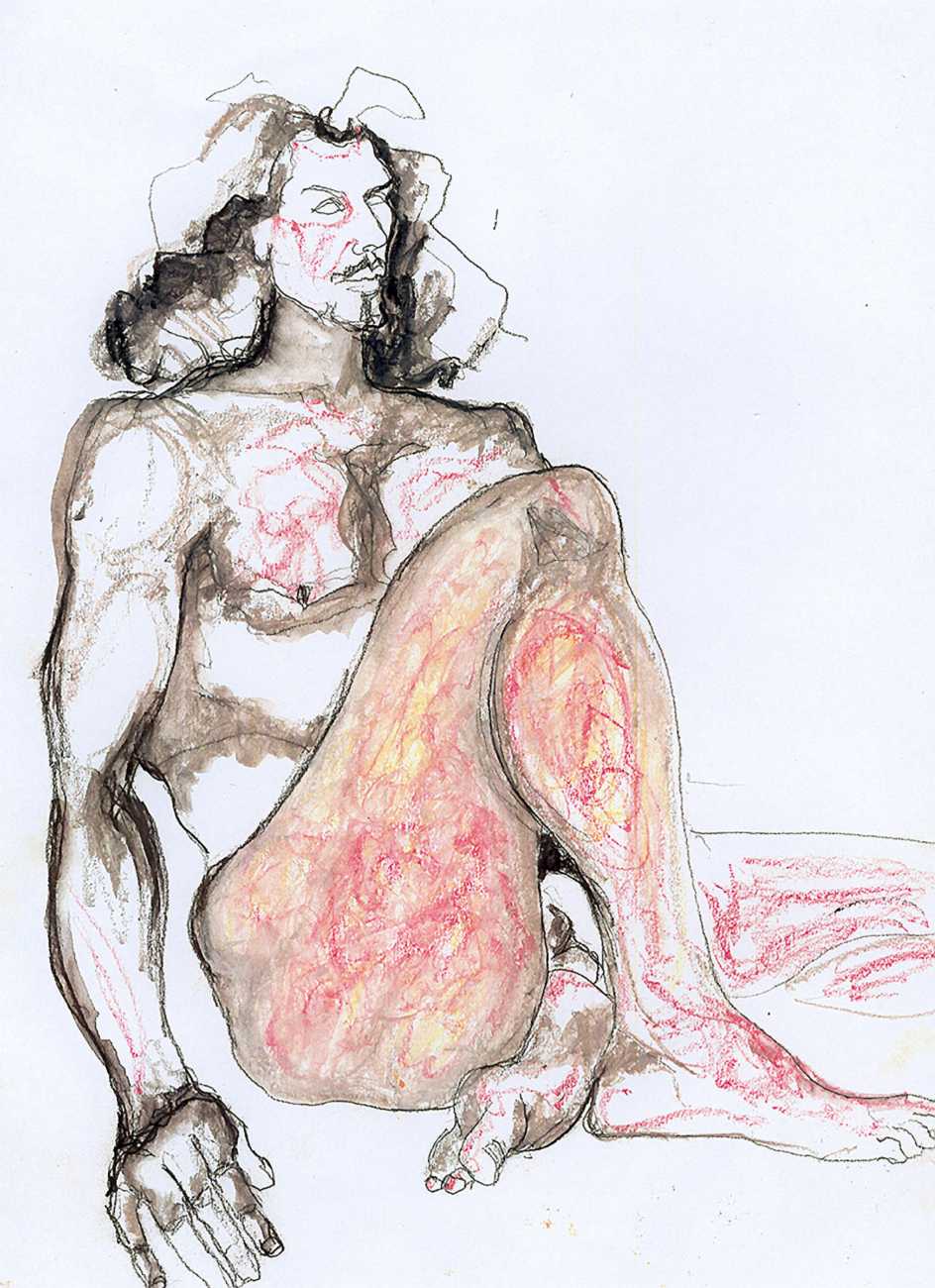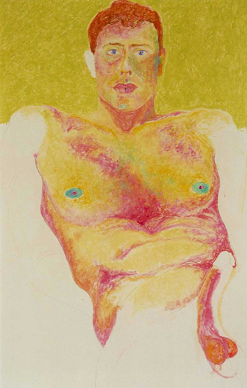 She did not find her chosen artistic path an easy one, often being overwhelmed and disoriented by her desire for self-understanding. In 1990 she started a relationship with the German academic Thomas Wiederspahn, and moved to Frankfurt ‘to start her life again’. It was not easy for her to start again, however, and it was not until 1994 that she found the will to start drawing again, concentrating on studies of the naked human body, made in her trademark bright colours and often explicitly sexual.